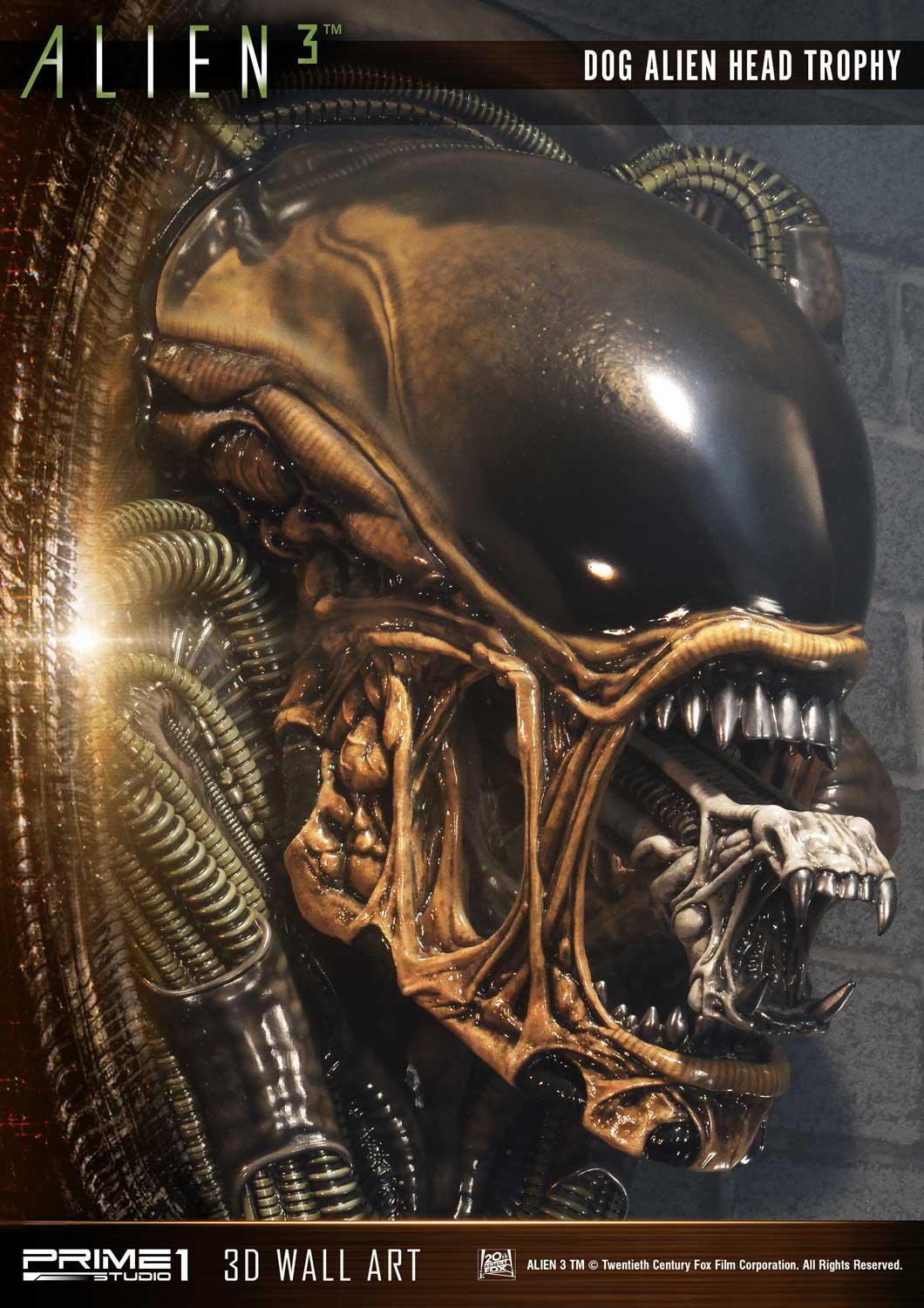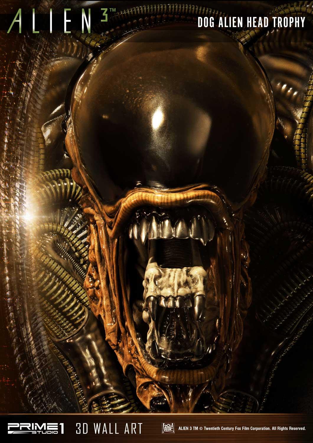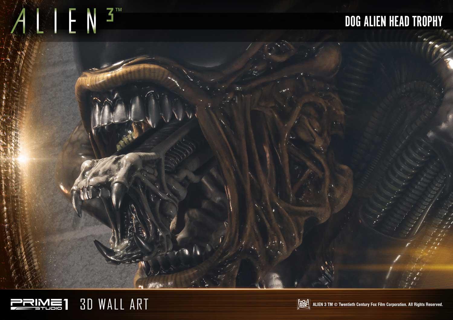 Prime 1 Studio is proud to announce the third piece of our new line Wall Art Alien - 03: Dog Alien Head Trophy Open Mouth Version 3D Wall Art from the Alien 3 Film.