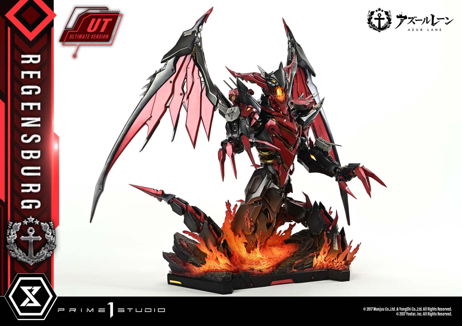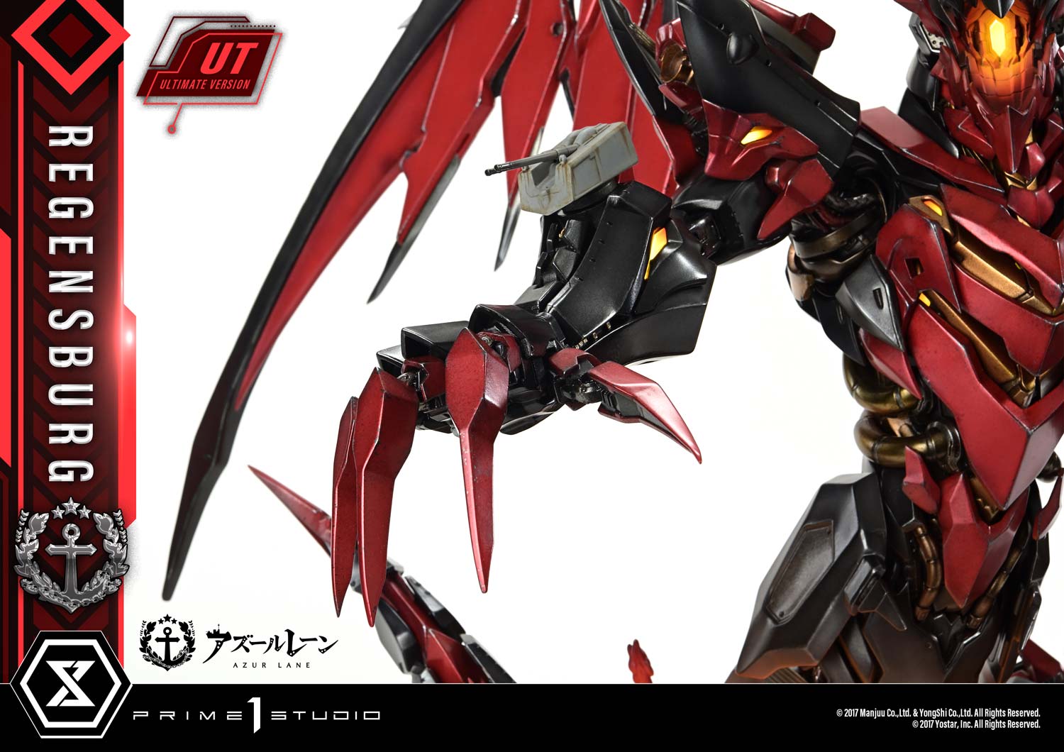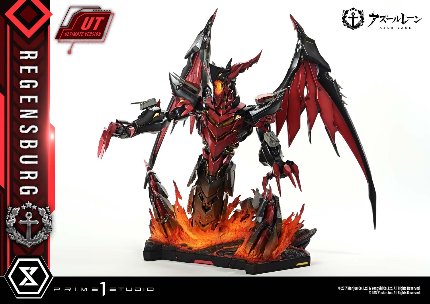 And towering behind her is Regina, the autonomous dragon-type rigging also based on the key visual. With sharply sculpted horns and claws, a subdued metallic sheen in iron black, and LED features across its frame, the massive 66cm construct is brought to life in stunning scale. Display her looming behind Regensburg to deepen the immersion into her world. The statue also comes with an alternate angry expression, a right-hand part, and a head stand—offering customizable display options to suit your style.