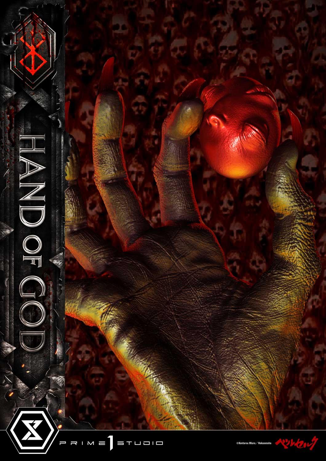 Based directly on the groundbreaking art of Sensei Kentaro Miura comes the Hand of God. Clutching a Crimson Behelit (also known as “The Egg of the Conqueror”) the Hand of God passes judgment on mankind’s inability to control even its own will.