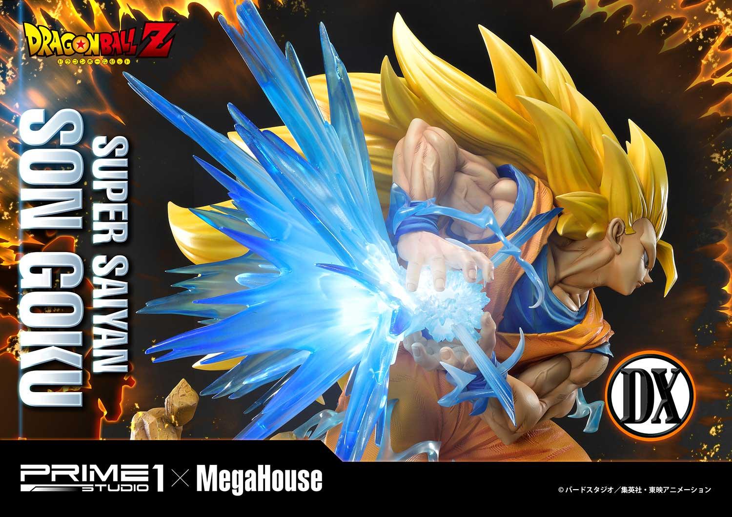 Prime 1 Studio and MegaHouse are proud to collaborate to make a long-awaited statue of the main protagonist Son Goku from Dragon Ball Z! We chose his popular Super Saiyan look in a dynamic Kamehameha Pose with an LED Light-up function which gives some vigor to the whole statue. We also added some small highly detailed parts to the base and the whole body that gives an amazing effect of a fierce battle.