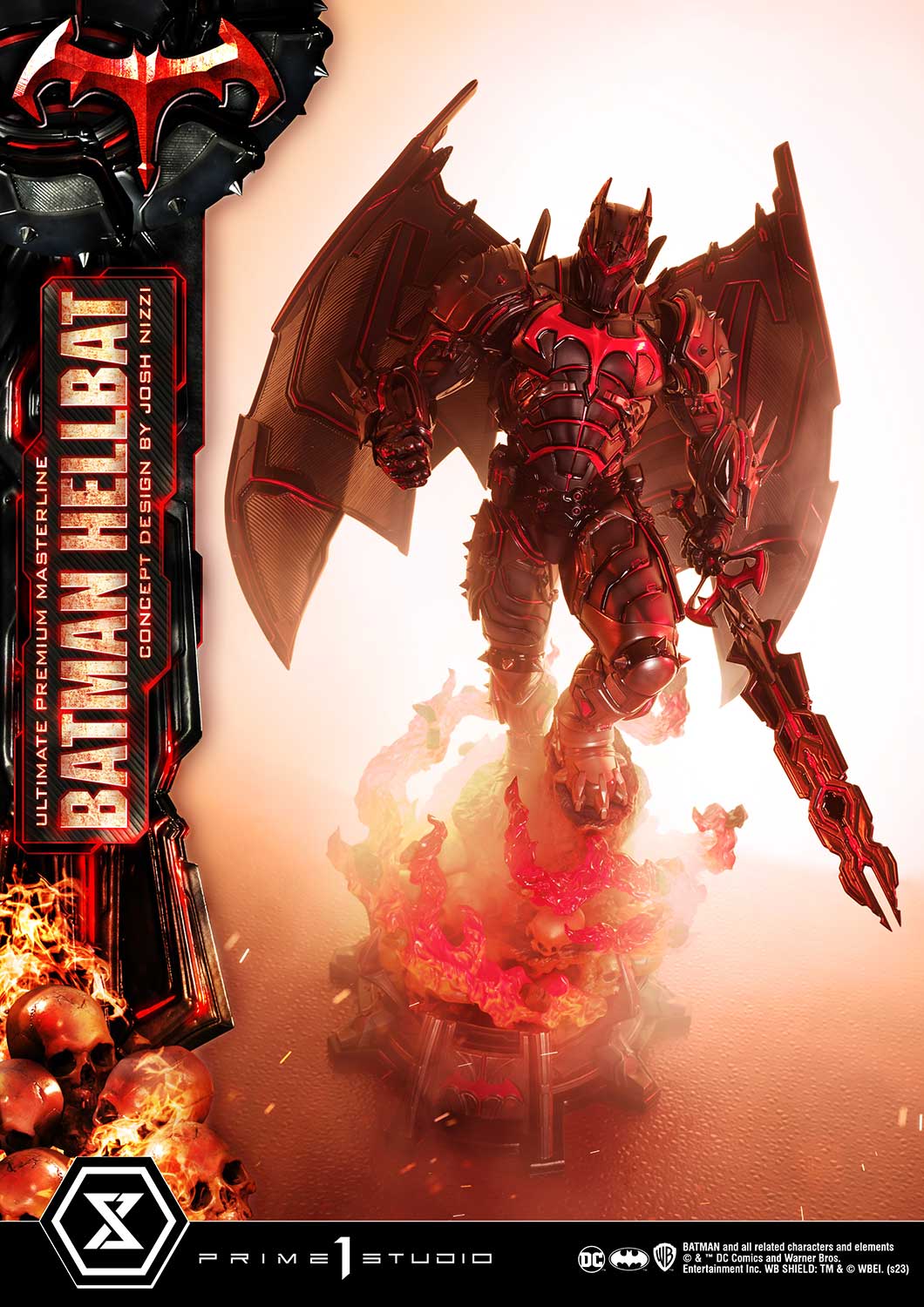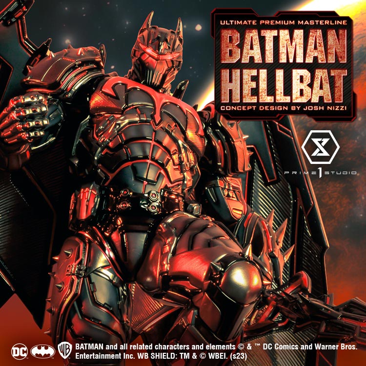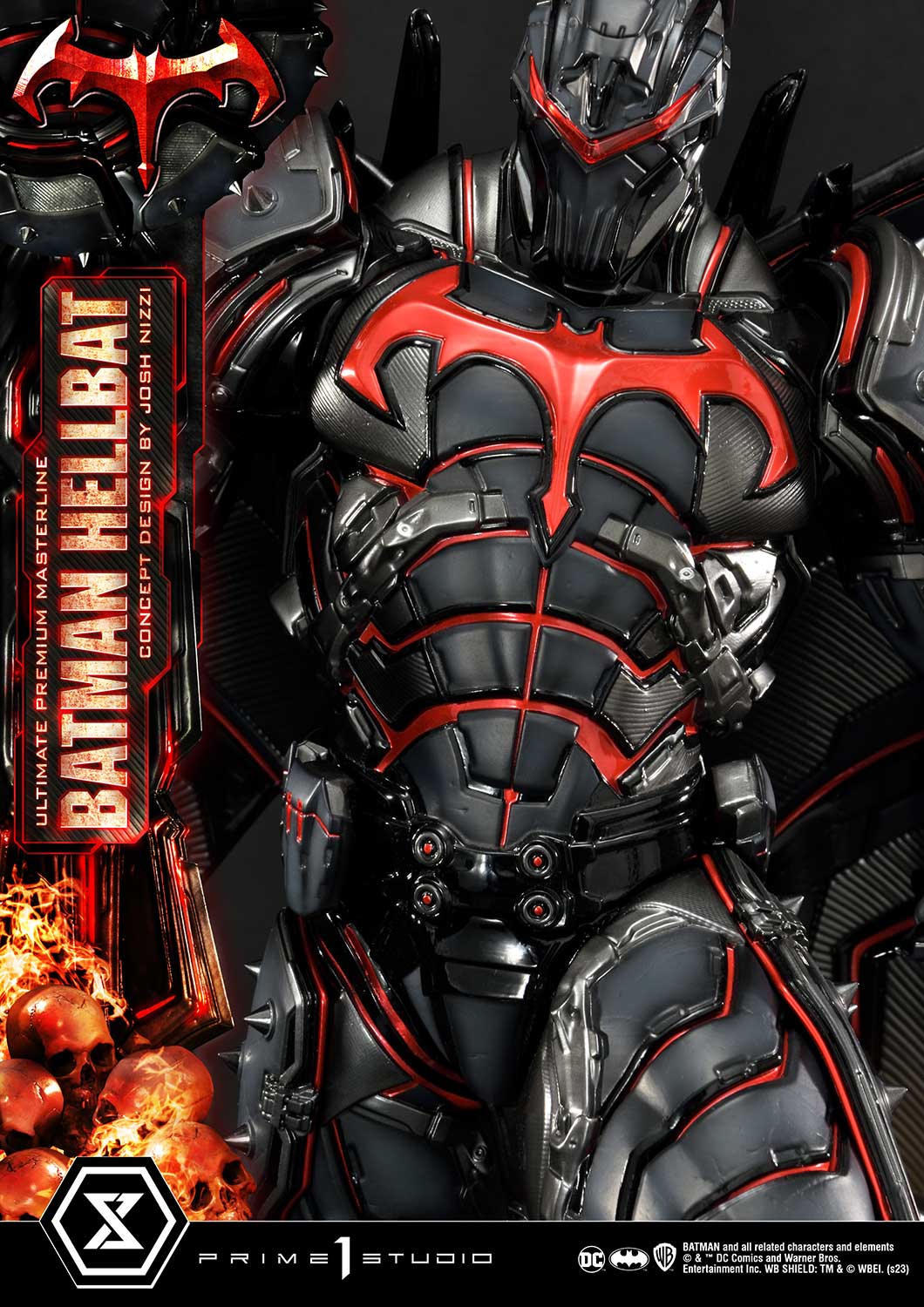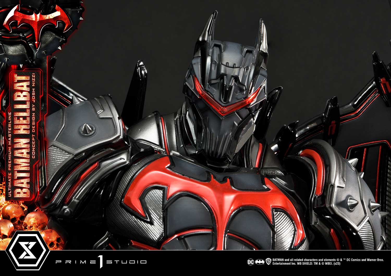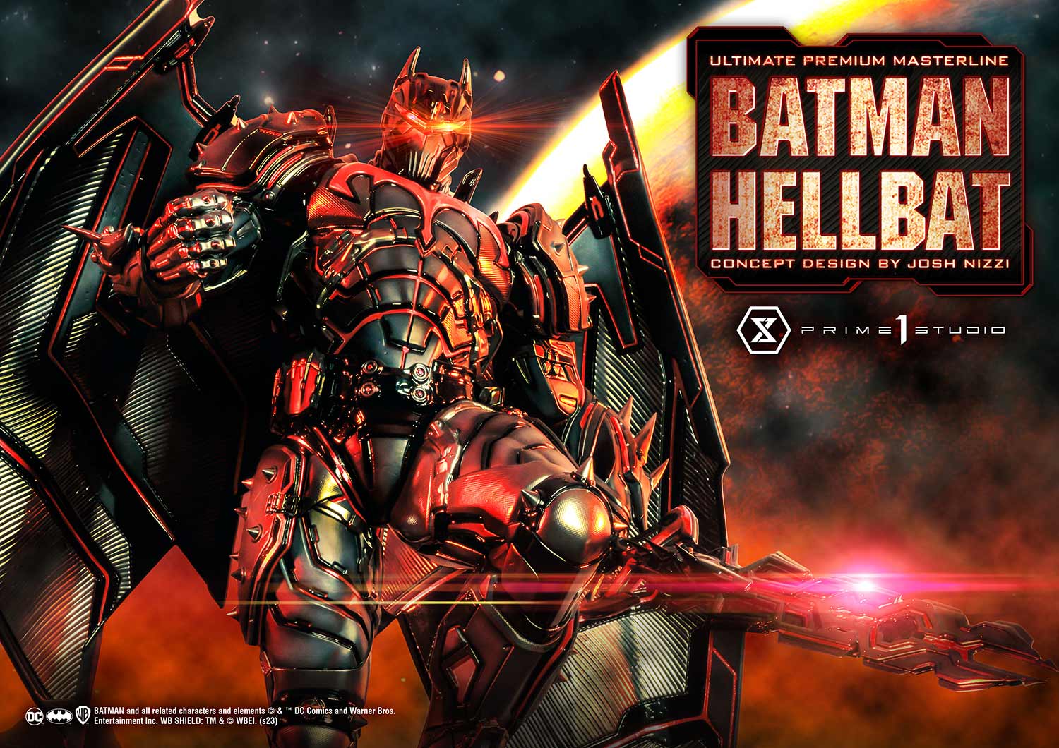 Get ready to gear up! Enter the treacherous Bat-Suit, a daring choice that seeks power at a price. Prime 1 Studio introduces DC fans to the super-epic release from our Batman lineup, the UPMDC-06 Ultimate Premium Masterline Batman Hellbat "Concept Design by Josh Nizzi."