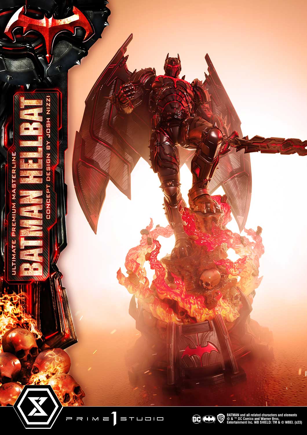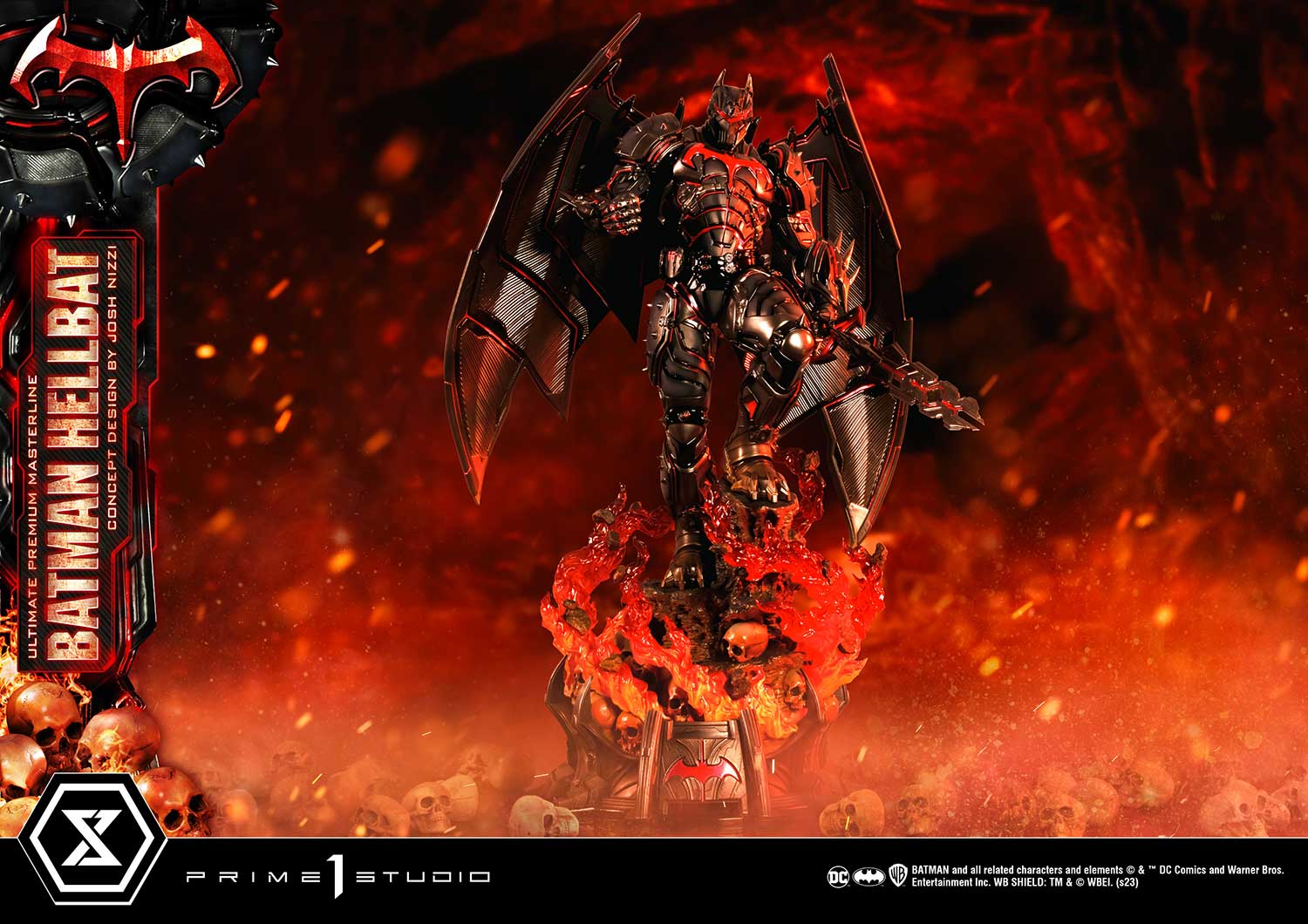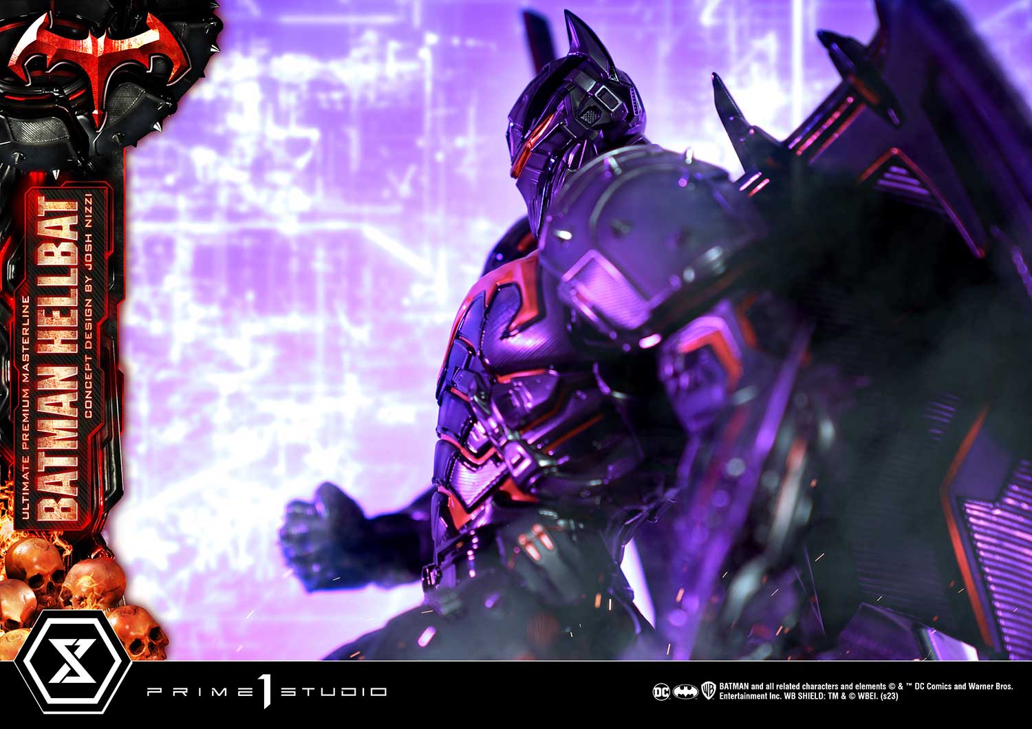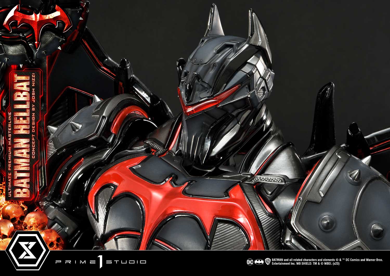 Get ready to gear up! Enter the treacherous Bat-Suit, a daring choice that seeks power at a price. Prime 1 Studio introduces DC fans to the super-epic release from our Batman lineup, the UPMDC-06 Ultimate Premium Masterline Batman Hellbat "Concept Design by Josh Nizzi."