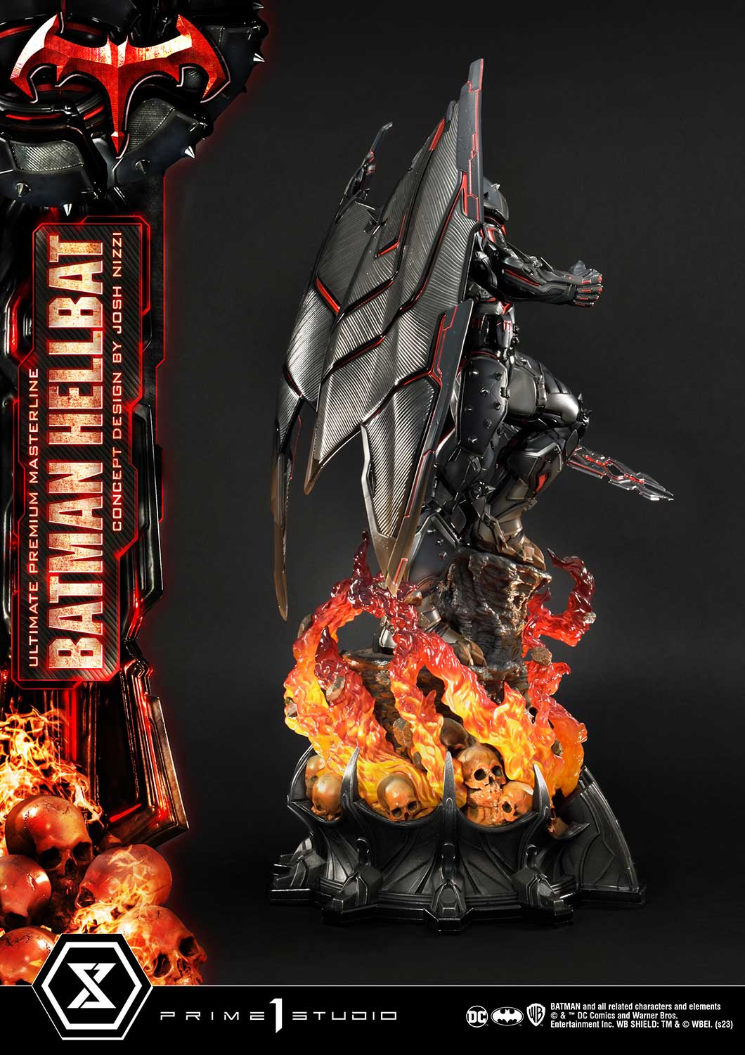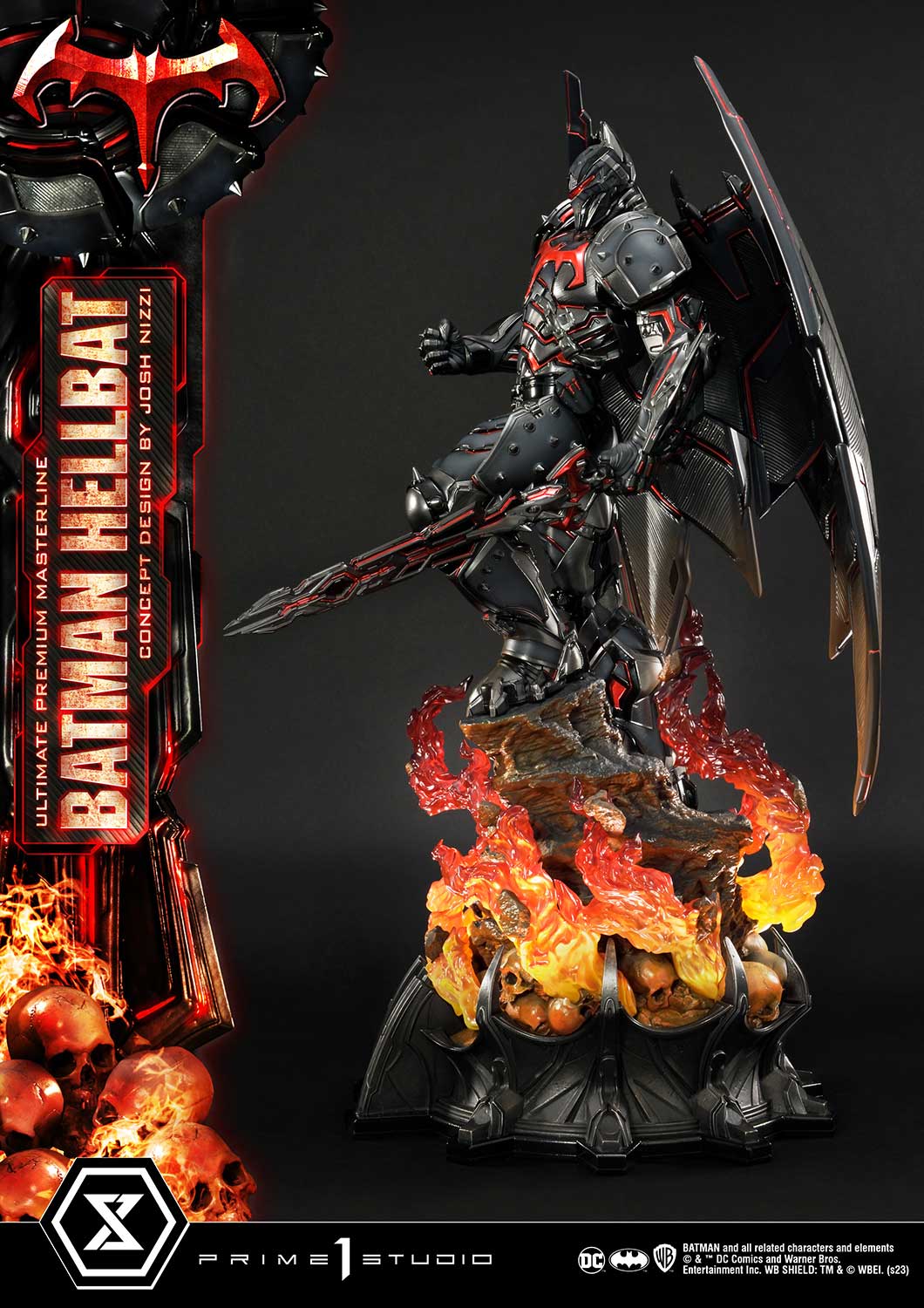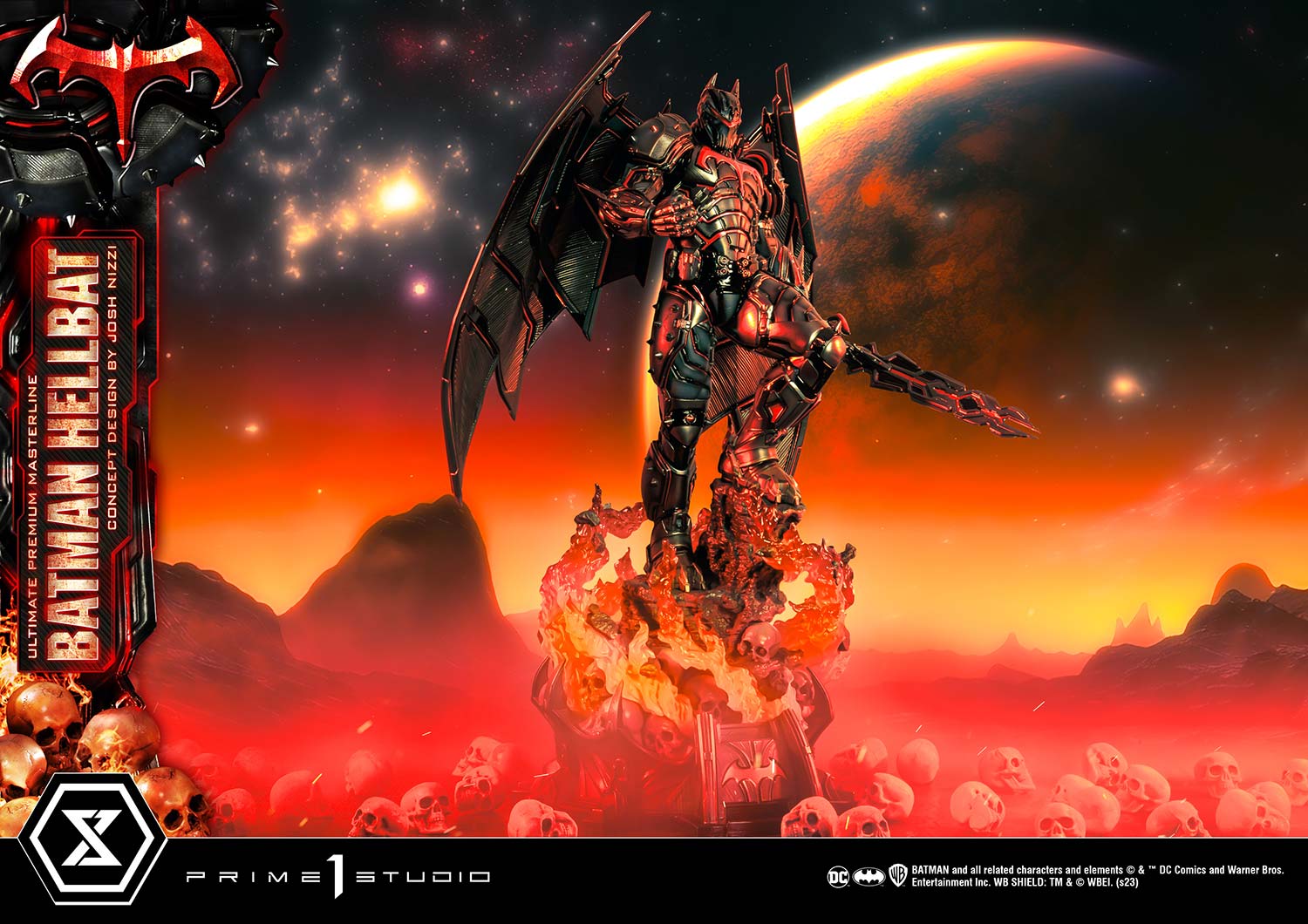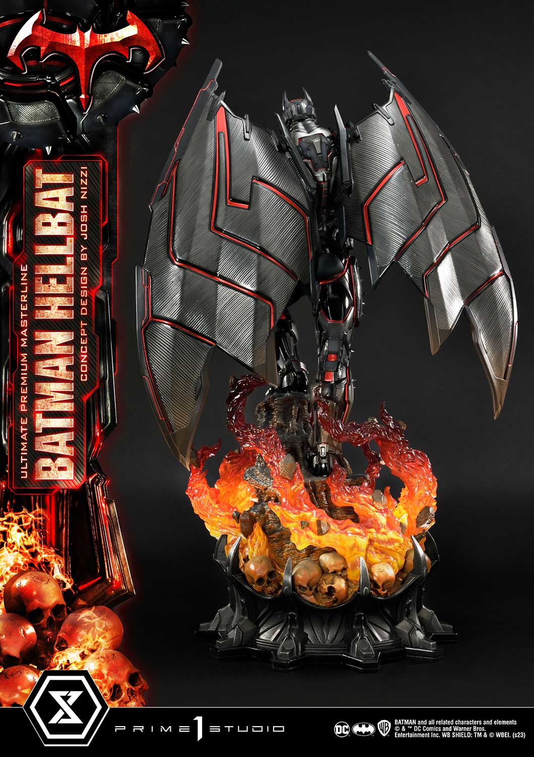Get ready to gear up! Enter the treacherous Bat-Suit, a daring choice that seeks power at a price. Prime 1 Studio introduces DC fans to the super-epic release from our Batman lineup, the UPMDC-06 Ultimate Premium Masterline Batman Hellbat "Concept Design by Josh Nizzi."
