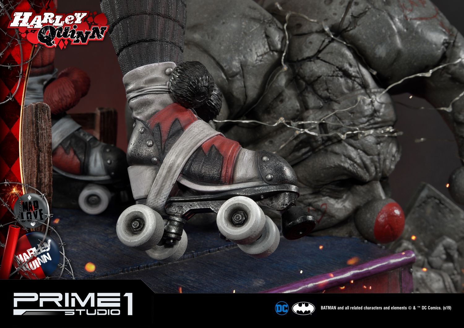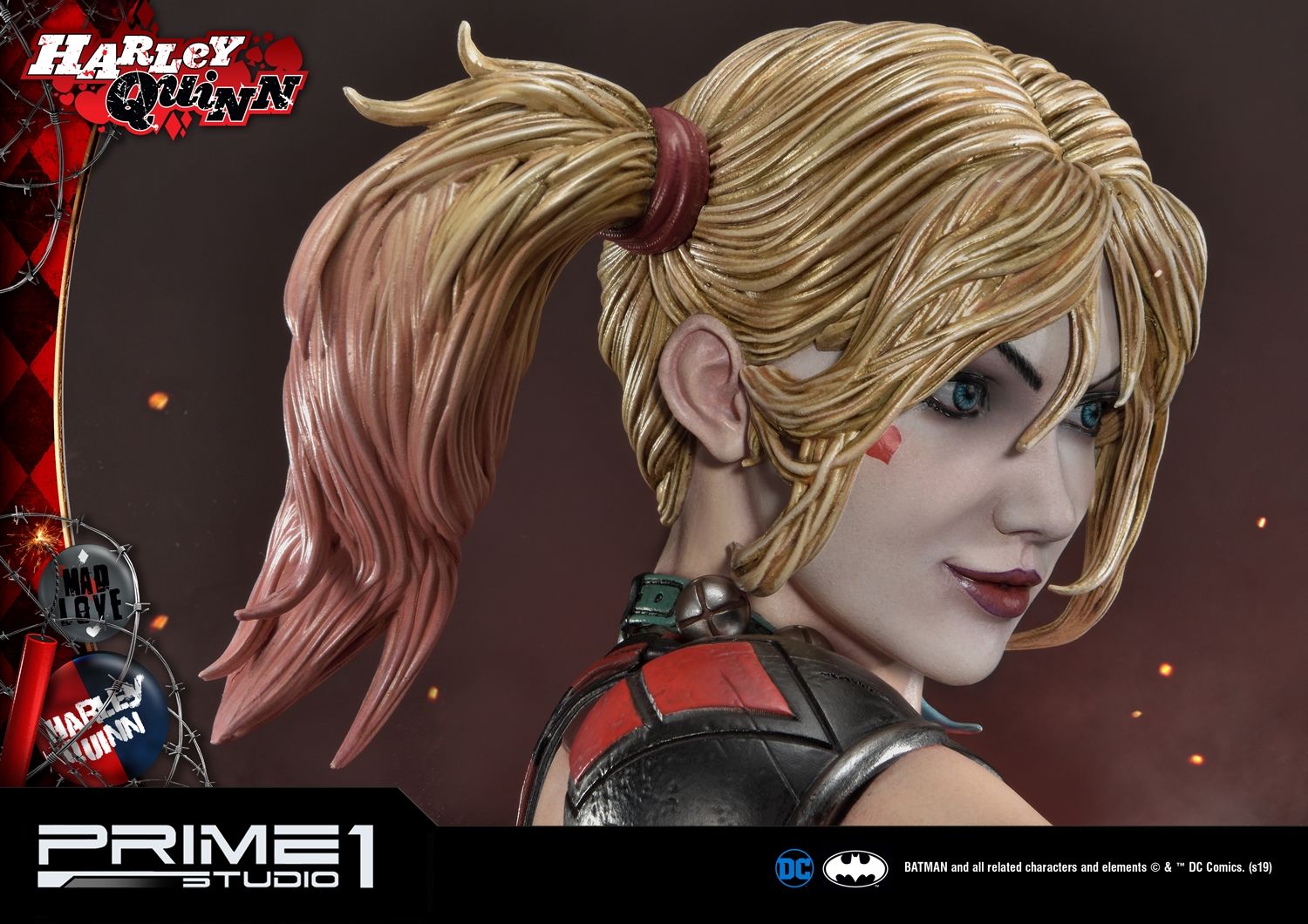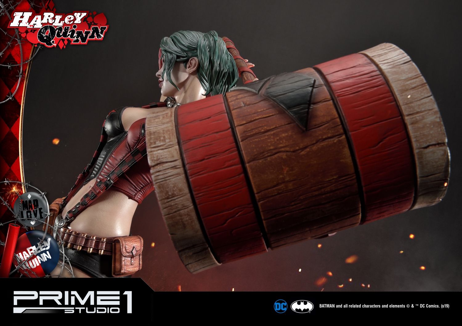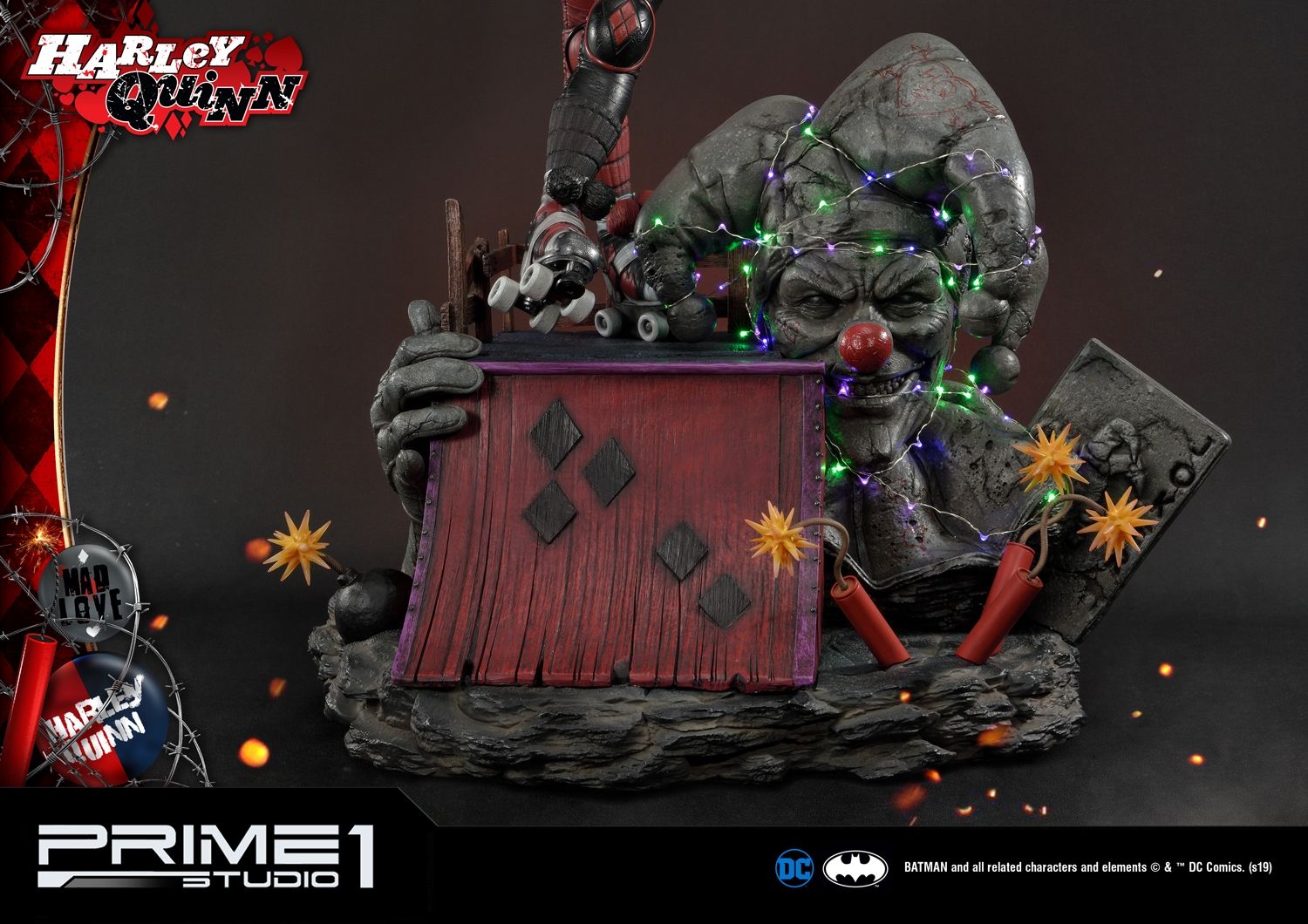 Prime 1 Studio is proud to introduce the bubbly supervillain, MMDC-36 Harley Quinn from DC Comics. All the essential details of the character have branded with the Comic taste in this MMDC-36 Harley Quinn. There are two alternative portraits with a headstand to be included in this version. Her iconic blonde hair portrait and the variation of red and green hair color portrait which fit with her costume. Not to mention that her gag-themed weaponry, her well known mallet in her hands and dynamite all over the base with LED illumination. Don't miss this chance to add the must-have lovely supervillain statue on Valentine's day.