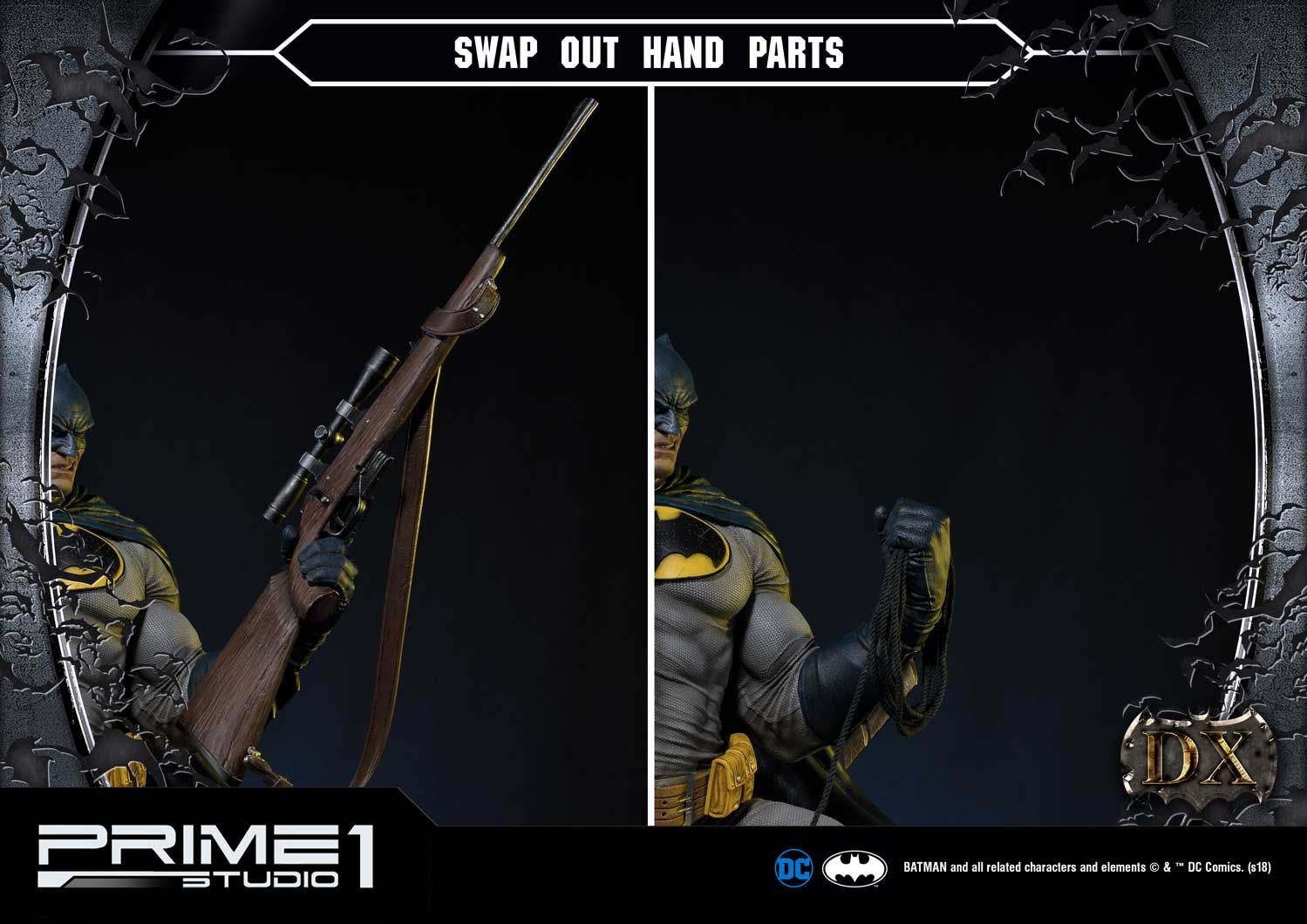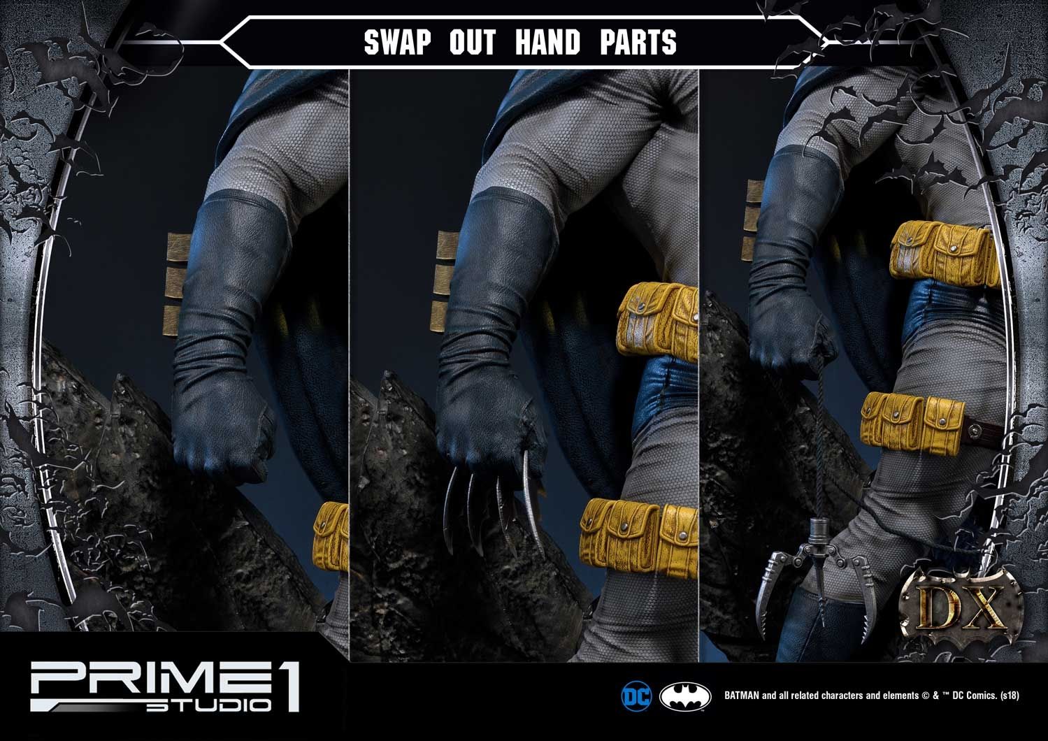 - Two (2) interchangeable right-hand (Fist, Holding Batarangs)