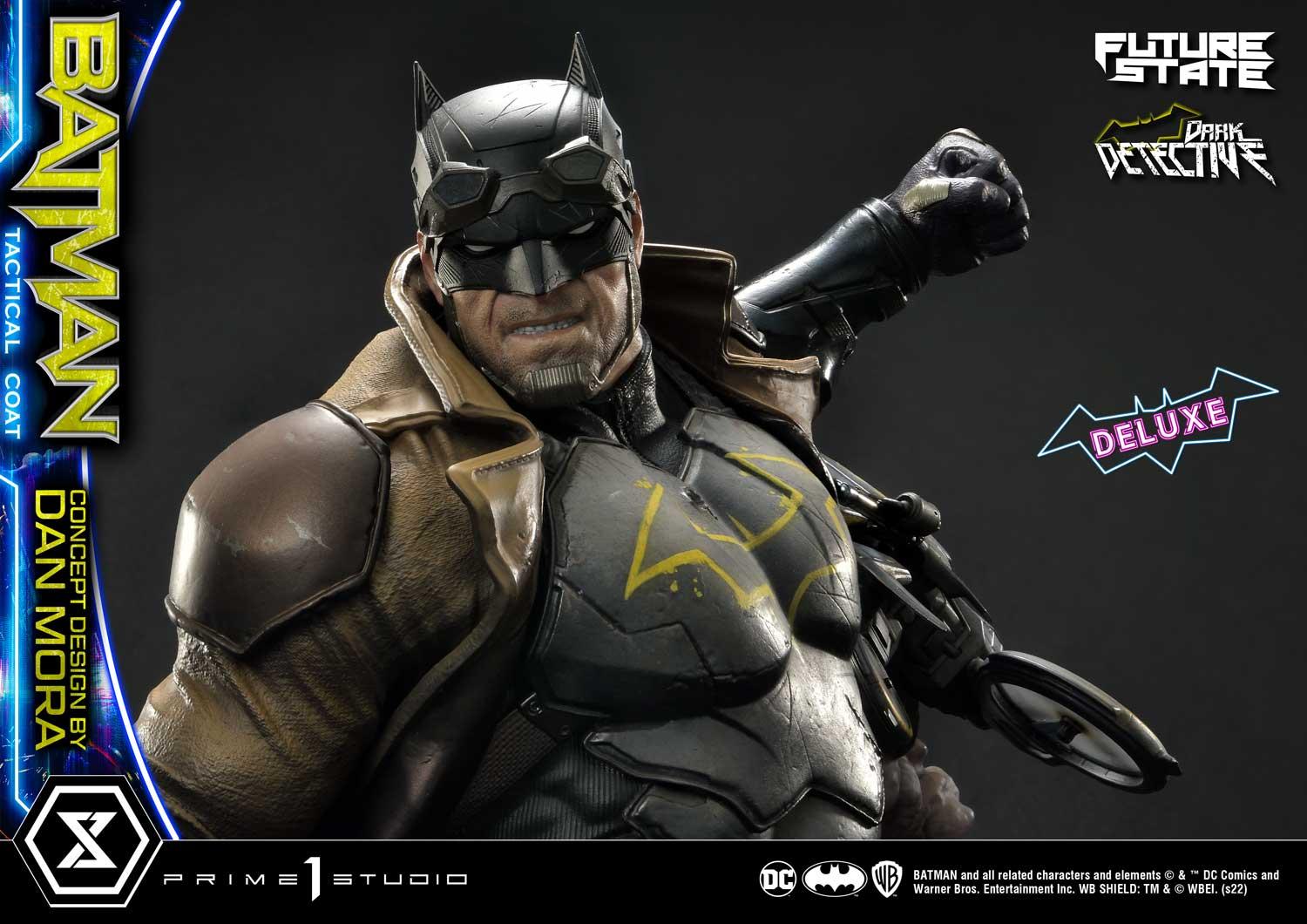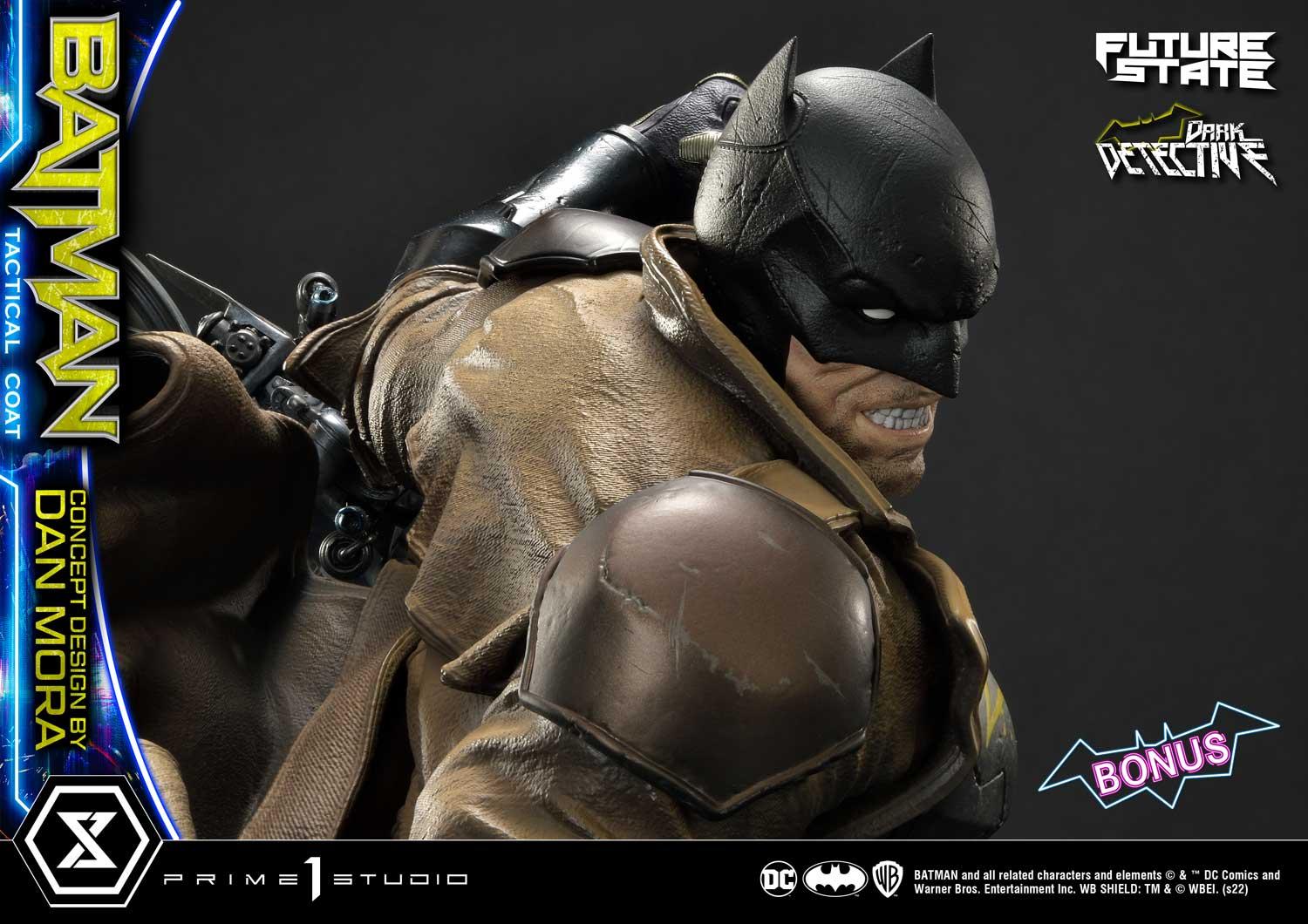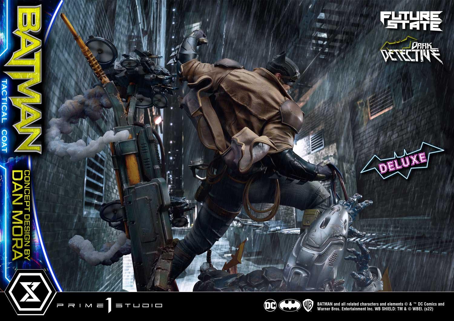 Prime 1 Studio is absolutely excited to finally bring one of the most intriguing takes on the Dark Knight designs in a long time: the 1:4 Scale UPMDC-01DXS BATMAN DARK DETECTIVE TACTICAL COAT CONCEPT DESIGN BY DAN MORA DELUXE BONUS VERSION from DC FUTURE STATE!