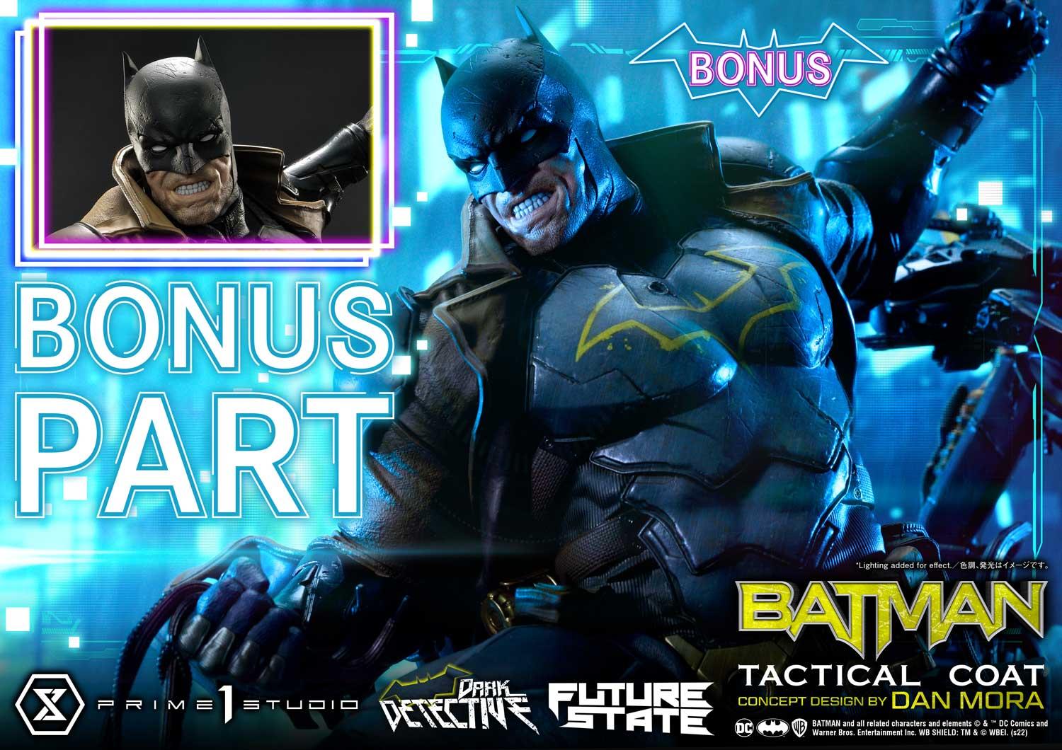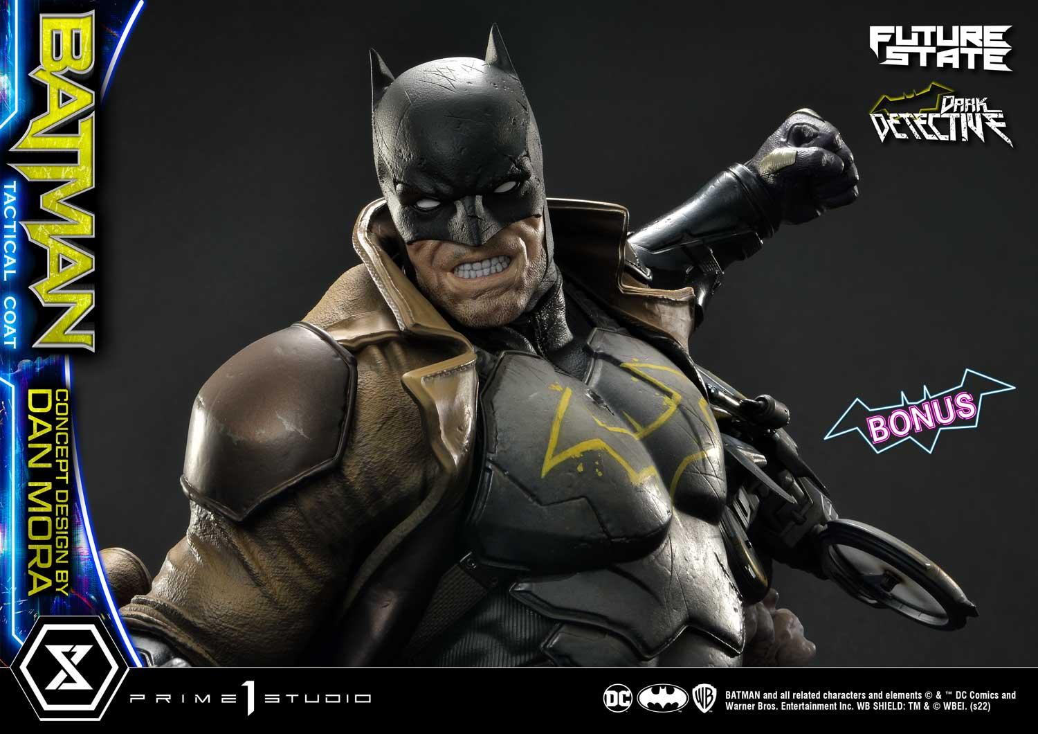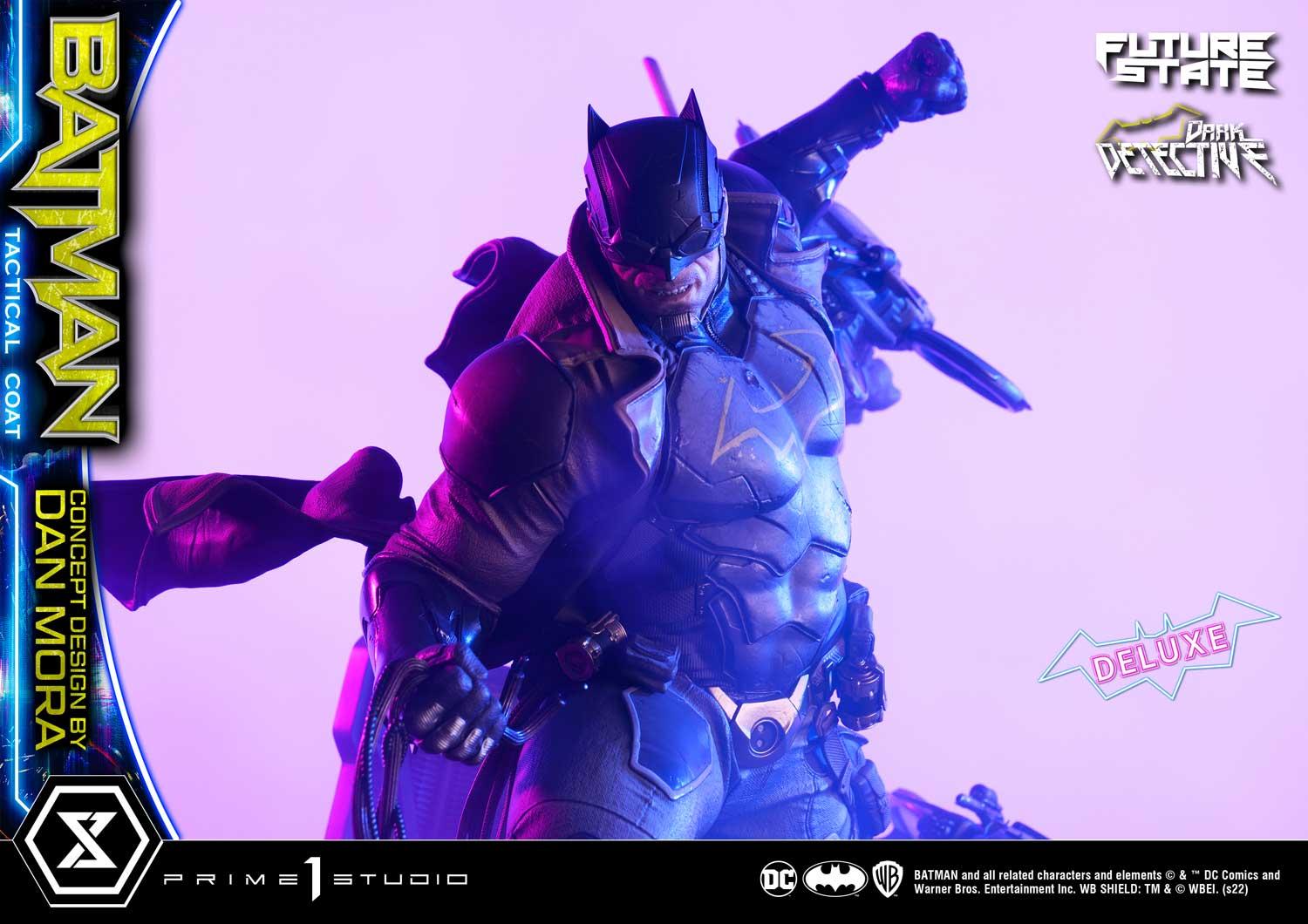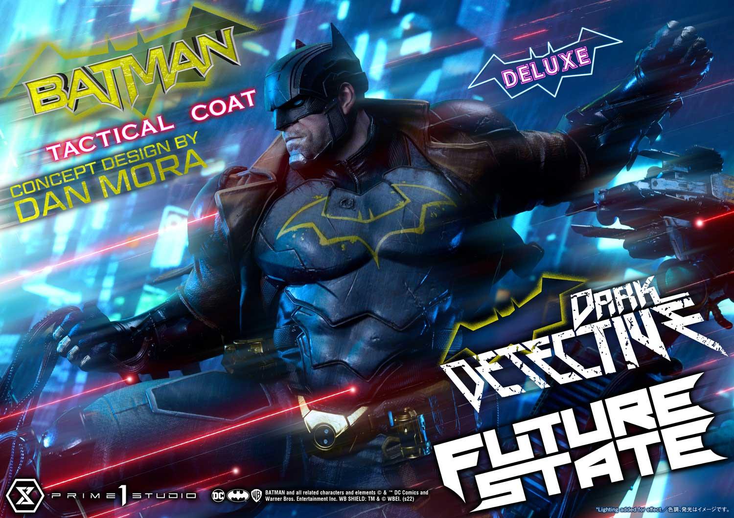 Prime 1 Studio is absolutely excited to finally bring one of the most intriguing takes on the Dark Knight designs in a long time: the 1:4 Scale UPMDC-01DXS BATMAN DARK DETECTIVE TACTICAL COAT CONCEPT DESIGN BY DAN MORA DELUXE BONUS VERSION from DC FUTURE STATE!