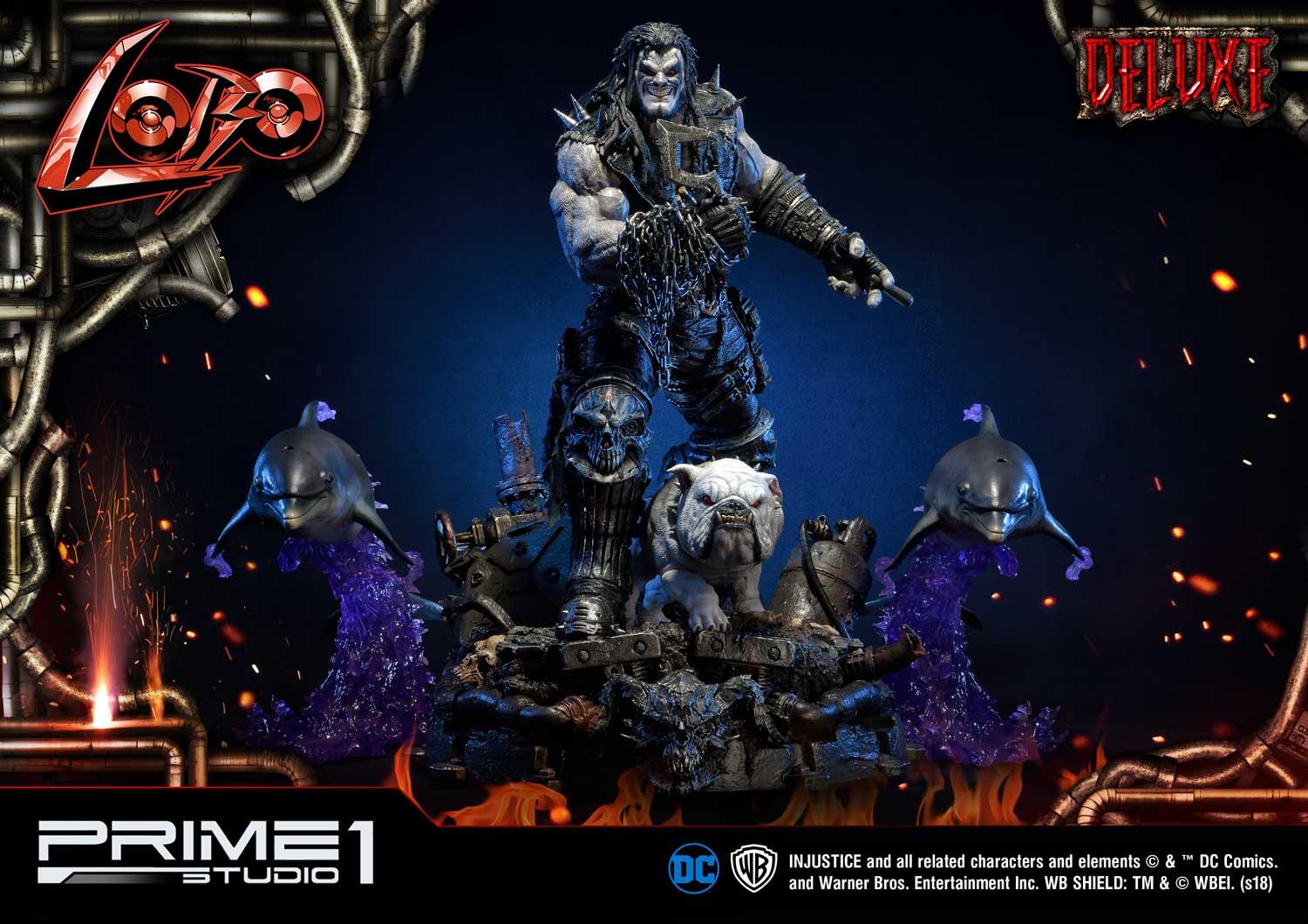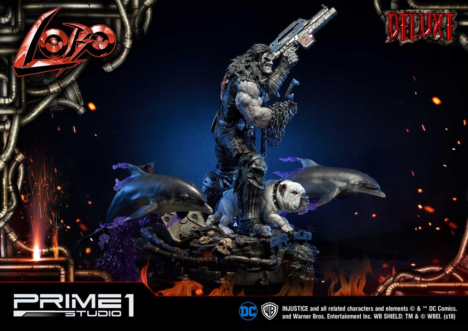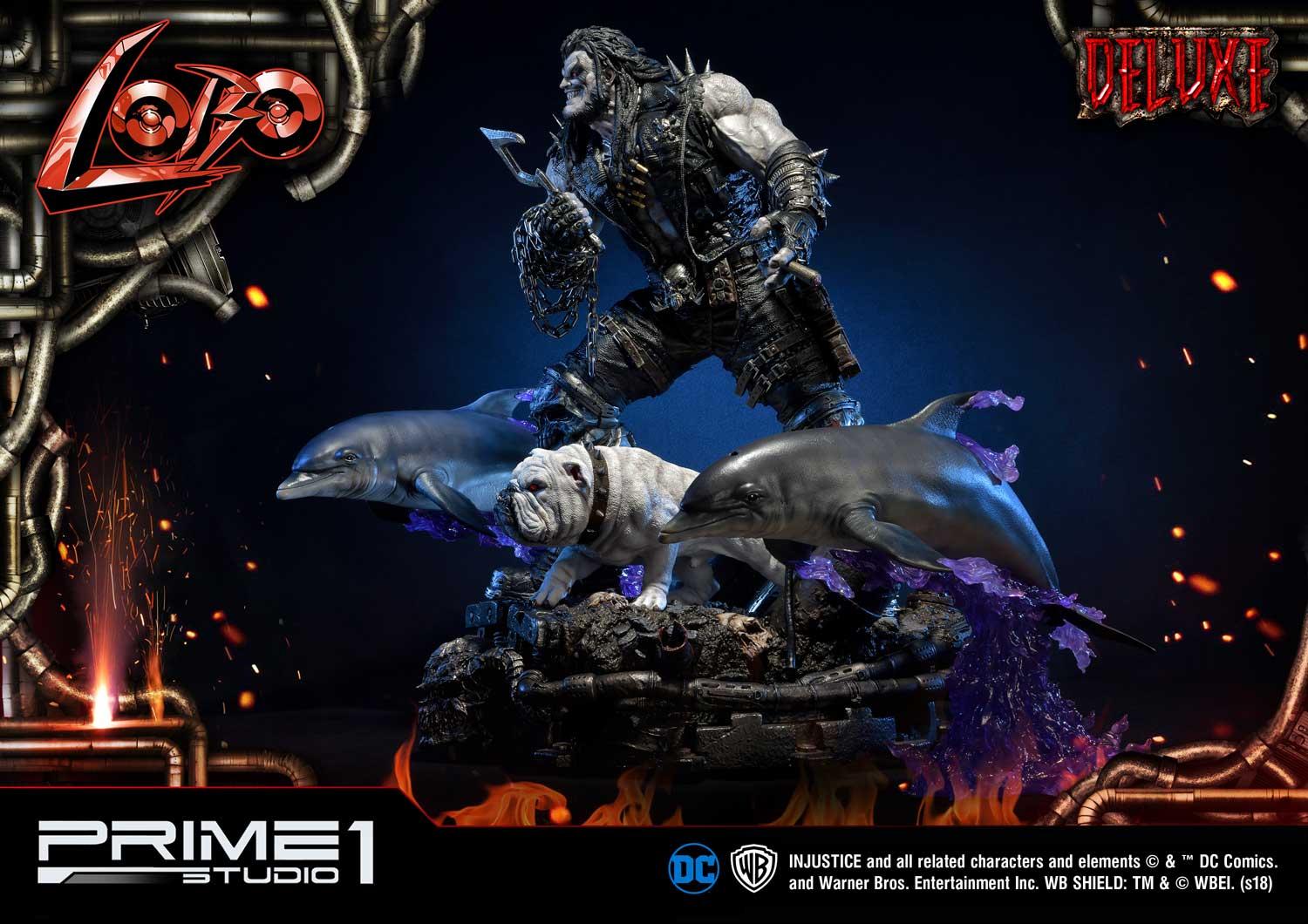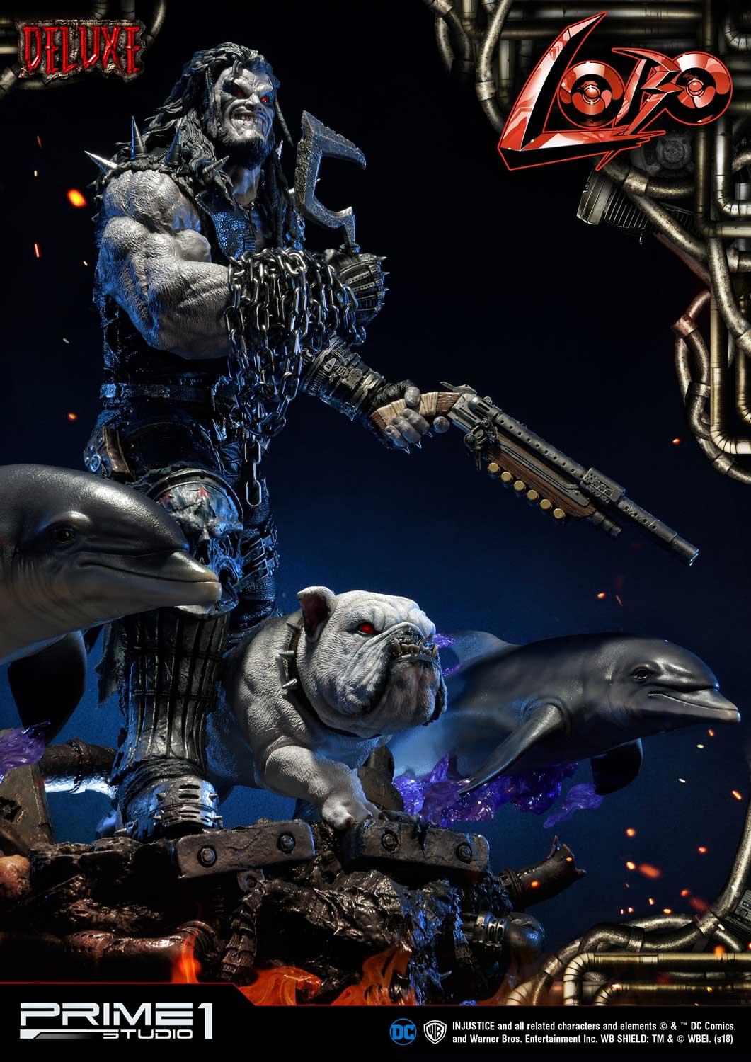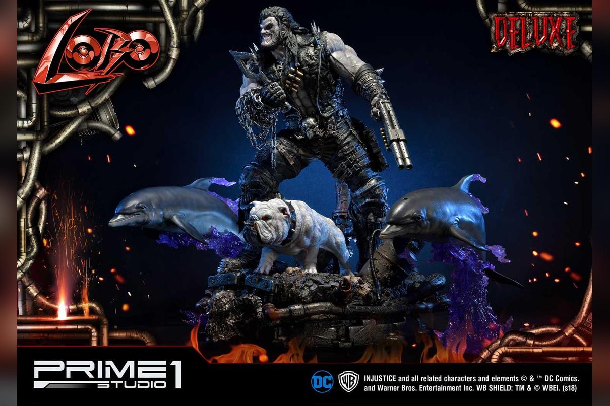 Prime 1 Studio is proud to present 1/3 scale UMMDCIJ-01DX: Lobo Deluxe version from Injustice: Gods Among Us. Injustice is an action fighting video game based on the DC Comics universe which Lobo is available as a DLC Character in this game. Lobo is the last of his known alien race, the Czarnians. He is a violent and destructive man through and through, even to his Czarnian name which means “he who devours your entrails and thoroughly enjoys it.” He also committed mass genocide against his entire race using a swarm of flying scorpions. Seeing nothing else to do, Lobo spent his days as a bounty hunter, killing anyone as long as the price is right. He’s also been one to team up with different people in the DC Universe such as Green Lantern and Superman. Lobo stands with Dawg, his follower alien dog, approximately 39 inches tall and approximately 39 inches wide with the Space Dolphins. This is the ultimate must-have statue for all Lobo fans!