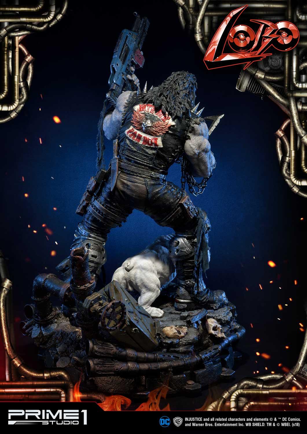 Prime 1 Studio is proud to present 1/3 scale UMMDCIJ-01: Lobo from Injustice: Gods Among Us. Injustice is an action fighting video game based on the DC Comics universe which Lobo is available as a DLC Character in this game. Lobo is the last of his known alien race, the Czarnians. He is a violent and destructive man through and through, even to his Czarnian name which means “he who devours your entrails and thoroughly enjoys it.” He also committed mass genocide against his entire race using a swarm of flying scorpions. Seeing nothing else to do, Lobo spent his days as a bounty hunter, killing anyone as long as the price is right. He’s also been one to team up with different people in the DC Universe such as Green Lantern and Superman. Lobo stands with Dawg, his follower alien dog, approximately 39 inches tall. Optional Space Dolphins set statue can be purchase separately to complement this product! This is a must-have statue for all Lobo fans!