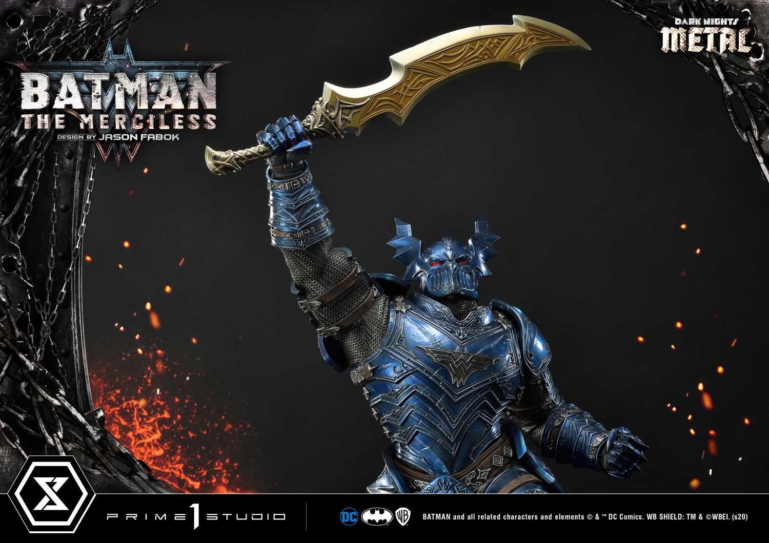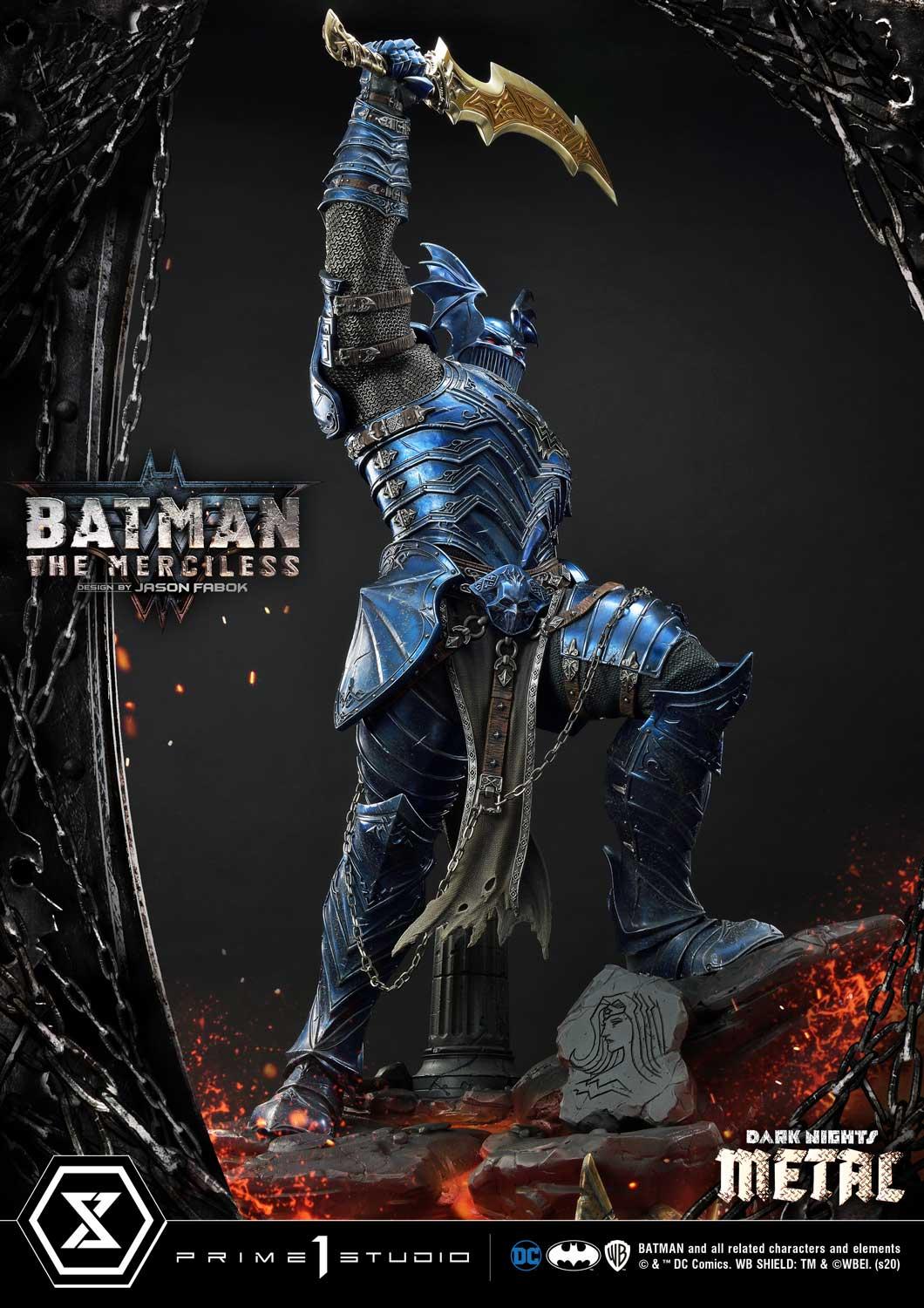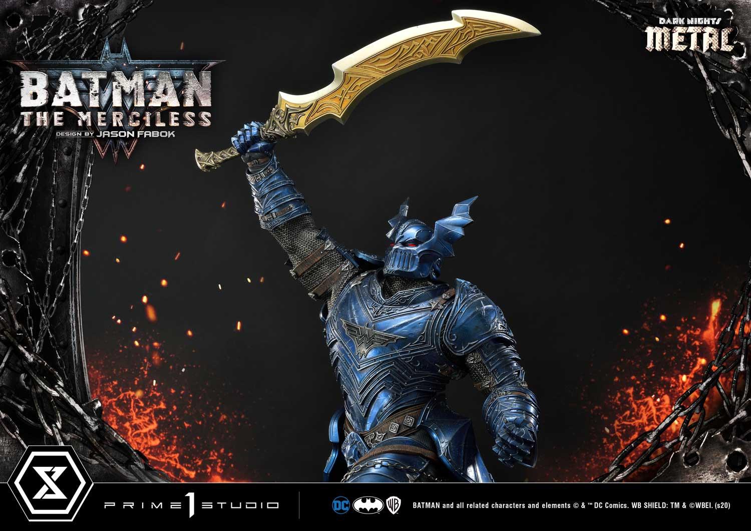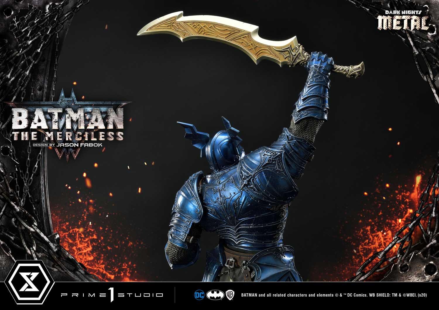 We have captured The Merciless in the most iconic of poses based on the concept by the revered Comic Artist, Jason Fabok. Batman stands 44 inches tall upon a rocky-volcanic themed base. The Merciless holds the infamous God Killer sword high and mighty, ready to destroy anyone who crosses his path.