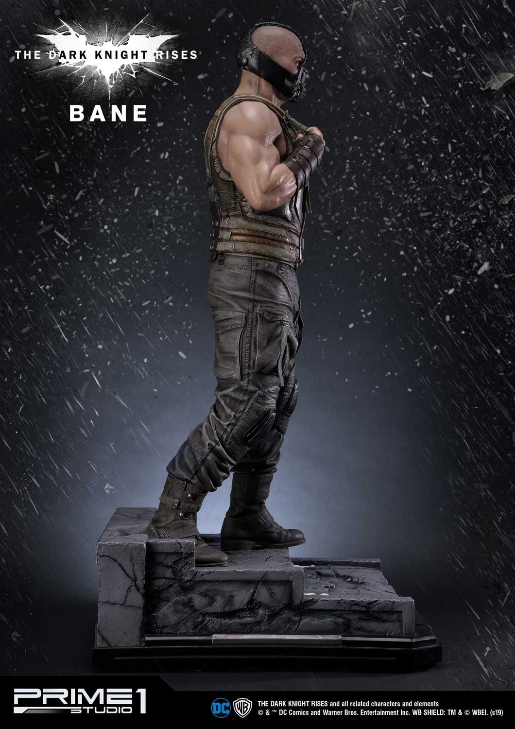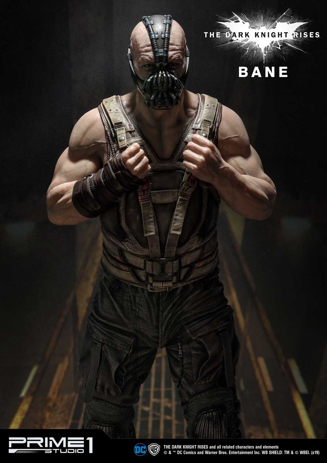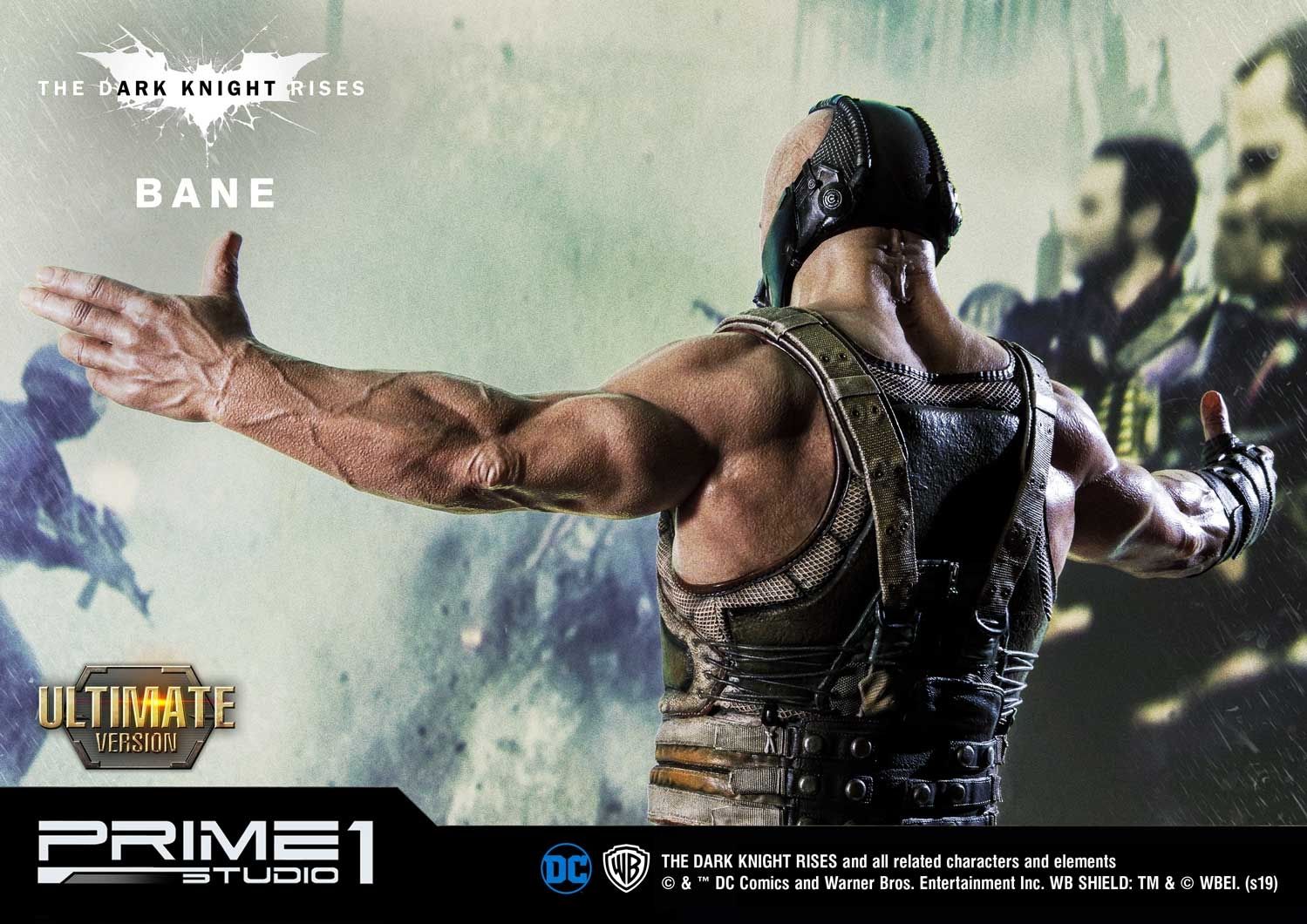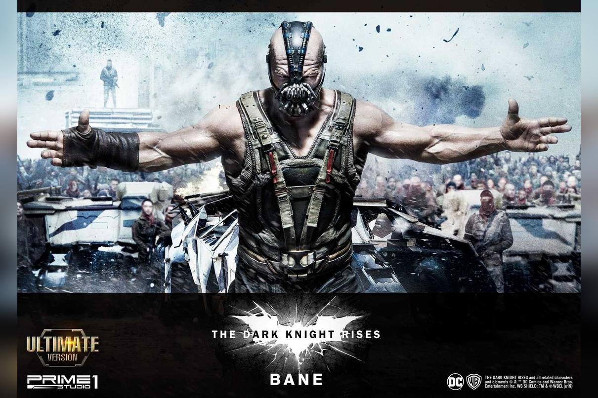 Prime 1 Studio is proud to present 1:3 Scale MMTDKR-03UT: Bane Bust from The Dark Knight Trilogy, The Dark Knight Rises. Famous English actor and producer, Tom Hardy plays a starring role, liberator of pain, Bane. He drastically changes the voice and body into the character's comic book heritage. He throws himself into a mysterious and physically imposing revolutionary who was expelled from the League of Shadows. This Museum Masterline Bane statue is truly sculpted based on one of the iconic scenes. Likewise, his costume, he is wearing a highly detailed Bane mask and under the tactical vest armor from the scene in the sewer from the movie ""The Dark Knight Rises.” This design represents perfectly Bane’s appearance once he met Batman in the sewer. In addition, the base is designed using Gotham City Stock Exchange building as the motif and expressed the streets of Gotham. Bane Ultimate edition statue includes an additional Torso with a Bust stand. The additional torso gives the option to have another look. You can't refuse this ultimate must-have masterpiece for all Dark Knight fans!!