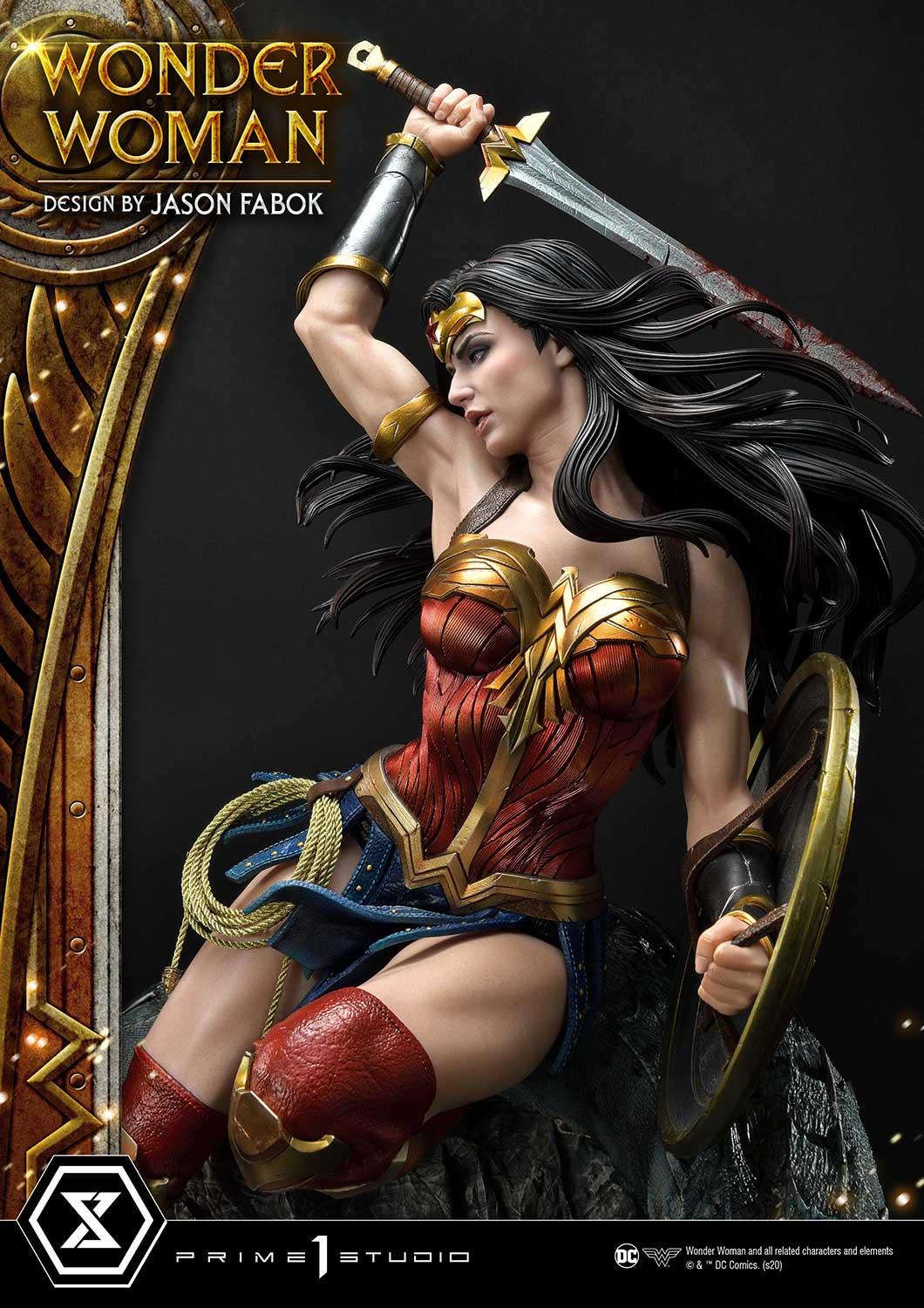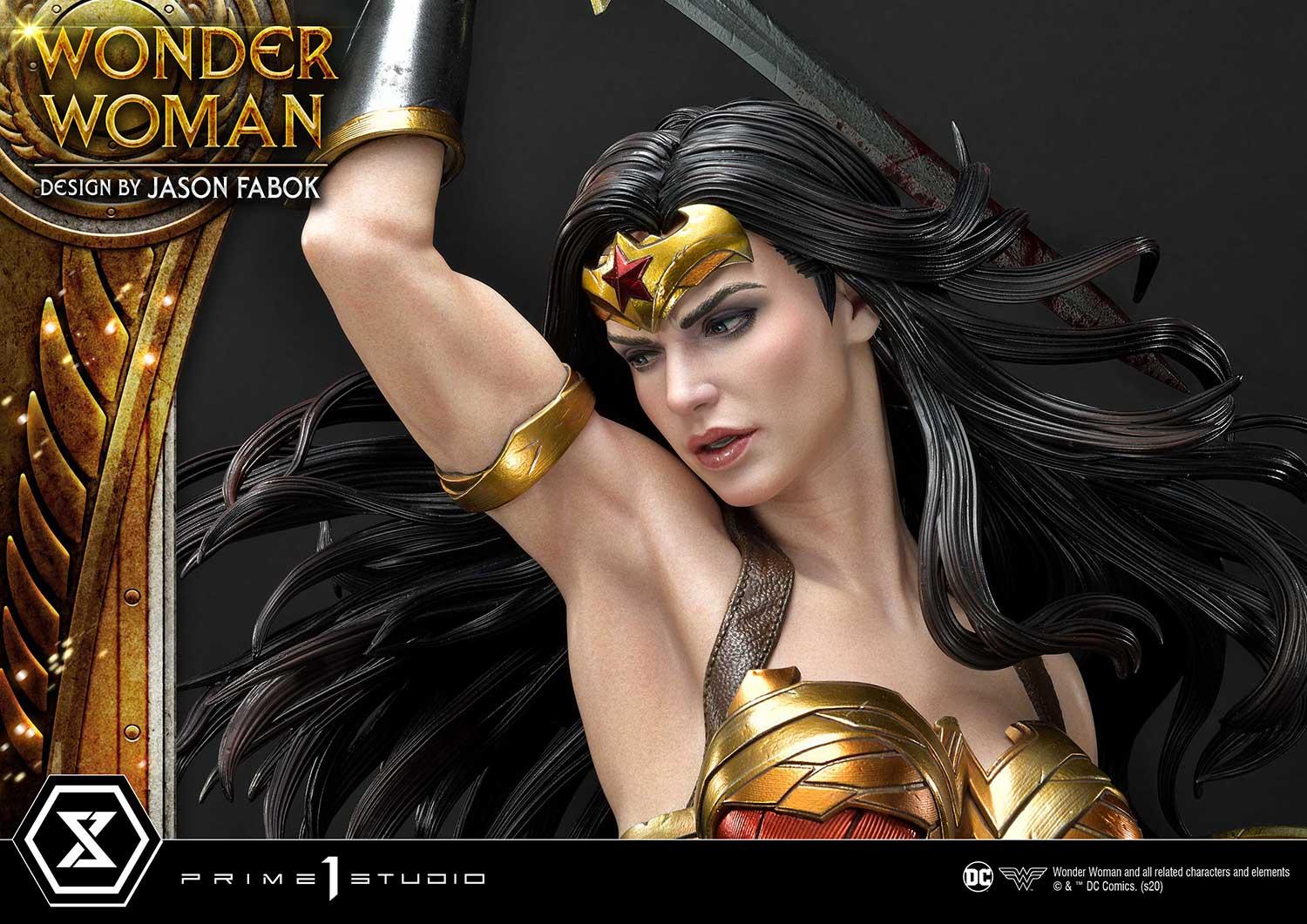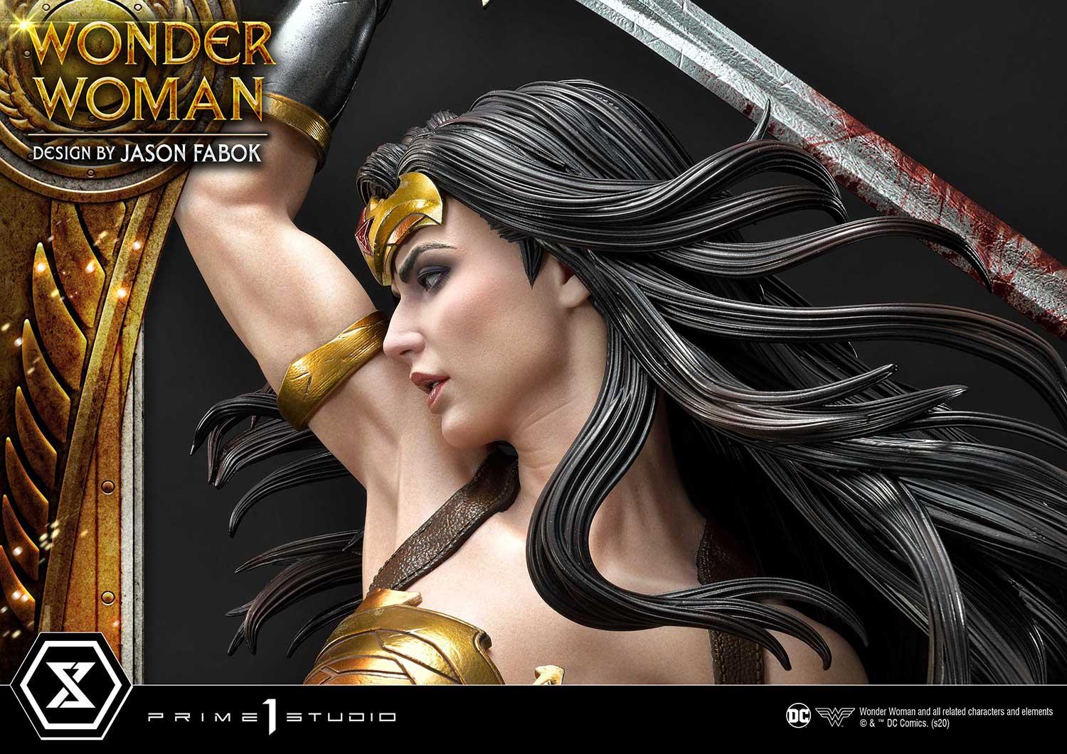 Through close collaboration with Jason Fabok, we have created the ultimate Wonder Woman statue in her dynamic pose. Wonder Woman’s armor has been beautifully crafted with wings and feather motif. The Hydras have been sculpted in such a detailed way that you will not want to take your eyes off them! There is blood around the entire statue, adding to the atmosphere and showing you not to mess with Wonder Woman! These elements have been merged into a fully immersive piece that fully portrays Wonder Woman as the Heroine she is.