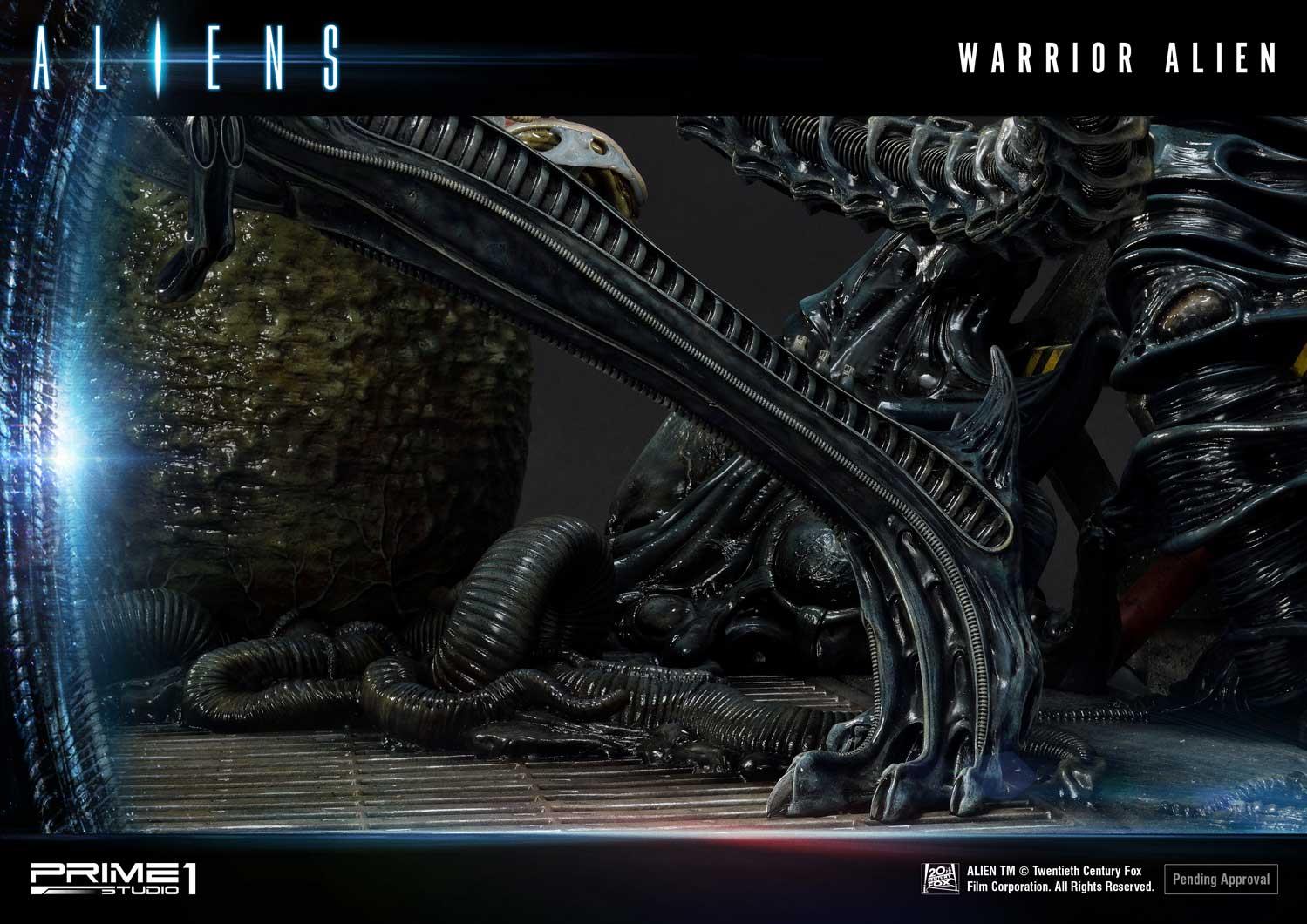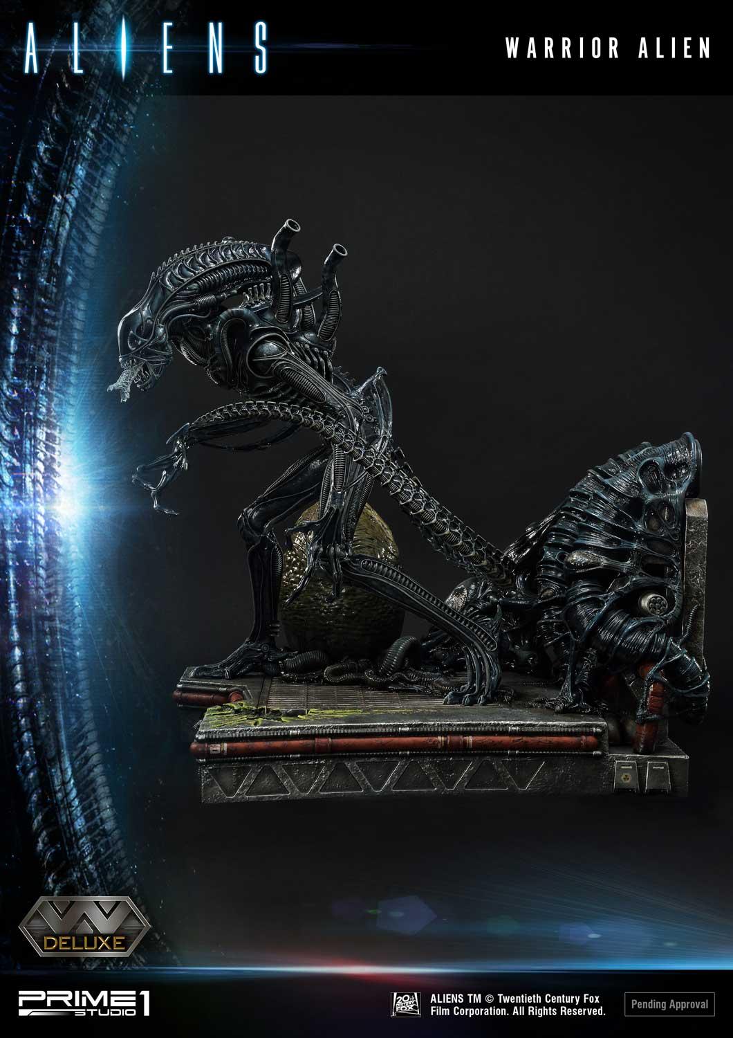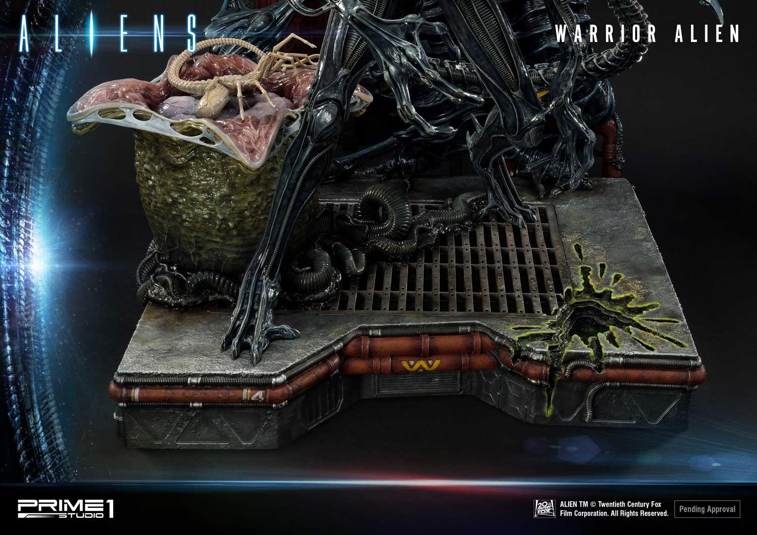 Take a look at the Warrior Alien Deluxe version here. Paired with its brethren face-hugger in an egg. The Aliens Ovomorph crafted with perfect attention to detail, with the DX version allowing for an open or closed egg cocoon switchout. It’s adult counterpart sinistrously stands 26 inches tall and ready to kill. Its skin glossy, with the alien head producing that “mechanical” feel. Notice the hole in the ground from their acidic blood. This base tells the story of a ship becoming overrun by the terrifying Xenomorphs. Pre-Order on Prime 1 Studio website early and receive an exclusive bonus item M41A Pulse Rifle. We have put everything into recreating the best Xenomorph image and is a must-have for Alien fans everywhere.