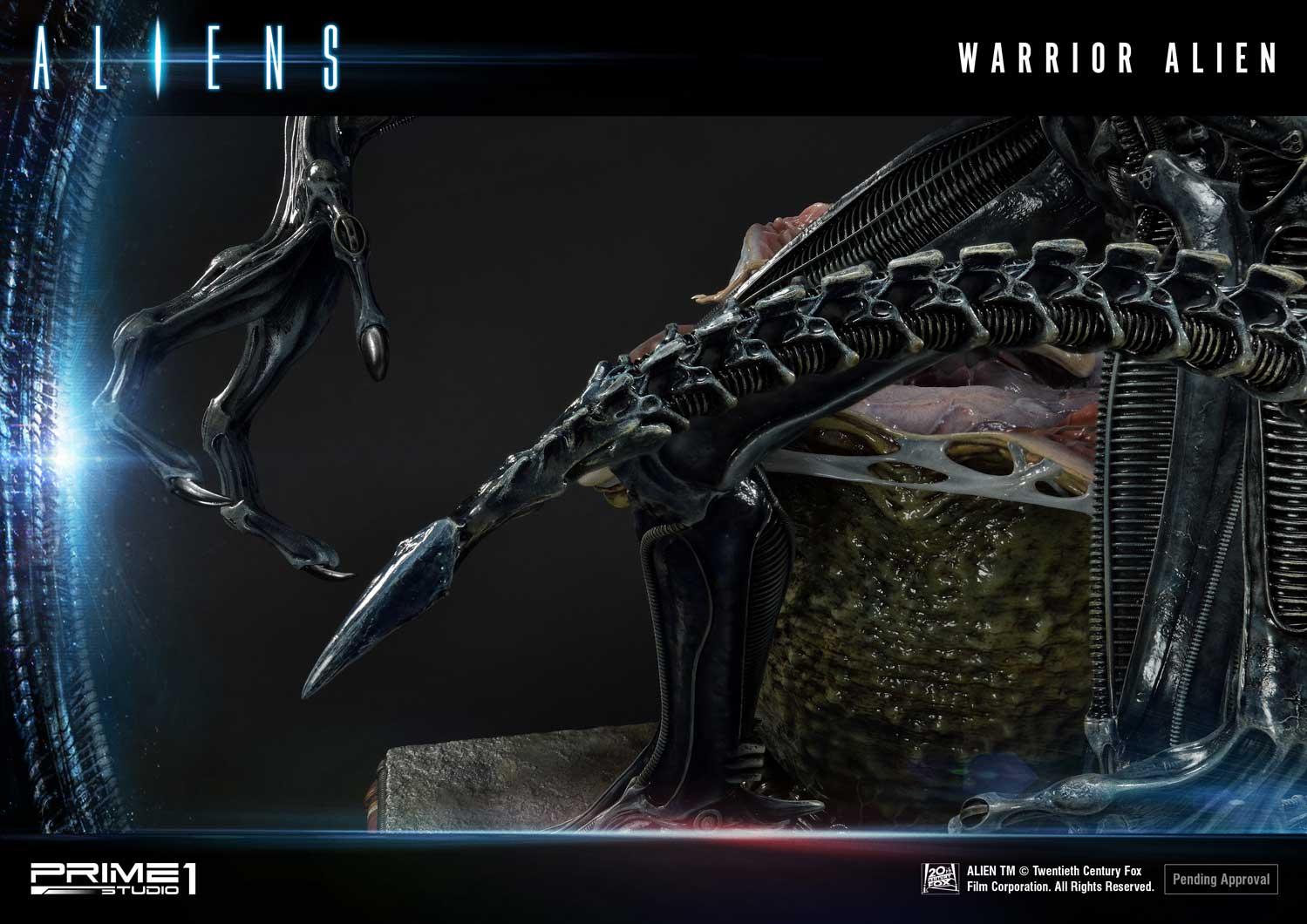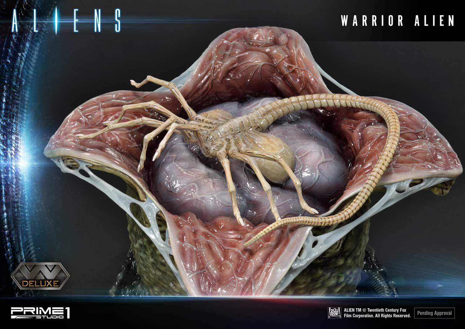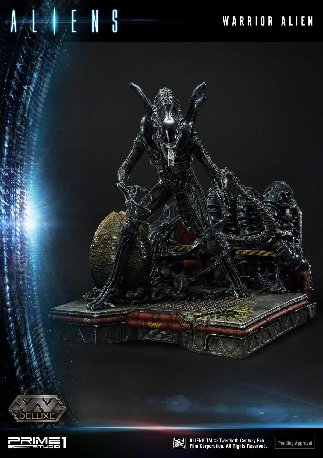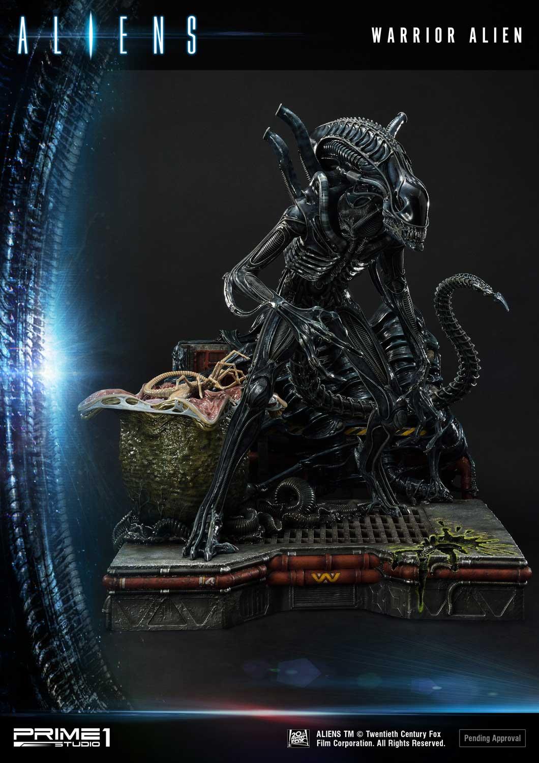 Take a look at the Warrior Alien Deluxe version here. Paired with its brethren face-hugger in an egg. The Aliens Ovomorph crafted with perfect attention to detail, with the DX version allowing for an open or closed egg cocoon switchout. It’s adult counterpart sinistrously stands 26 inches tall and ready to kill. Its skin glossy, with the alien head producing that “mechanical” feel. Notice the hole in the ground from their acidic blood. This base tells the story of a ship becoming overrun by the terrifying Xenomorphs. Pre-Order on Prime 1 Studio website early and receive an exclusive bonus item M41A Pulse Rifle. We have put everything into recreating the best Xenomorph image and is a must-have for Alien fans everywhere.