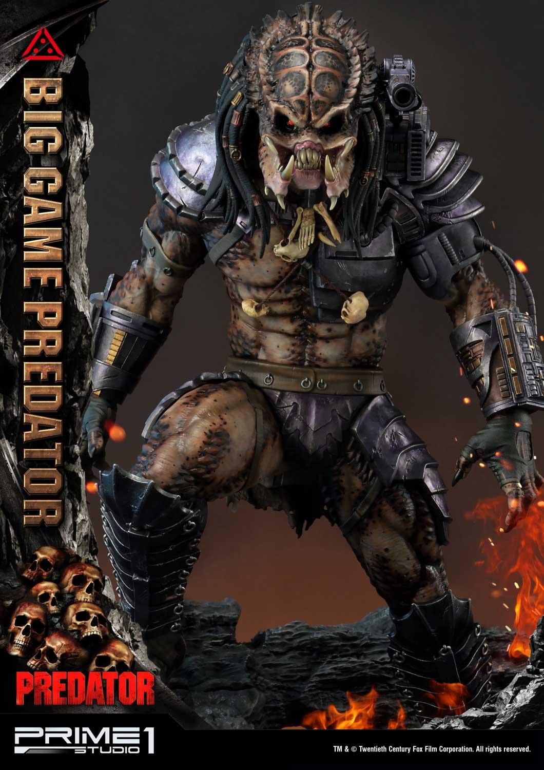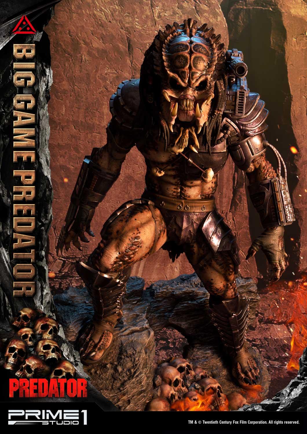 The Big Game Predator is standing on a pile of human skulls and it measures approximately 27 inches tall.
