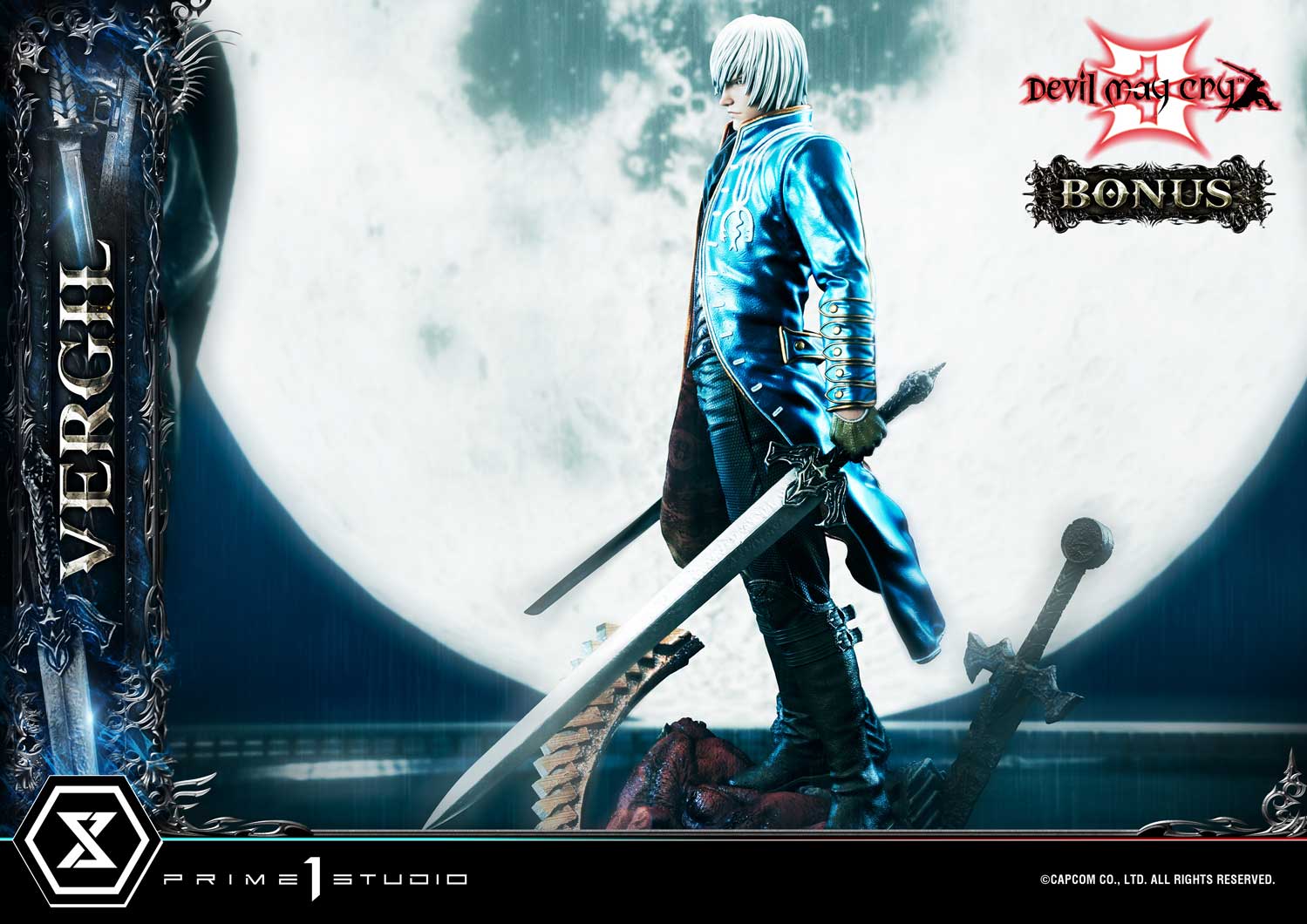 That’s not all! Order on the Prime 1 Studio official online store and you will be gifted an extra head portrait that portrays Vergil with his hair down, which we all know is a rare sight for fans. This alternative head is sure to remind us of the complex relationship between the Nephilim twins.