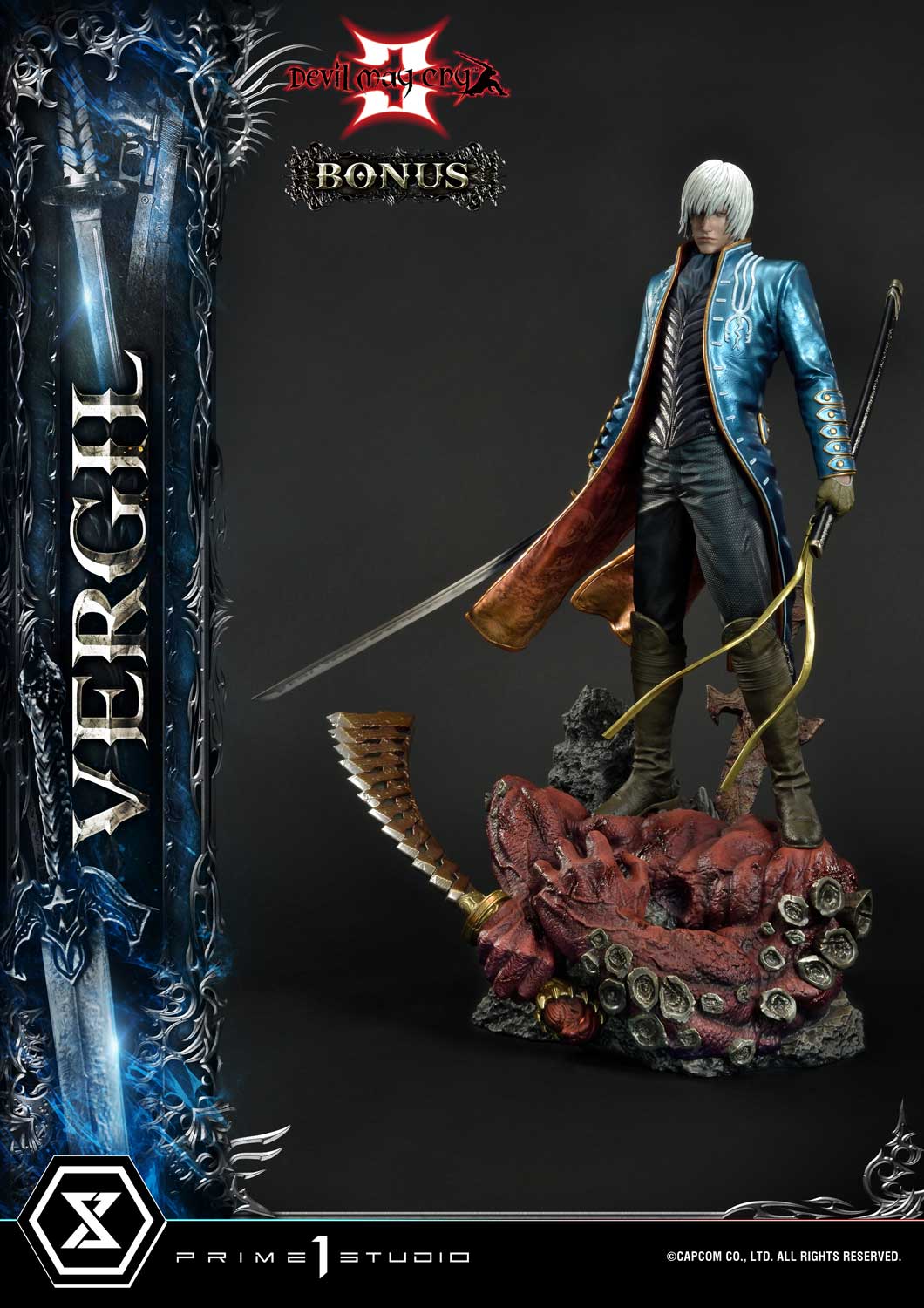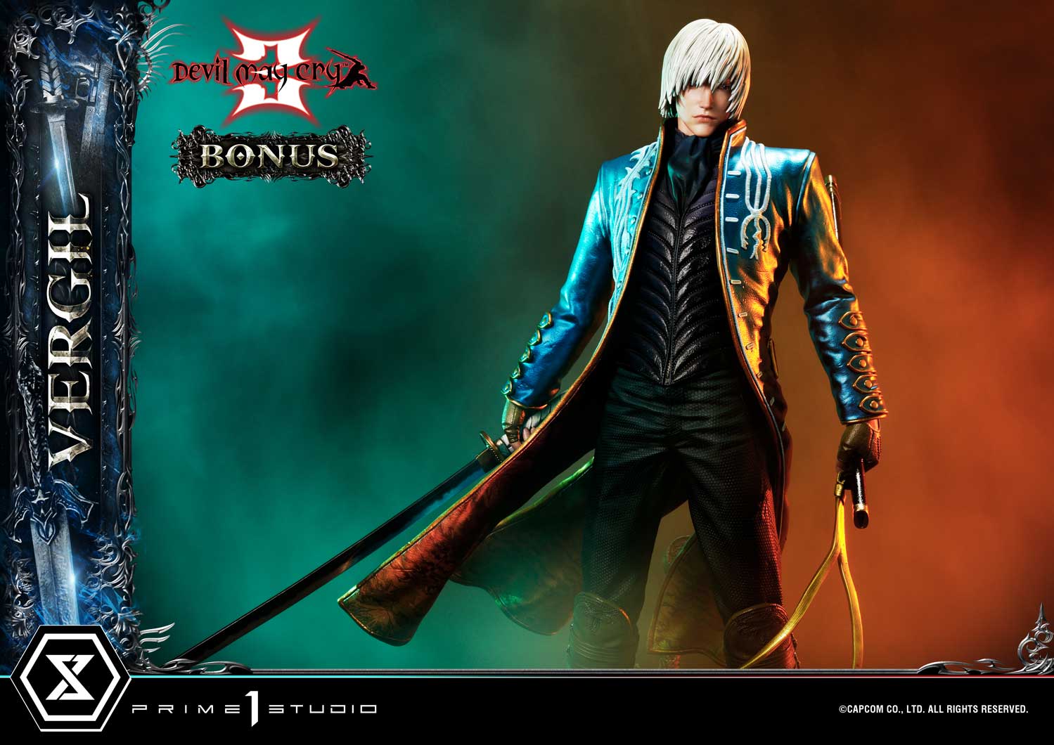 The enigmatic and powerful older twin brother of Dante now takes center stage for our next release. Standing at a mesmerizing 1/4 scale, Prime 1 Studio is proud to announce the UPMDMC3-02DXS Ultimate Premium Masterline Devil May Cry 3 Vergil DX Bonus Version!