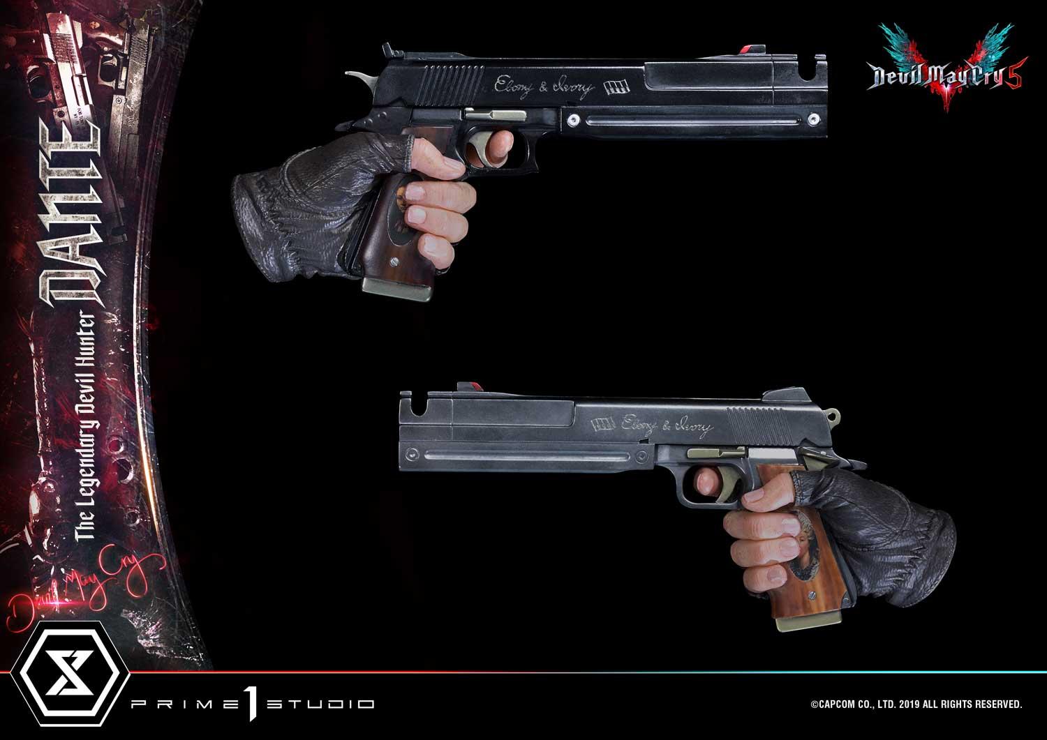 Finally, enjoy this high-quality statue on a Devil May Cry 5-themed base, adorned with Rebellion’s skeletal guard detail, Ebony & Ivory, and finished off with demonic design-elements from the game.