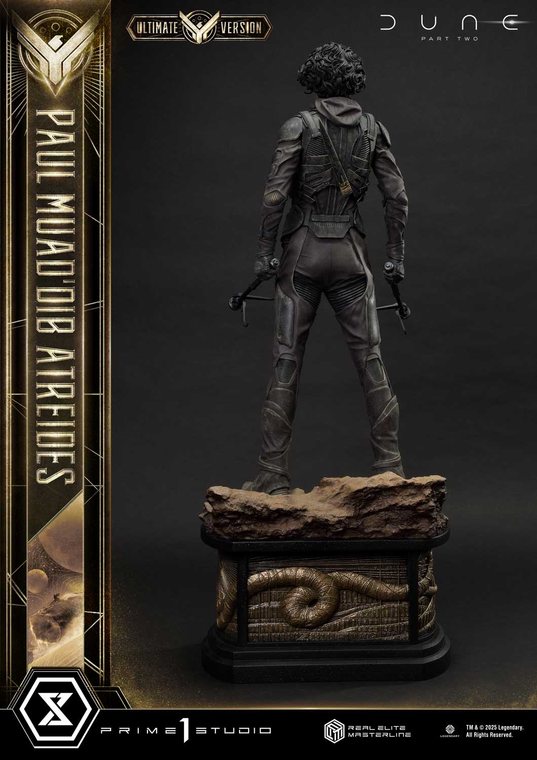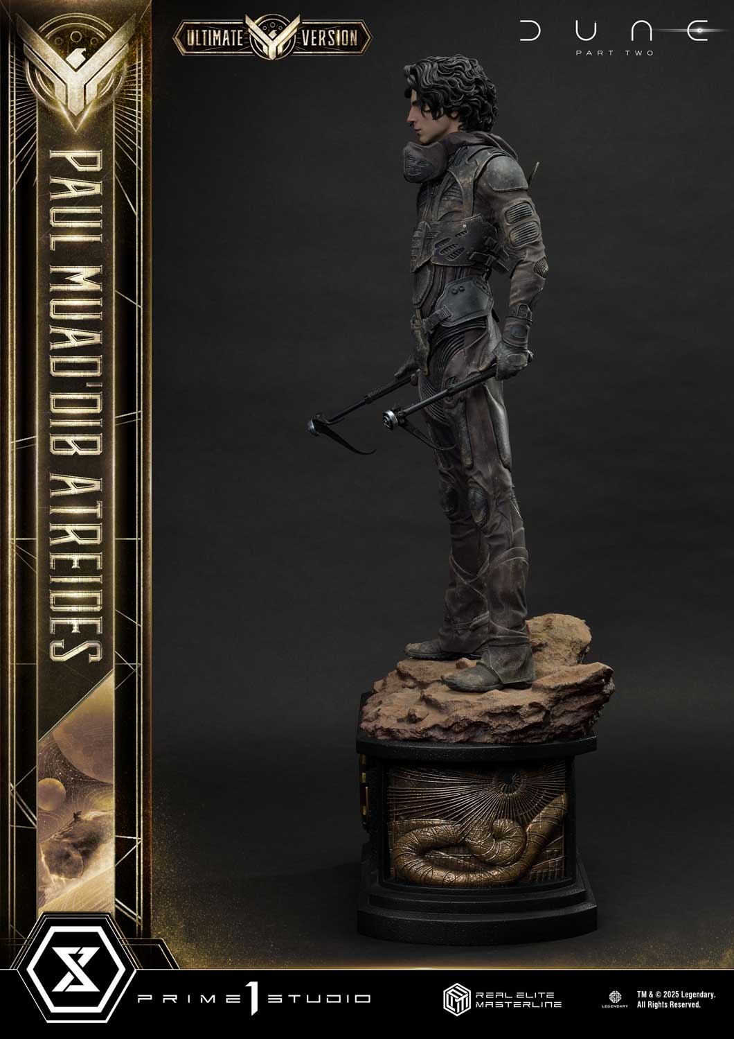This 1/3 scale statue captures Paul as he faces his destiny in Part Two. His pose, lifting the crysknife high, is inspired by the key visual, embodying his resolute spirit to avenge, to protect his loved ones, and to fulfill his role.