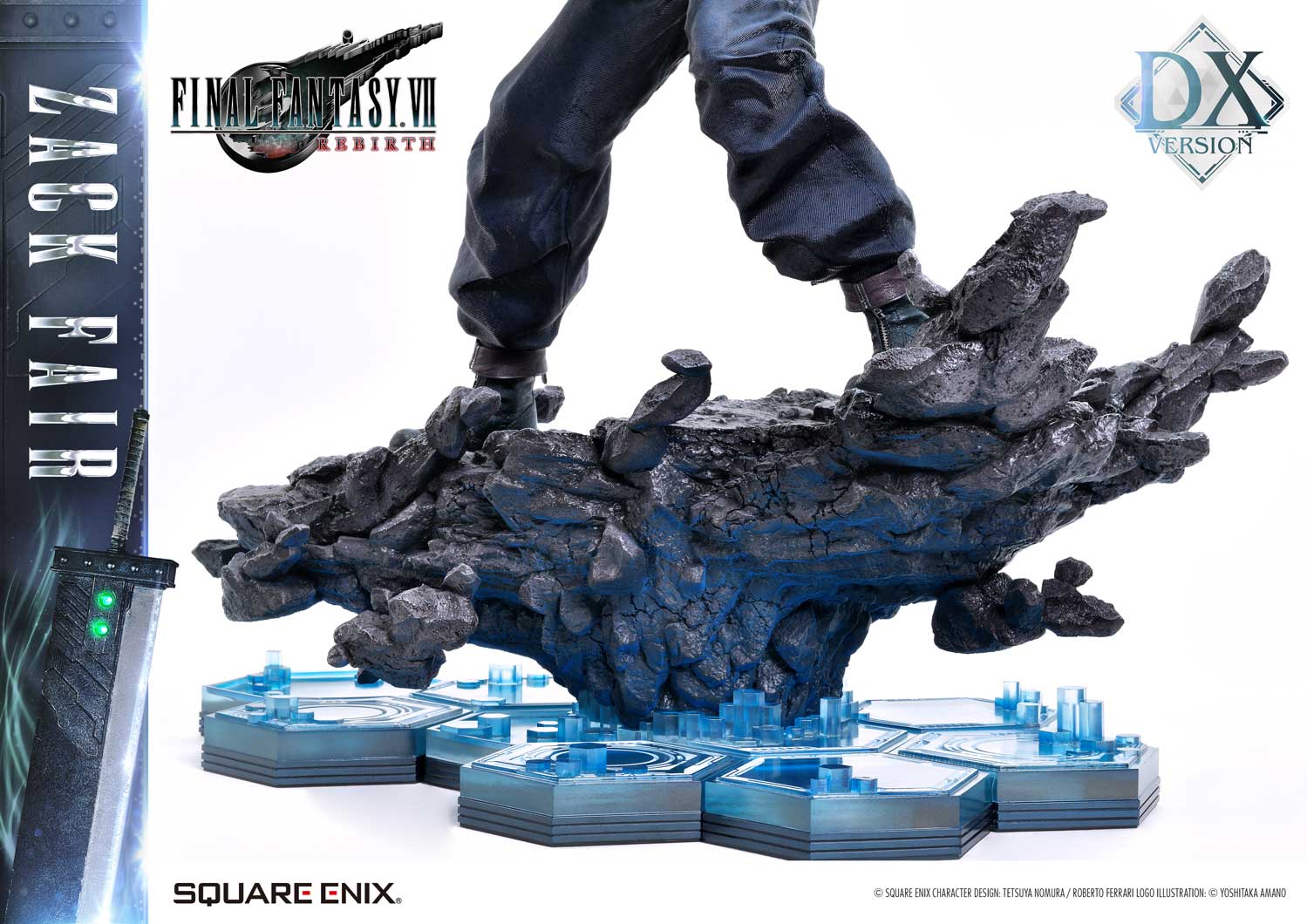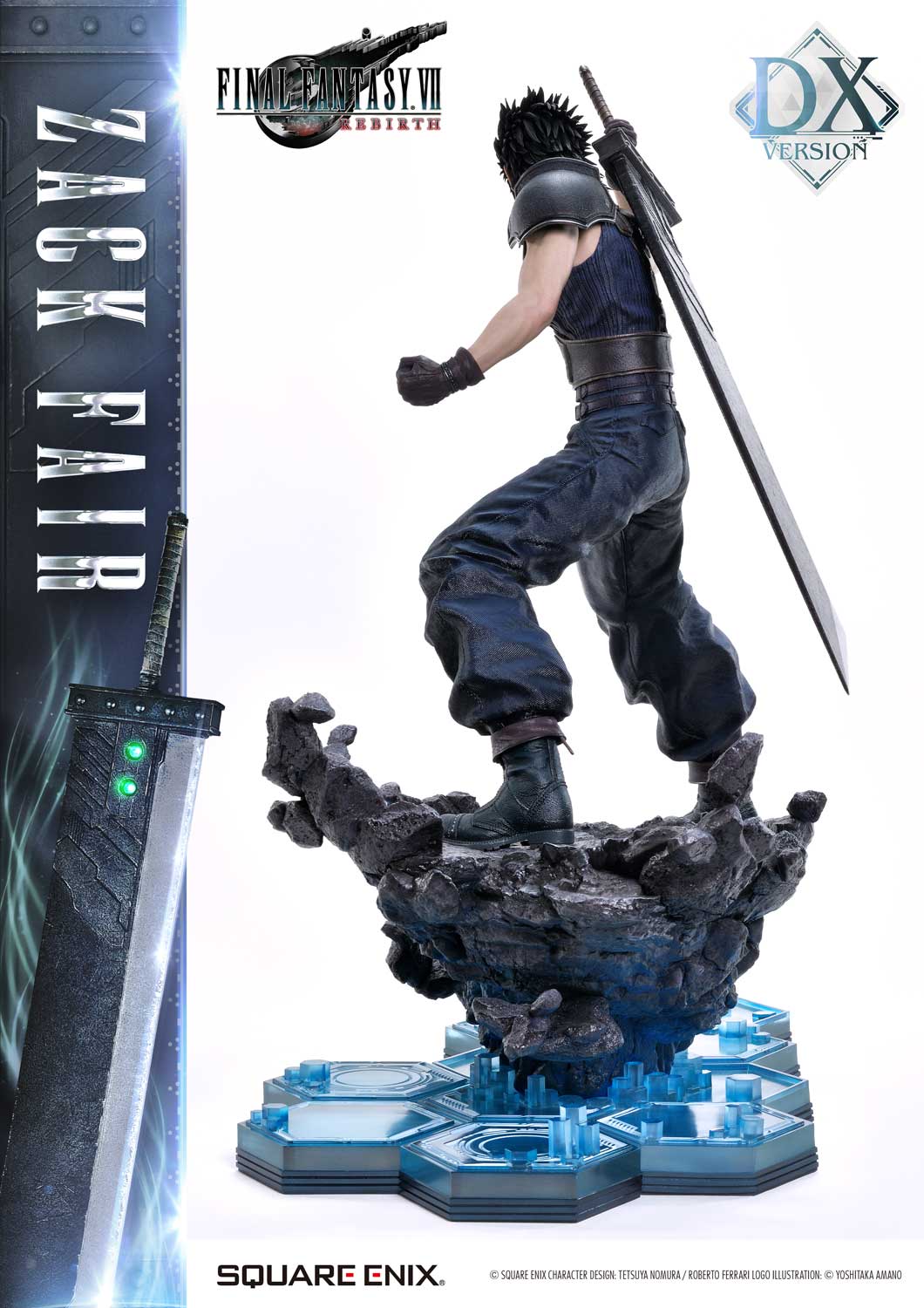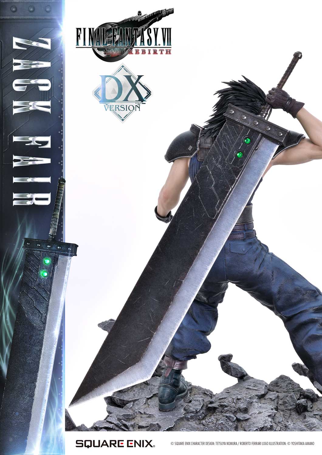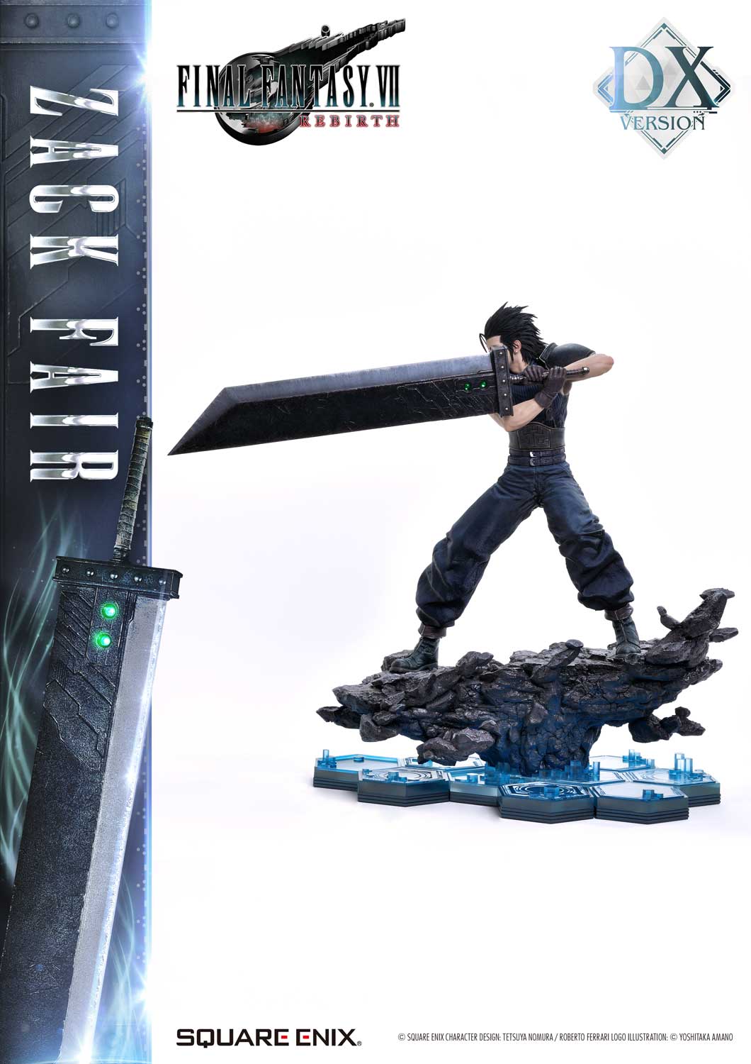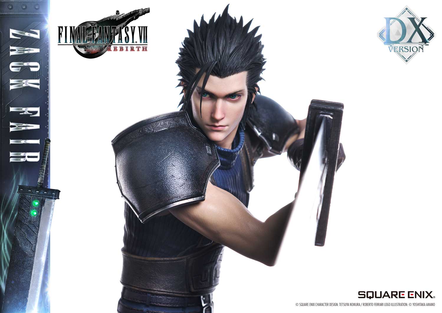 The DX version includes interchangeable left and right arms to change Zack’s pose with the Buster Sword. Pose Zack as he reaches for the sword on his back or readies himself for a powerful strike from a high stance. A title logo stand is also included, allowing you to create various storytelling moments.
