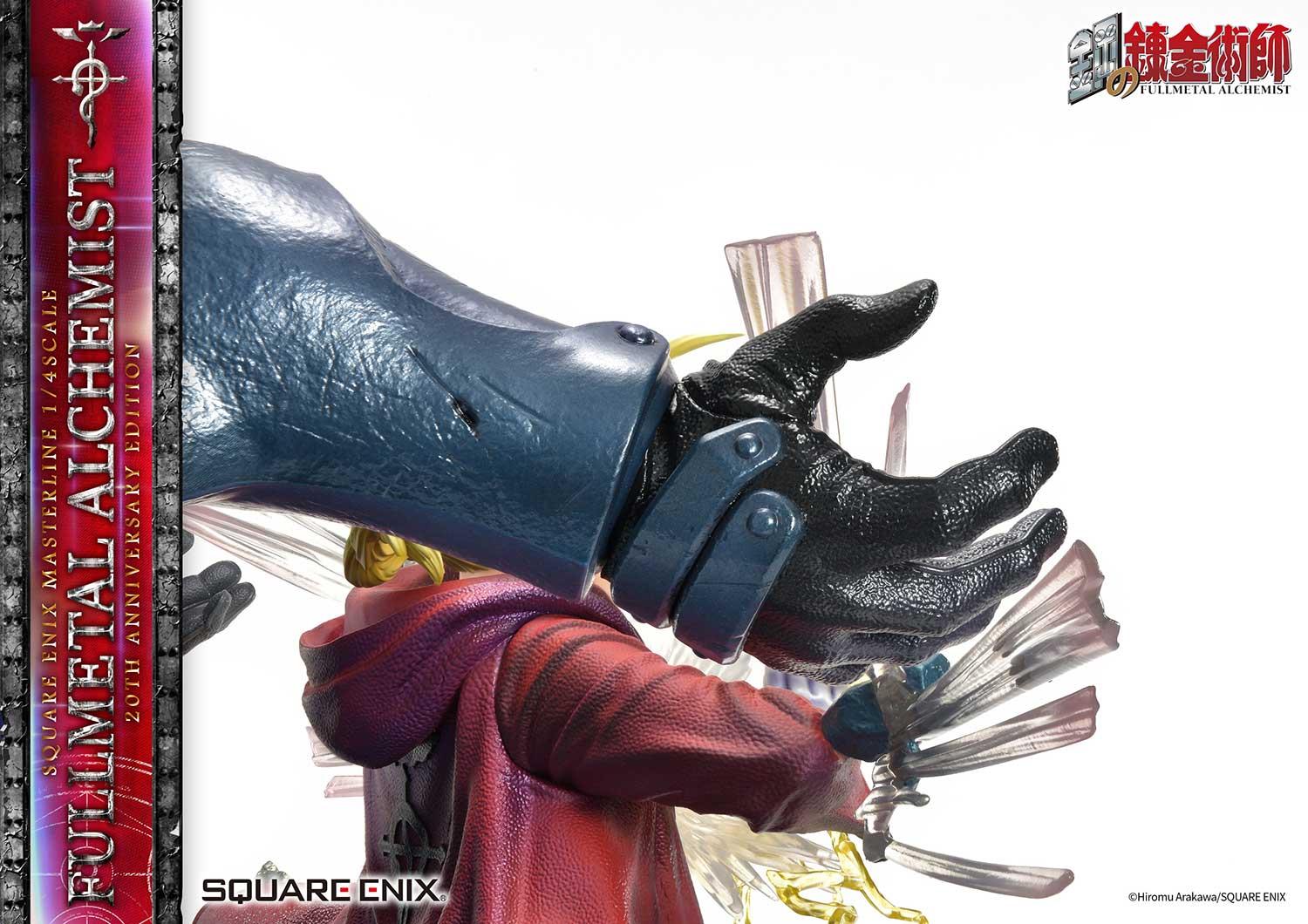 the bold presence of a 1/4 scale combines with finely crafted details to feature meticulous paintwork that reproduces light reflections from Edward's alchemy in a beautiful presentation that brings the original illustration to life.
