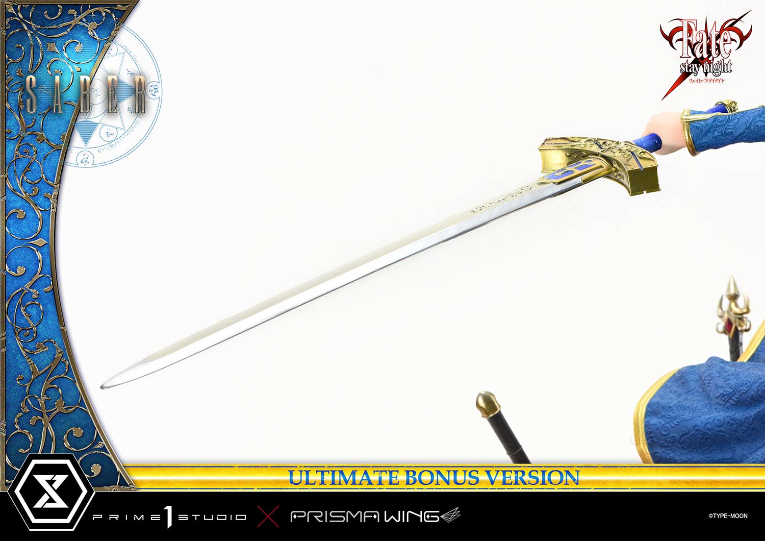 The Ultimate Bonus Version comes with an array of additional parts, allowing for multiple display options. Recreate her powerful sword techniques—unleashing a golden brilliance in her Noble Phantasm Unleashed attack, or wielding her blade in its Invisible Air form while wearing only her dress. A bust stand is also included for even more display possibilities.