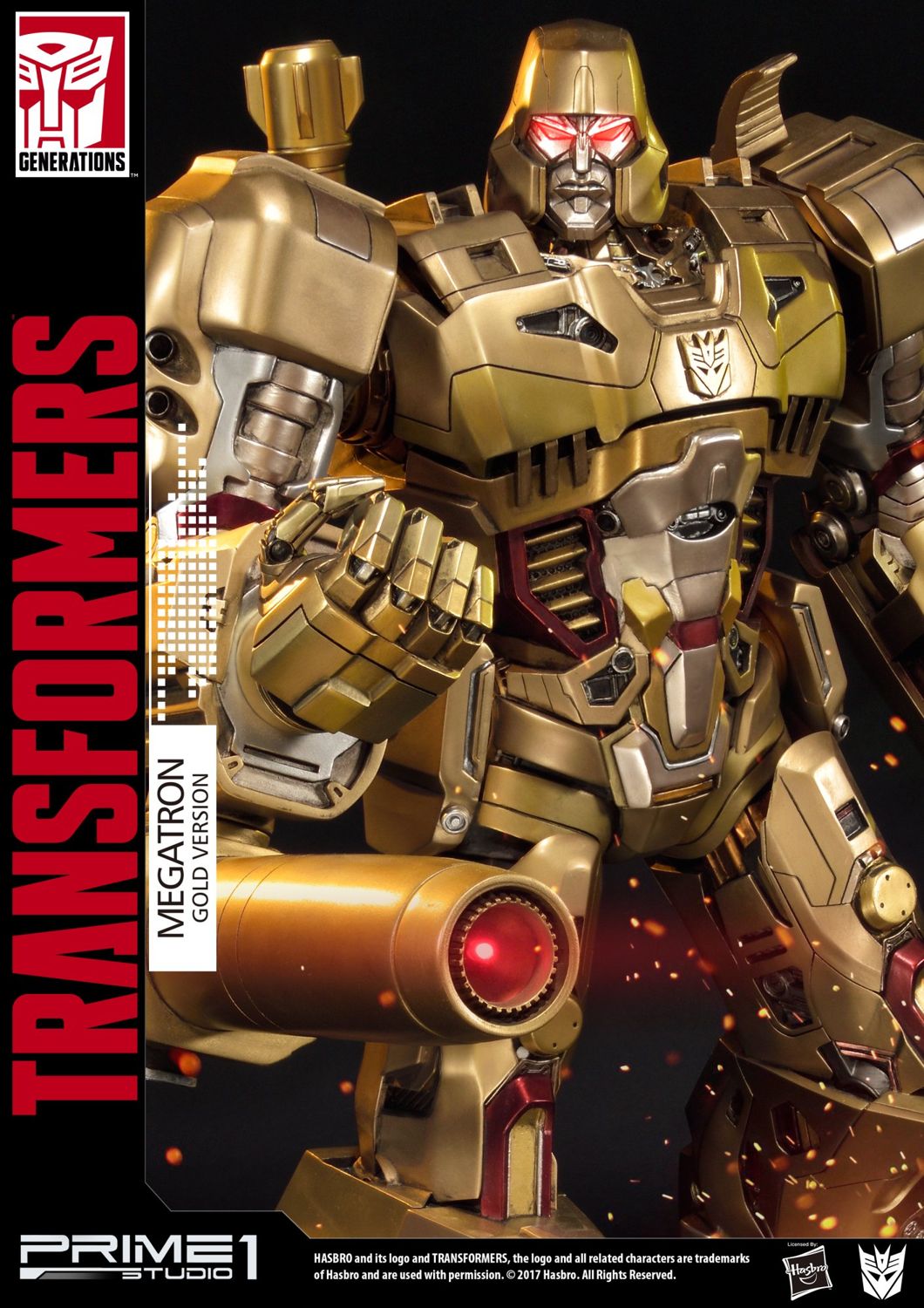 Prime 1 Studio is proud to present Premium Masterline Megatron Transformers: Generation 1, the Founder and Leader of the Decepticon. Designs by renowned artist Josh Nizzi famous for his interpretation Transformers movies. Megatron is crafted with impressive attention to detail and features LED light-up eyes and his fusion cannon. It stands around 23 inches tall and is an ultimate must-have piece for all Transformers Fans.