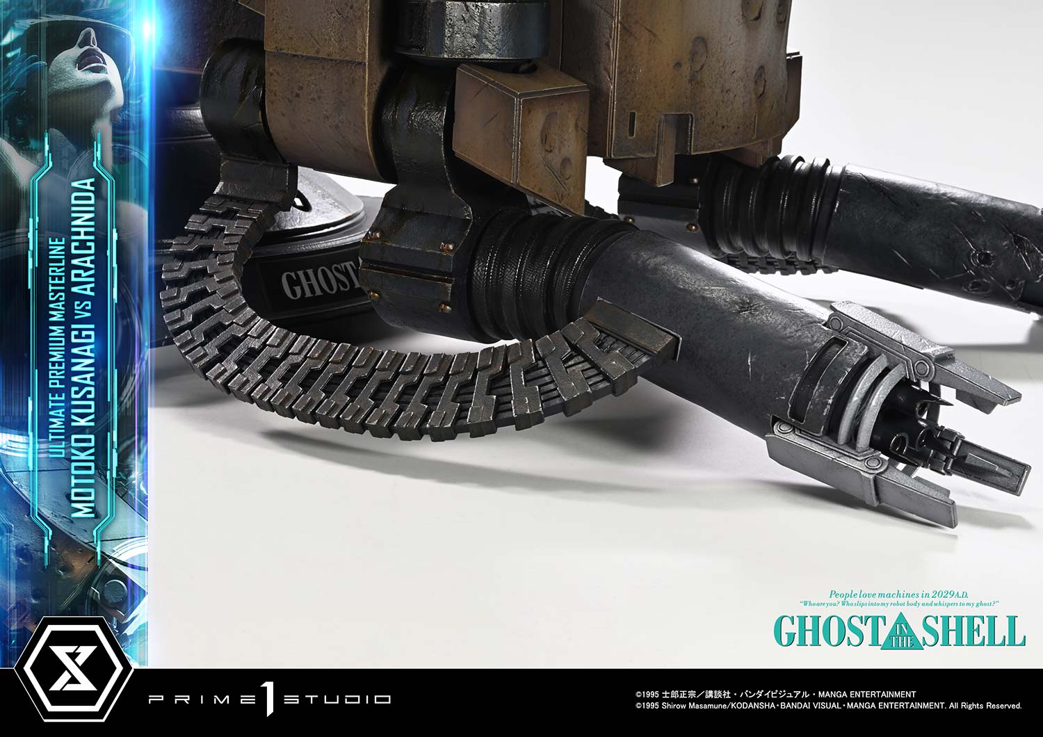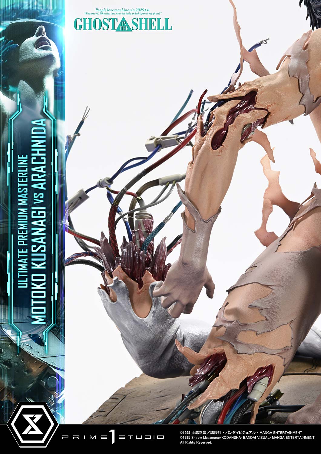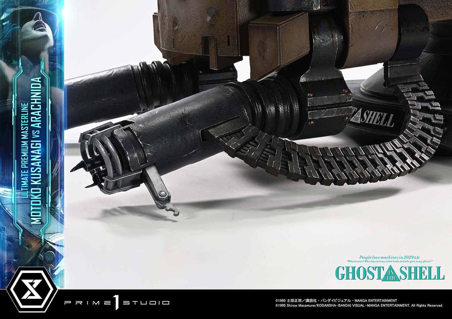 Released in theaters in 1995, "GHOST IN THE SHELL" continues to inspire tech culture around the world. From the visionary mind of director Mamoru Oshii, the iconic showdown between Motoko Kusanagi and the Arachnida comes to life in the Ultimate Premium Masterline series.