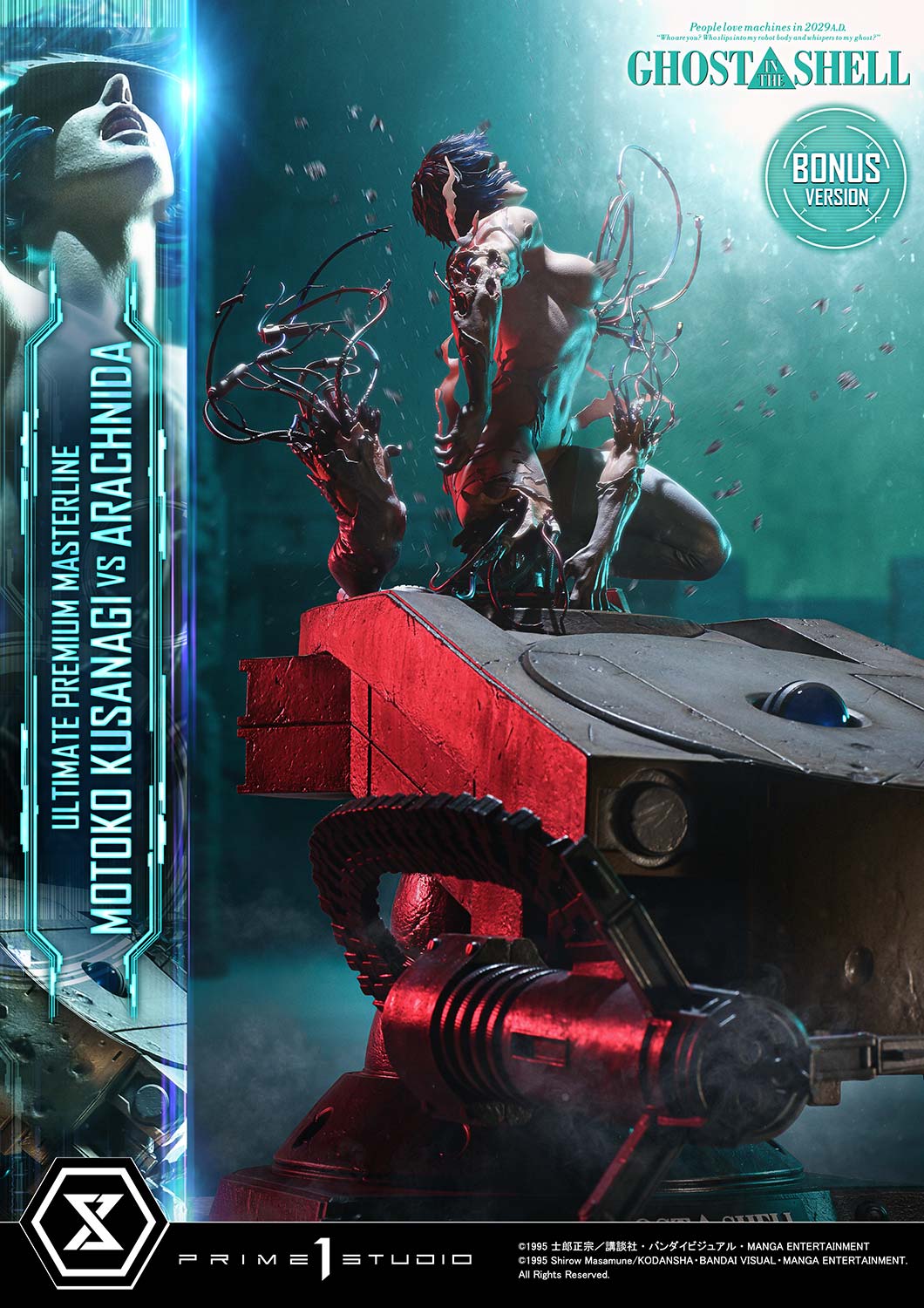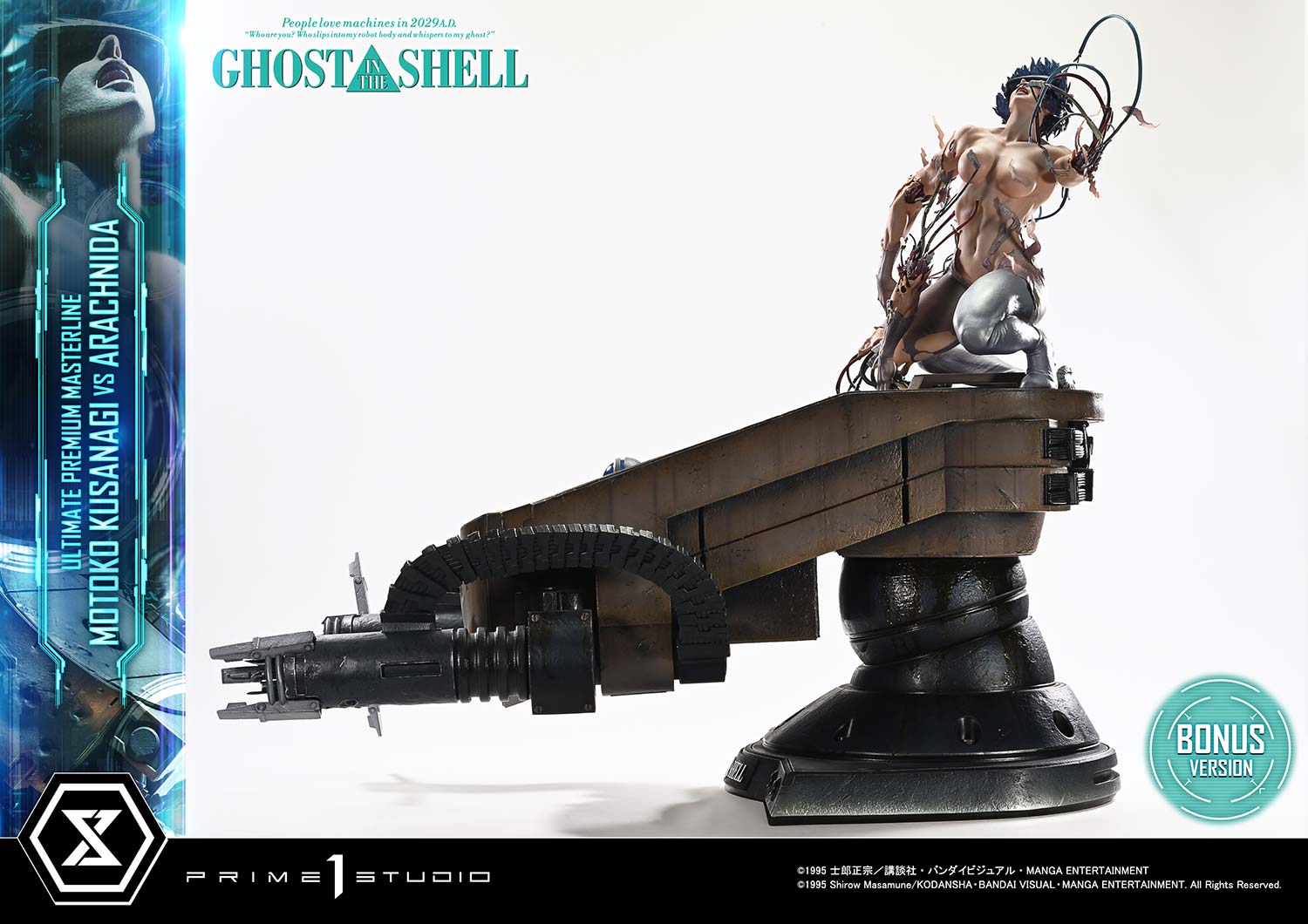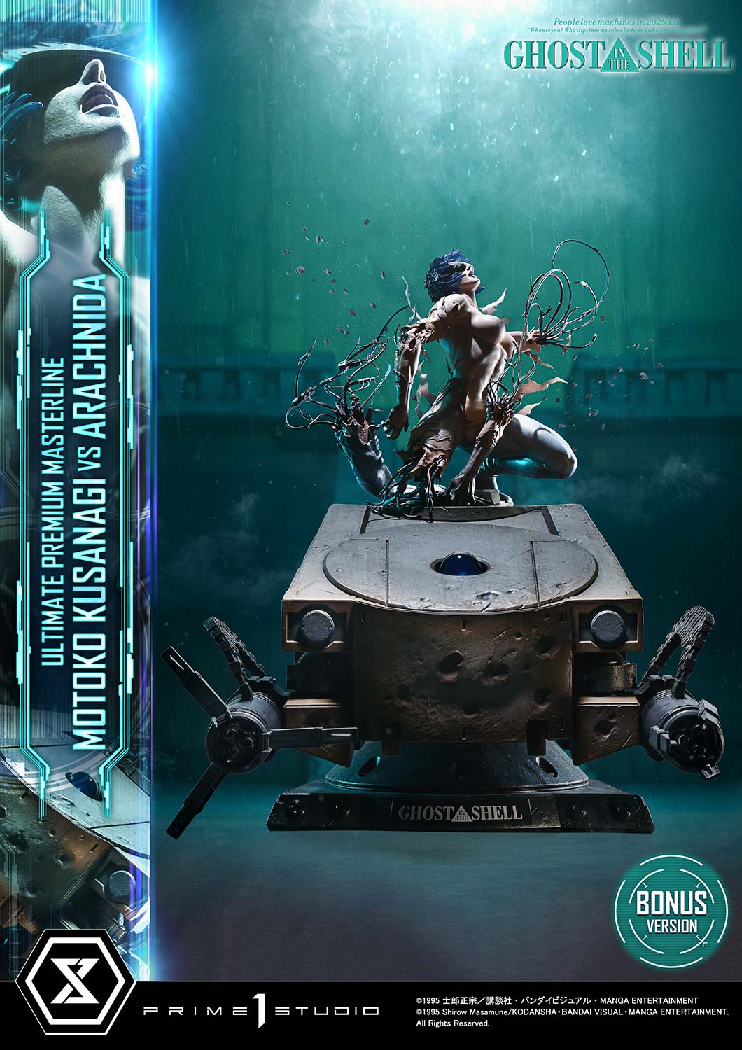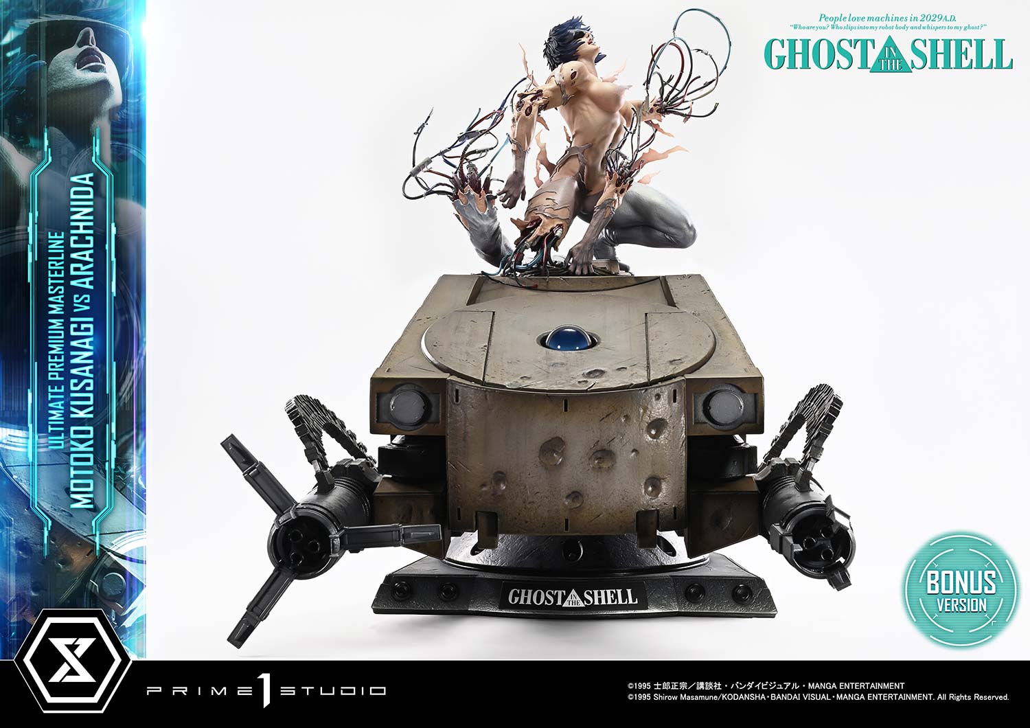Released in theaters in 1995, "GHOST IN THE SHELL" continues to inspire tech culture around the world. From the visionary mind of director Mamoru Oshii, the iconic showdown between Motoko Kusanagi and the Arachnida comes to life in the Ultimate Premium Masterline series.