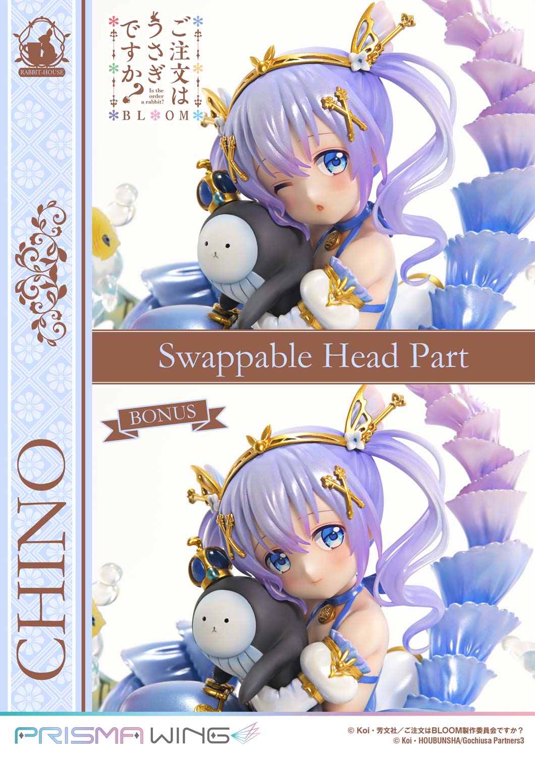 From “Is the Order a Rabbit? BLOOM,” the storybook-style illustration of “Chino,” inspired by a little mermaid, has been brought to life as a figure for the very first time. From her gentle facial expression and carefully composed pose to the vividly colored undersea world that surrounds her, every detail has been meticulously sculpted. Showcasing a fairytale-inspired look rarely seen in her usually cool demeanor, this figure presents “Chino” in full bloom of charming sweetness.