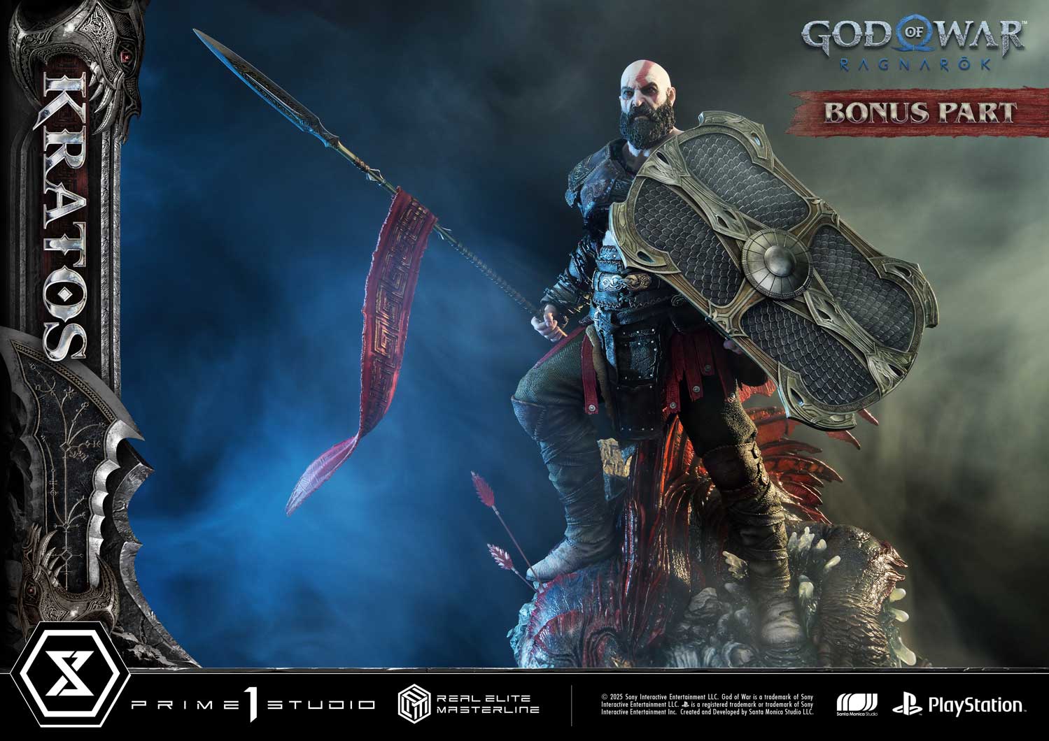 The Ultimate Bonus Version includes a variety of additional parts: an alternate angry expression head sculpt, the Stone Wall Shield, the Guardian Shield in its stored form, and fully-upgraded versions of the Leviathan Axe and Blades of Chaos. Pair these with the bust stand to recreate your favorite scenes.