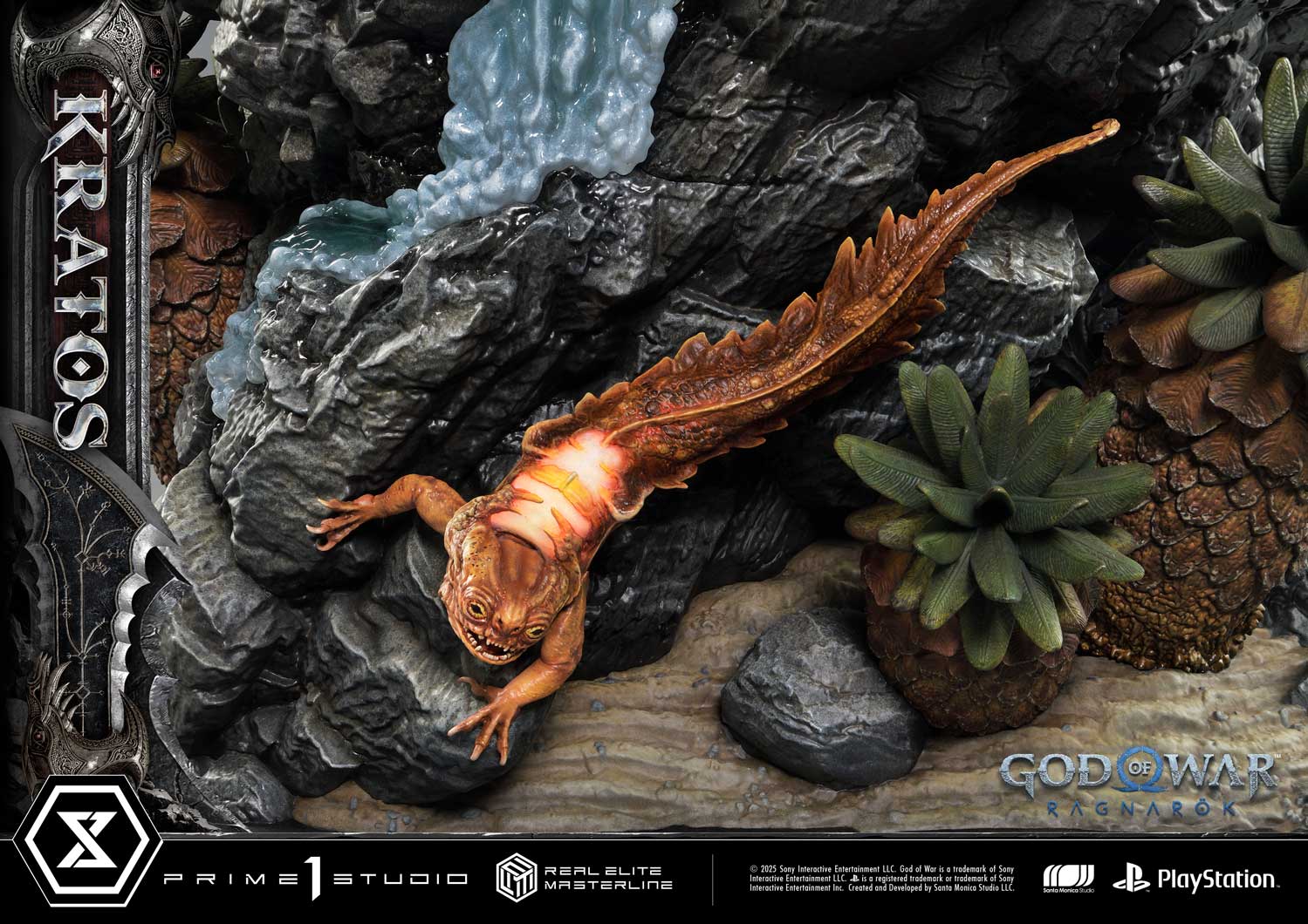 The specially designed base is inspired by the Norse lands. The Drekki lying on the rocky shores is brought to life with ferocious fangs and glistening eyes, evoking the sense that it was alive just moments ago. Naturally, the arrows embedded in its body were fired by Atreus, vividly recalling the journey of father and son.