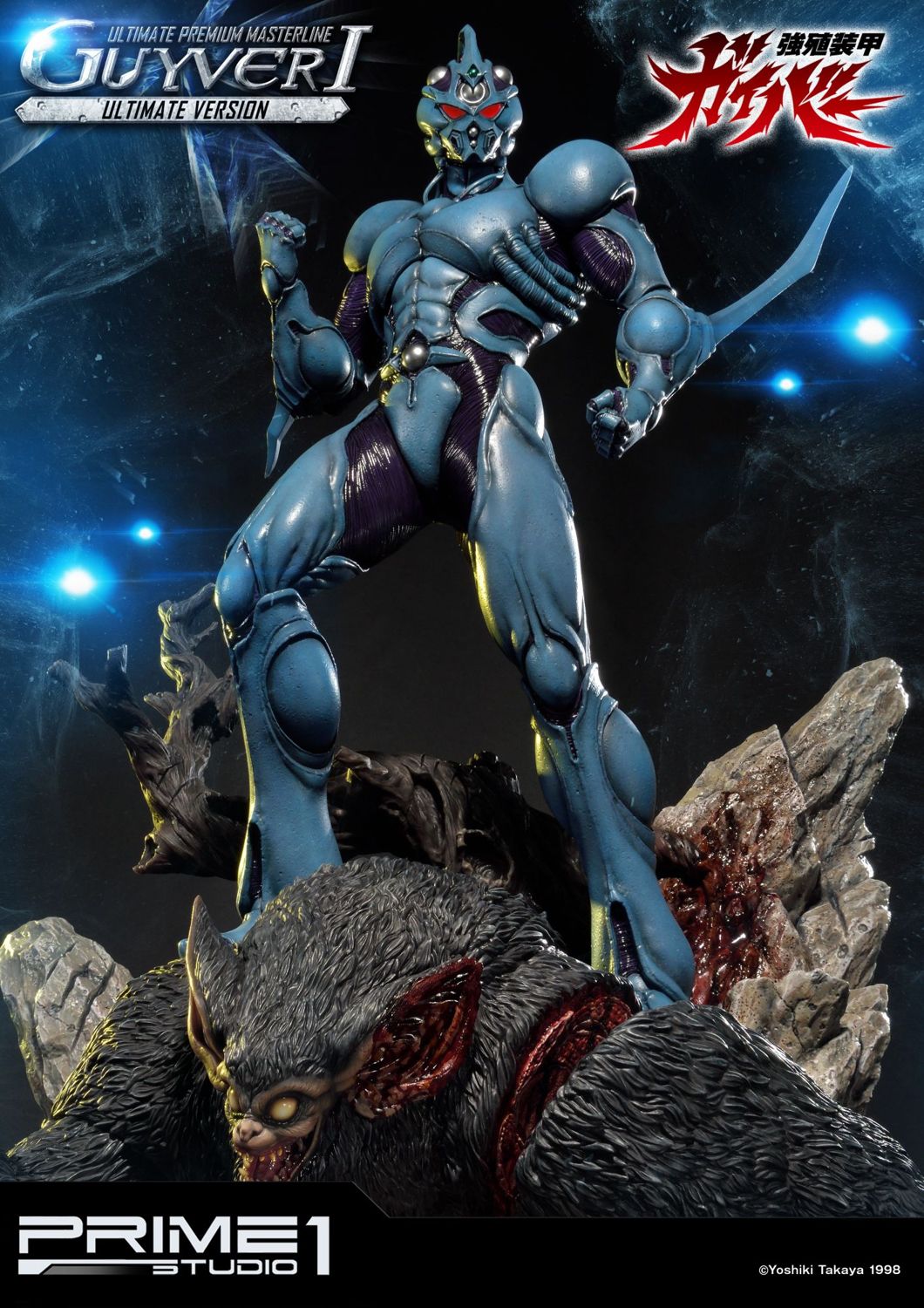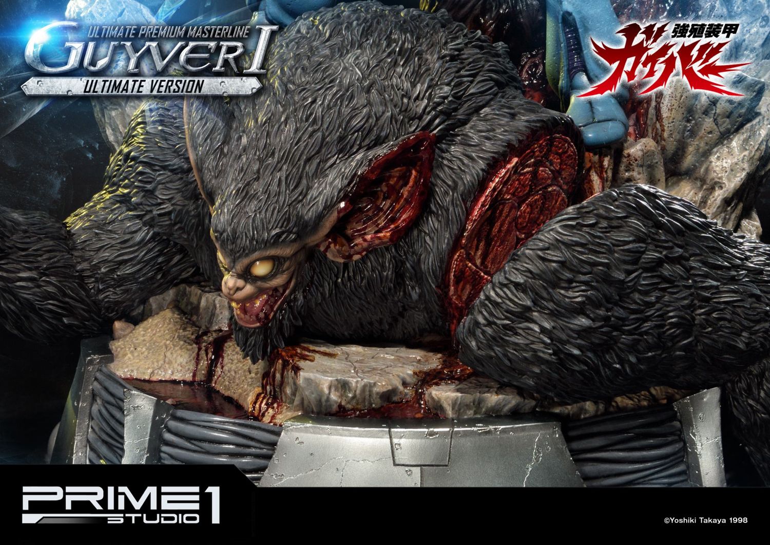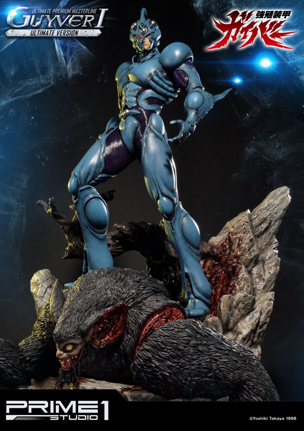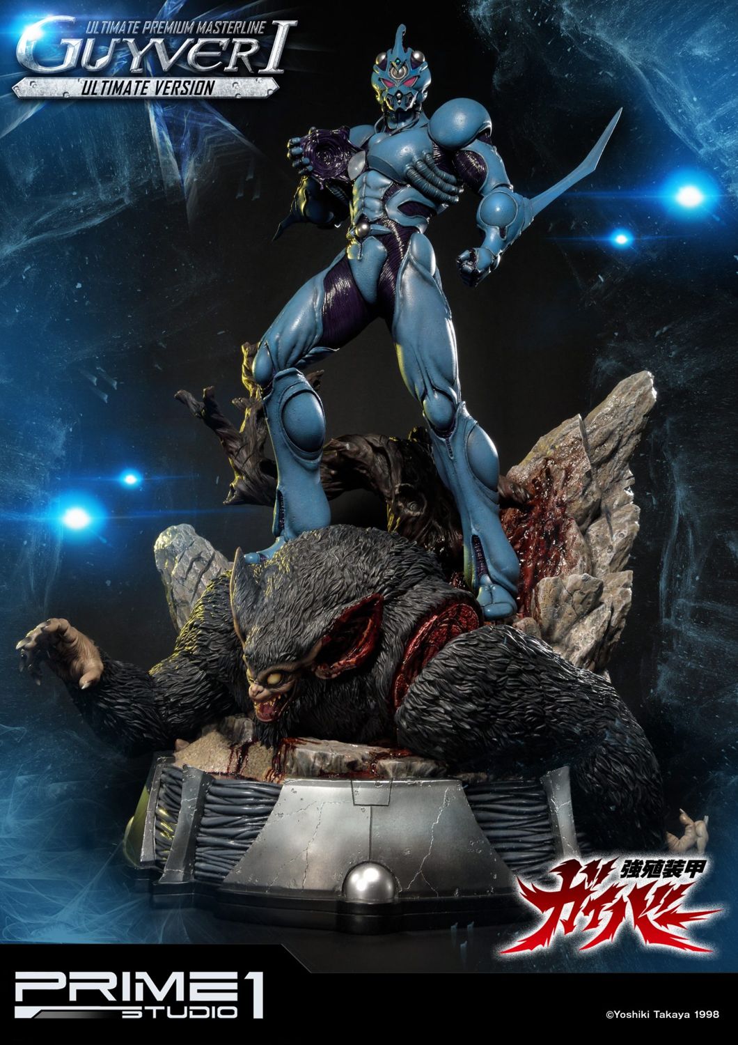Prime 1 Studio is proud to present UPMGV-01UT: Guyver I Ultimate Version from the Guyver: The Bioboosted armor. Sho Fukamachi is the main protagonist of the anime/manga series. Sho is seventeen years old and a second-year student at Narisawa High School. The Chronos Corporation has secret plans for the world and have biologically engineered employees and soldiers so that they can transform into powerful monsters at will, beings called Zoanoids. A test type Zoanoid, disguised as a normal man, escapes after stealing a bag containing three items Chronos was studying, known as the Guyver units. Chronos soldiers attempt to recover the units from the test-type but he activates a grenade, killing himself and scattering the Guyver units. One of the lost units is discovered by Sho and he accidentally activates the unit and it merges him with biological-armor that increases all his physical abilities and arms him with deadly weaponry. As he is the host for the first Unit activated, he is known as "Guyver I". The 32-inch statue represents Guyver I defeating a Ramotith, one of the Zoanoids developed by Chronos, standing in his way. This Ultimate version comes with the PBGV-01 which you will be able to interchange the Mega Smasher upper torso with the statue. This is the ultimate Guyver must have pieces for all Guyver Fans.