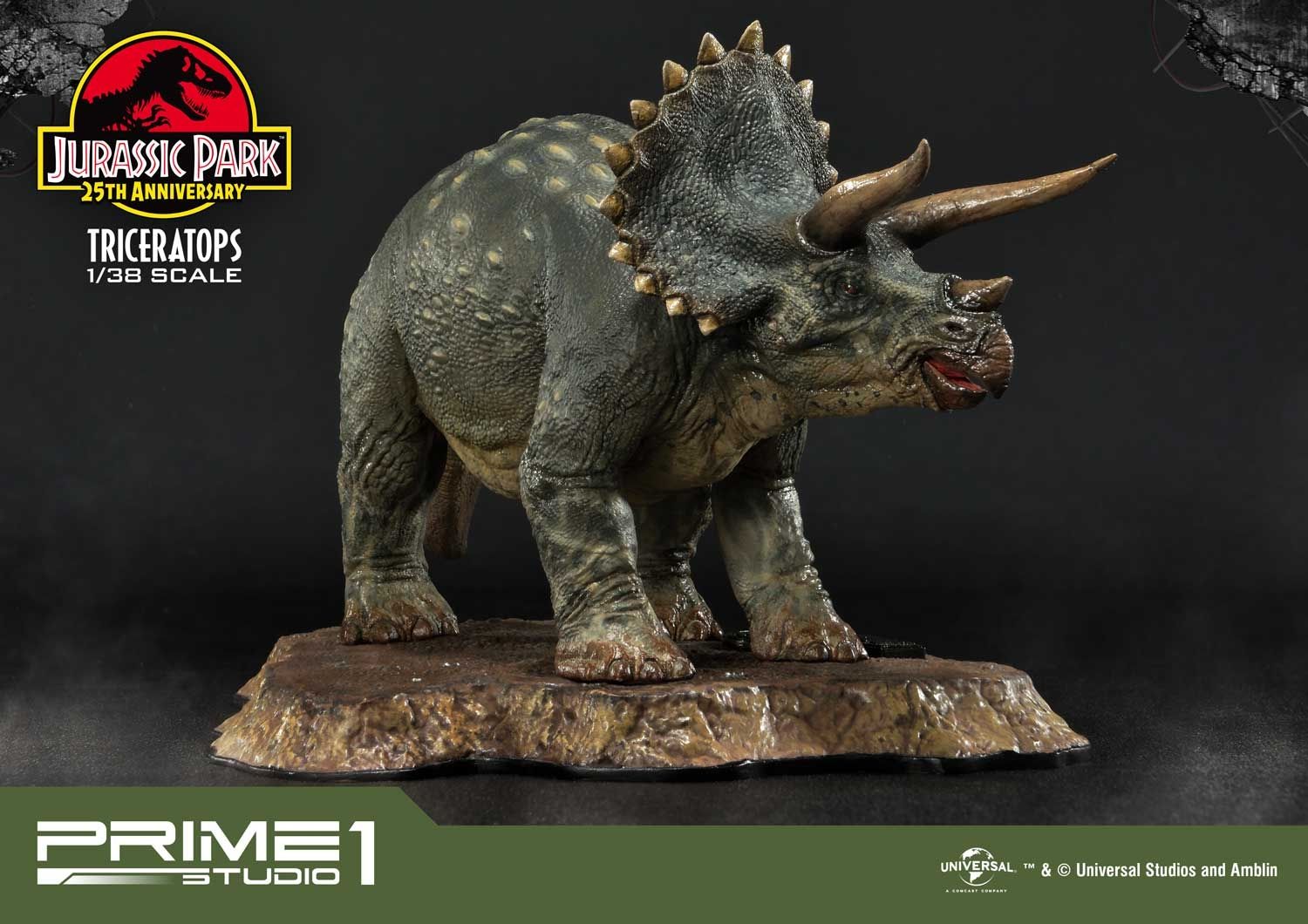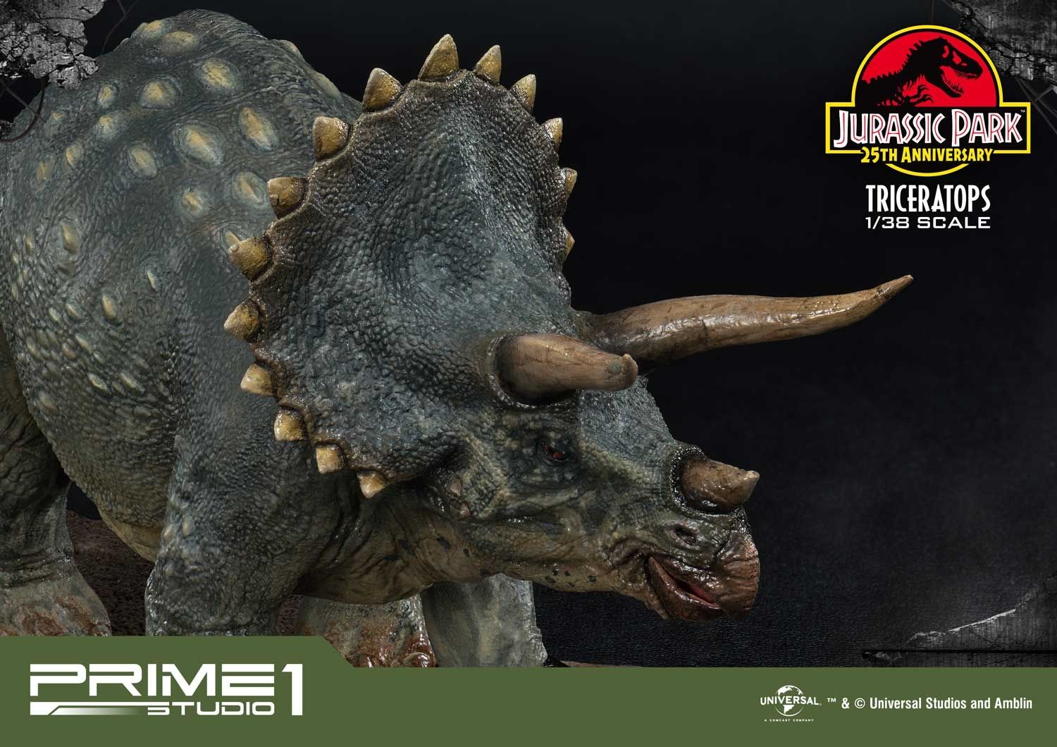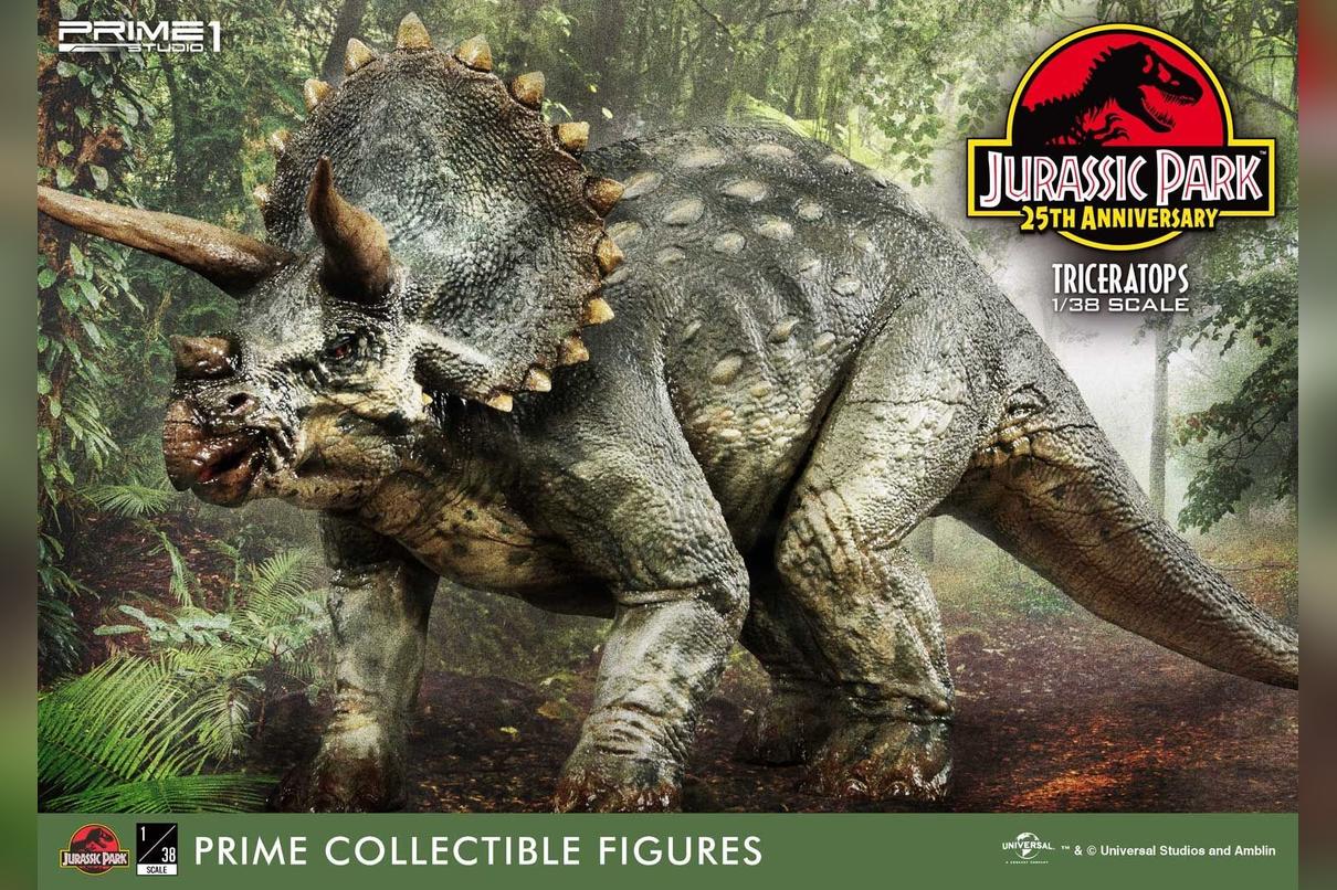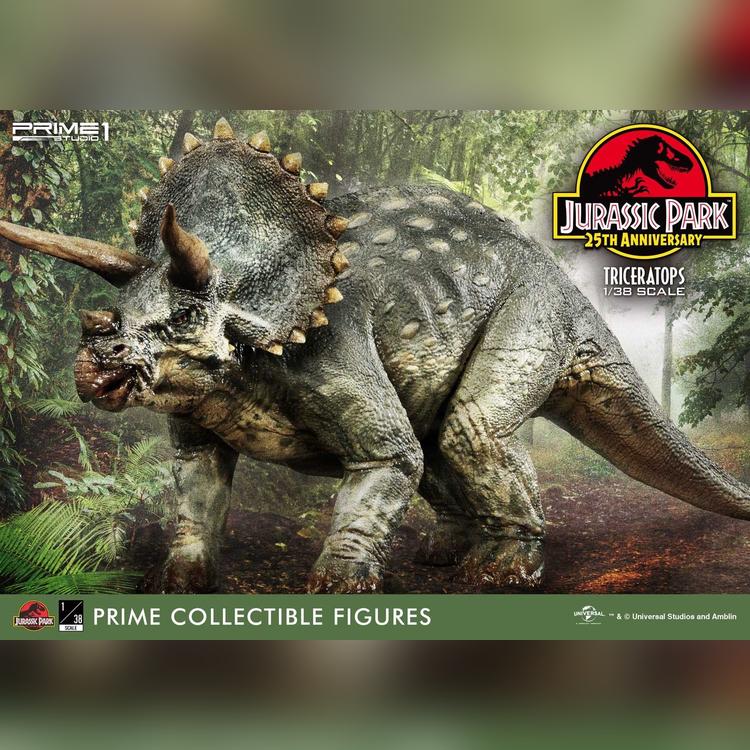 Prime 1 Studio takes pride in announcing the introduction of our new line Prime Collectibles Figure. PCFJP-02: Triceratops 1:38 Scale from Jurassic Park. Now fans have a new option of pocket-friendly and portable-friendly statue figures to collect. Triceratops was a very common dinosaur which lived at the very end of the Cretaceous period. It had a huge frilled head with horns over each eye that could reach over 4 feet long. Triceratops had a third, smaller horn on its nose. These would be fearsome weapons against a predator. There is more variety of dinosaurs joining to this series, soon. Prime 1 Studio fans, don't miss your chance to collect our new 1:38 scale Jurassic Park series!!