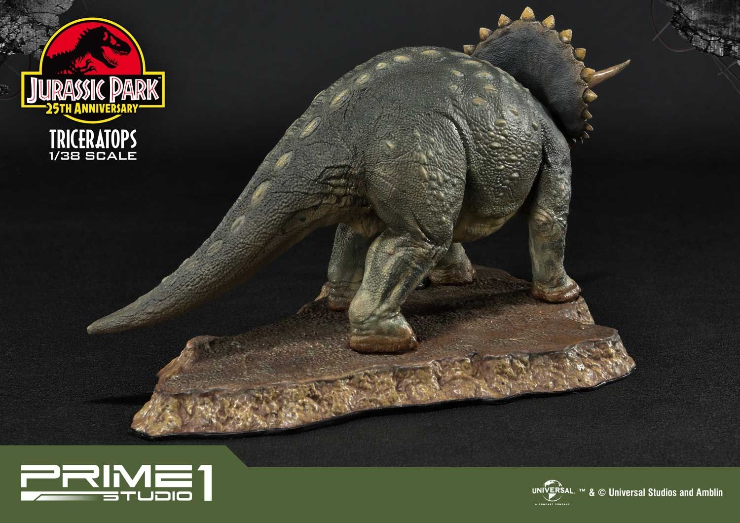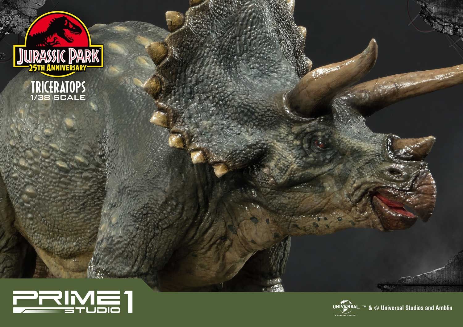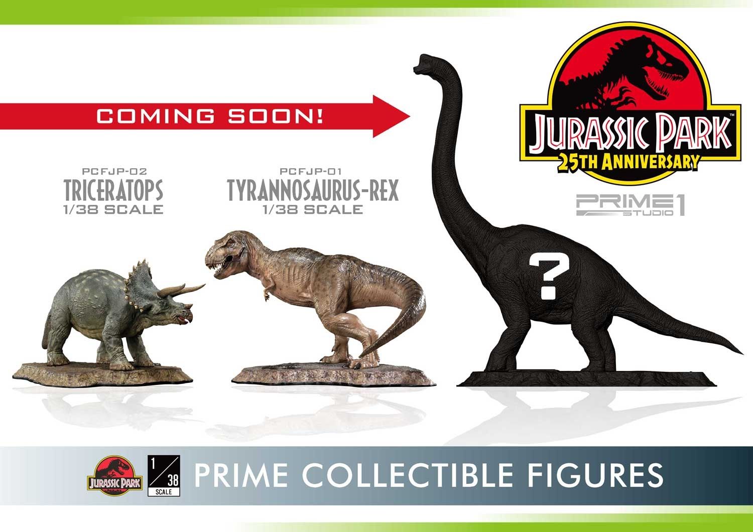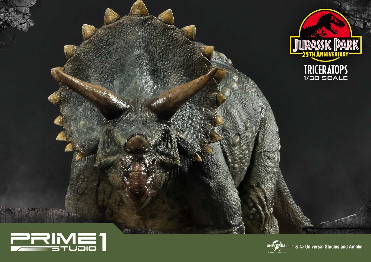 Prime 1 Studio takes pride in announcing the introduction of our new line Prime Collectibles Figure. PCFJP-02: Triceratops 1:38 Scale from Jurassic Park. Now fans have a new option of pocket-friendly and portable-friendly statue figures to collect. Triceratops was a very common dinosaur which lived at the very end of the Cretaceous period. It had a huge frilled head with horns over each eye that could reach over 4 feet long. Triceratops had a third, smaller horn on its nose. These would be fearsome weapons against a predator. There is more variety of dinosaurs joining to this series, soon. Prime 1 Studio fans, don't miss your chance to collect our new 1:38 scale Jurassic Park series!!