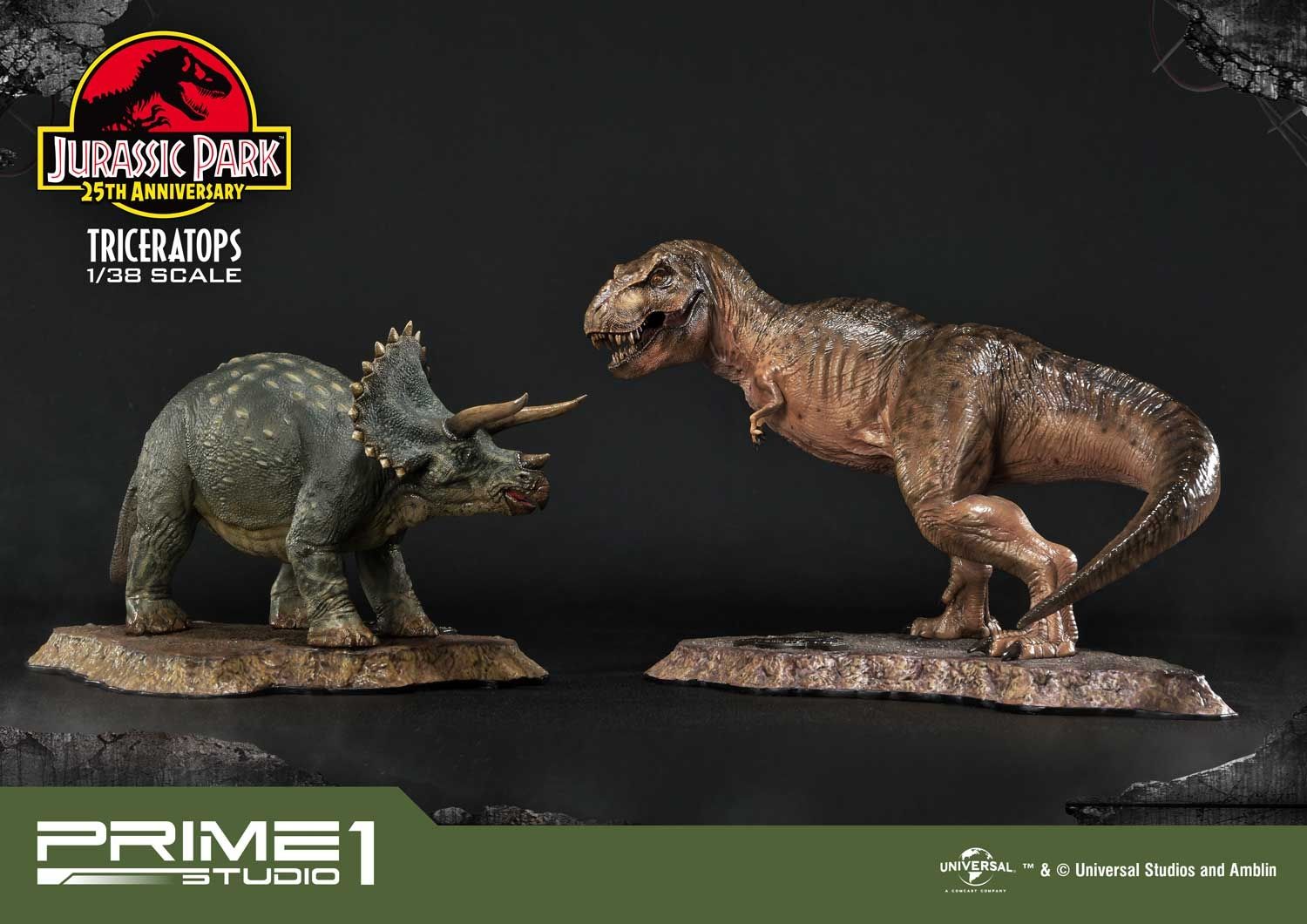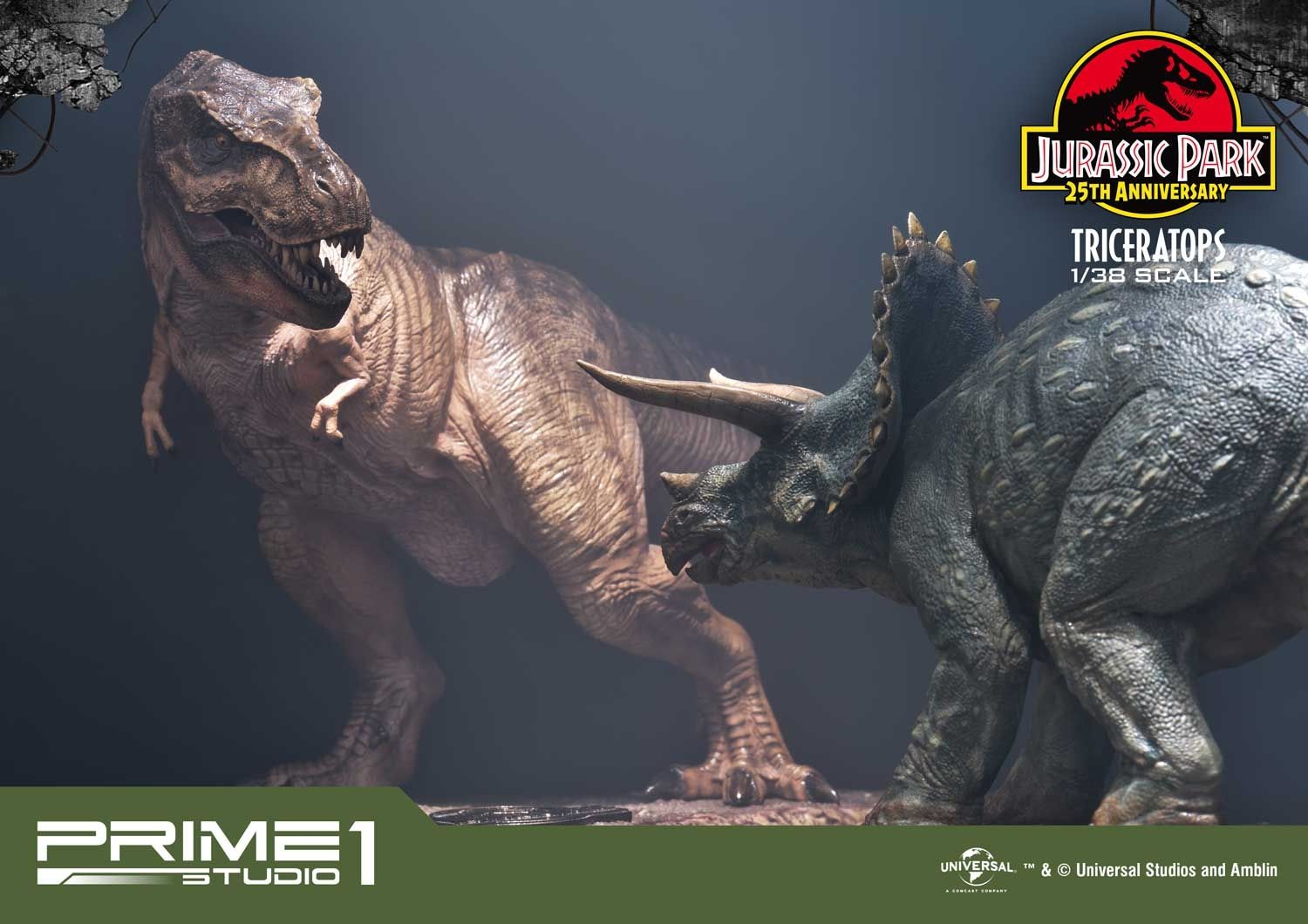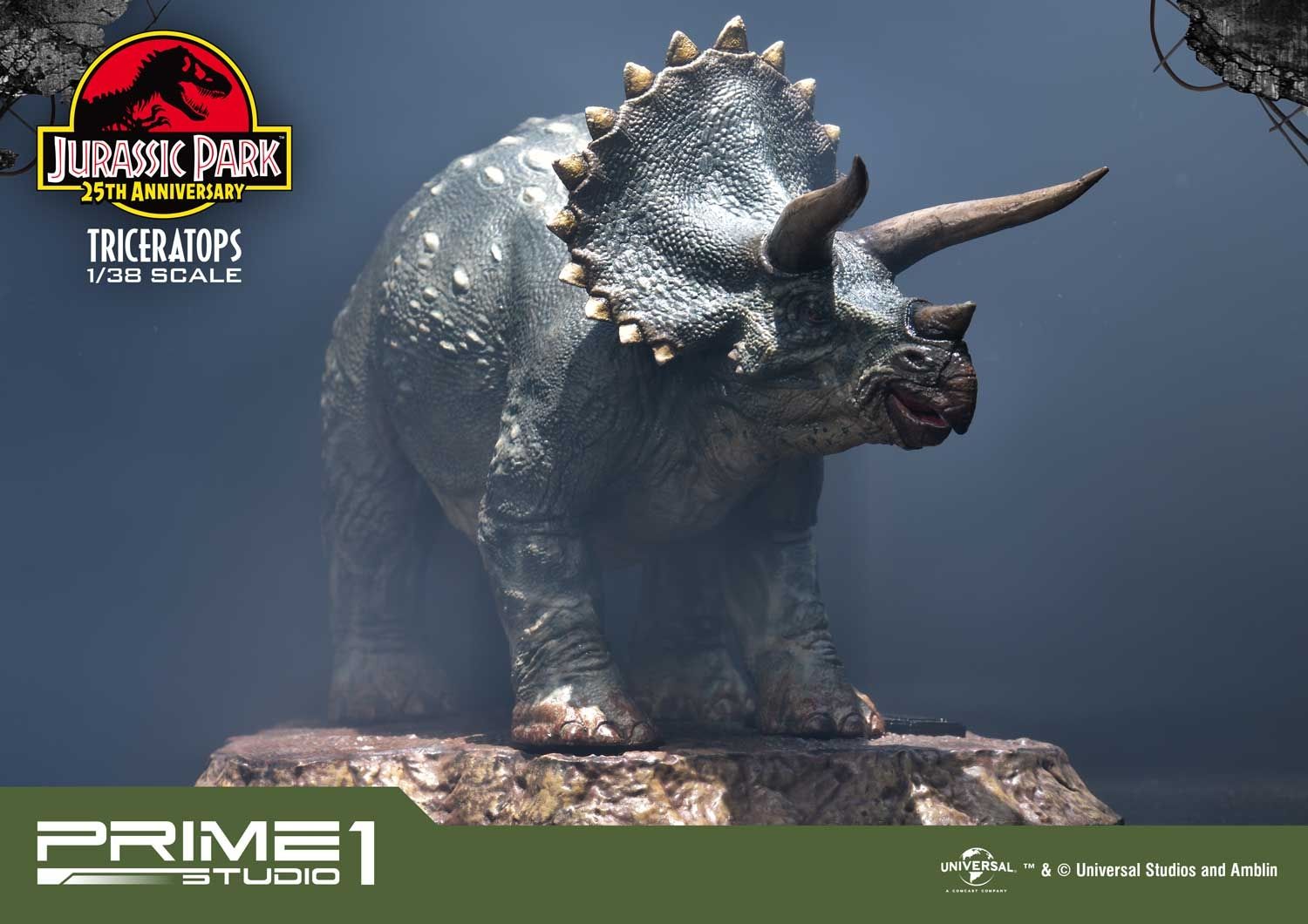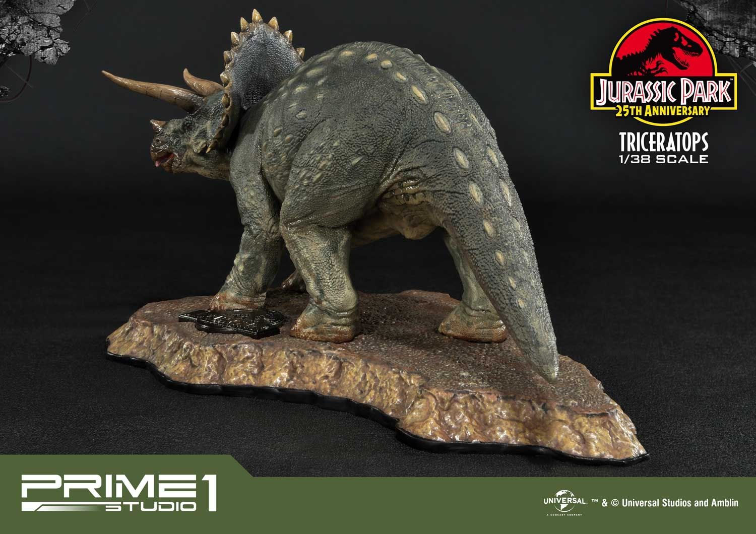 Prime 1 Studio takes pride in announcing the introduction of our new line Prime Collectibles Figure. PCFJP-02: Triceratops 1:38 Scale from Jurassic Park. Now fans have a new option of pocket-friendly and portable-friendly statue figures to collect. Triceratops was a very common dinosaur which lived at the very end of the Cretaceous period. It had a huge frilled head with horns over each eye that could reach over 4 feet long. Triceratops had a third, smaller horn on its nose. These would be fearsome weapons against a predator. There is more variety of dinosaurs joining to this series, soon. Prime 1 Studio fans, don't miss your chance to collect our new 1:38 scale Jurassic Park series!!