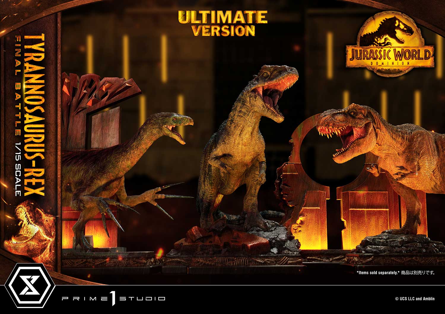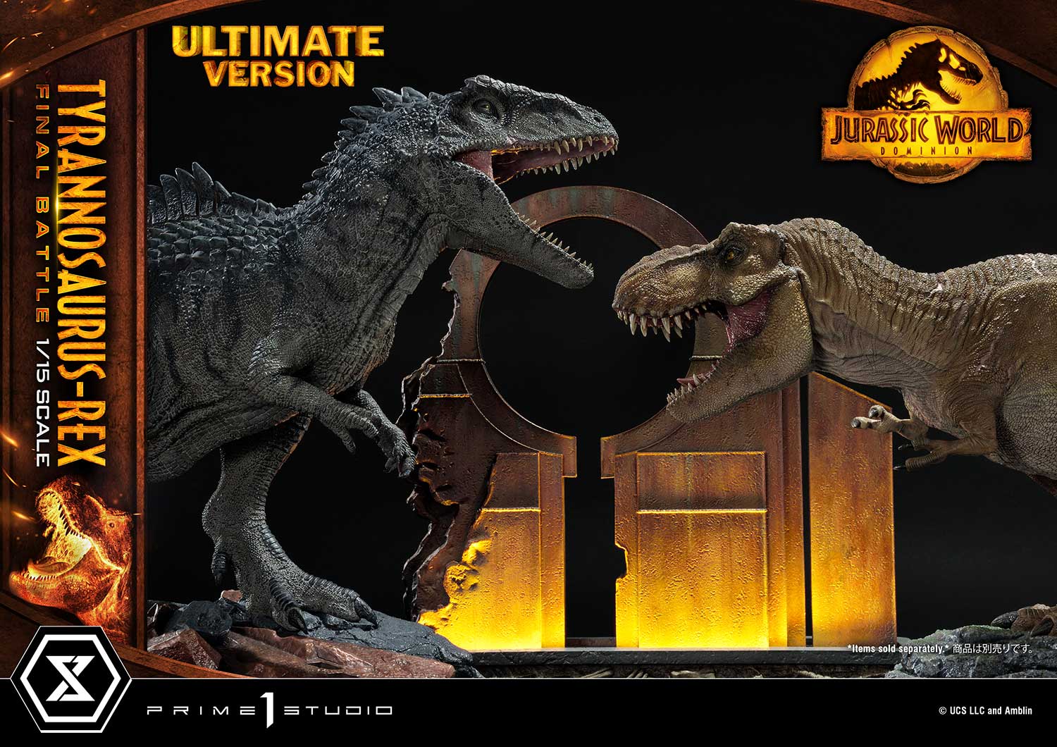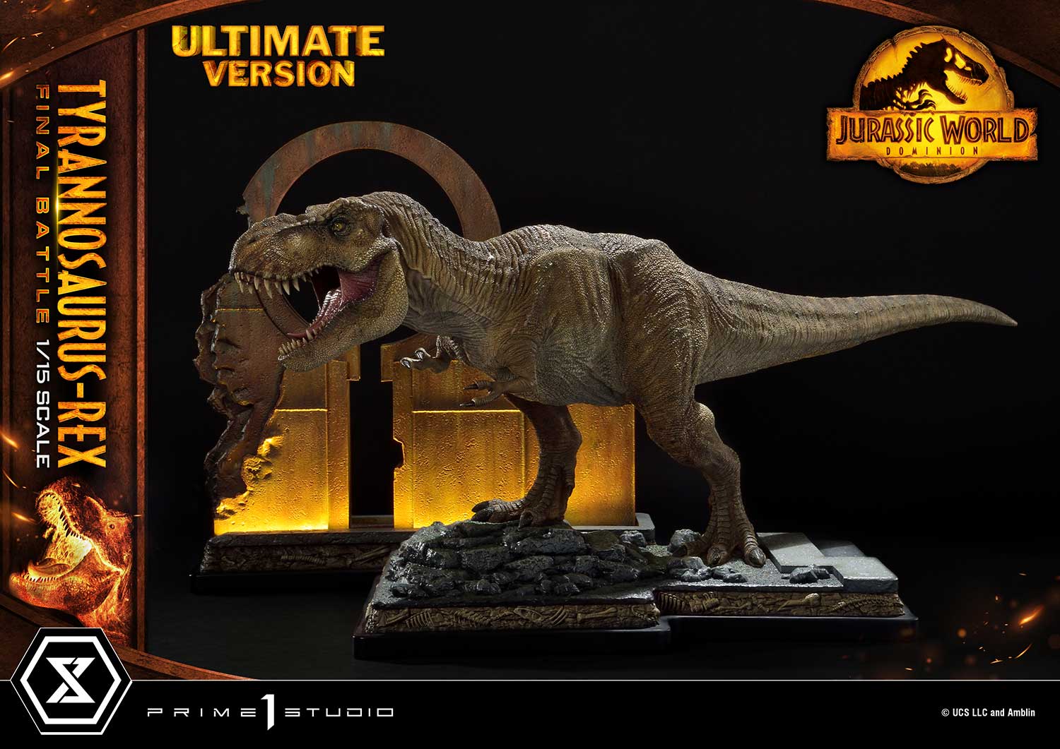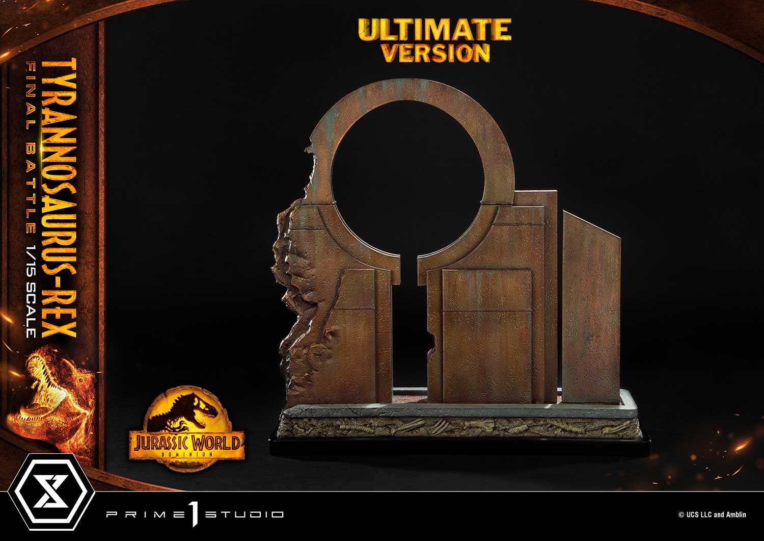 When you order the Ultimate Version from our official online store or any authorized distributor, limited to only 350pcs, your statue comes with an 18-inches tall decorative wall base that has LED light-up functionality. The damaged sanctuary wall is sure to create a more moody and intense ambiance to your piece of Jurassic art.