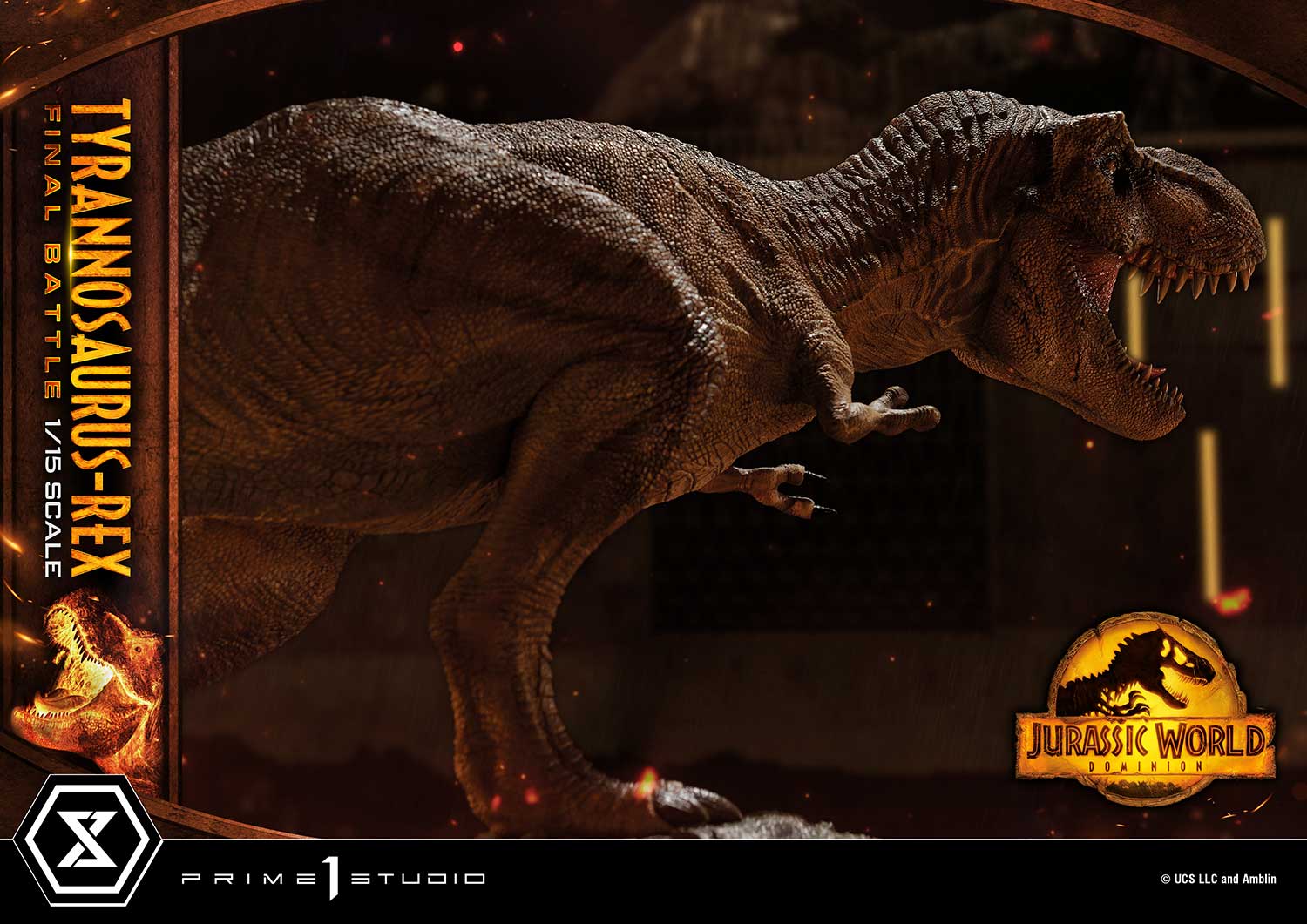 In this epic conclusion to the Jurassic World Trilogy, the Biosyn Sanctuary is set ablaze, Owen Grady and his companions try their best to escape as the final battle of the dinosaurs begins. It comes without a surprise that Prime 1 Studio would choose this climactic battle as the next giant reptile to bring to life. The iconic T-Rex, also affectionately known to fans as Rexy, is recreated as fierce and ferocious as ever.