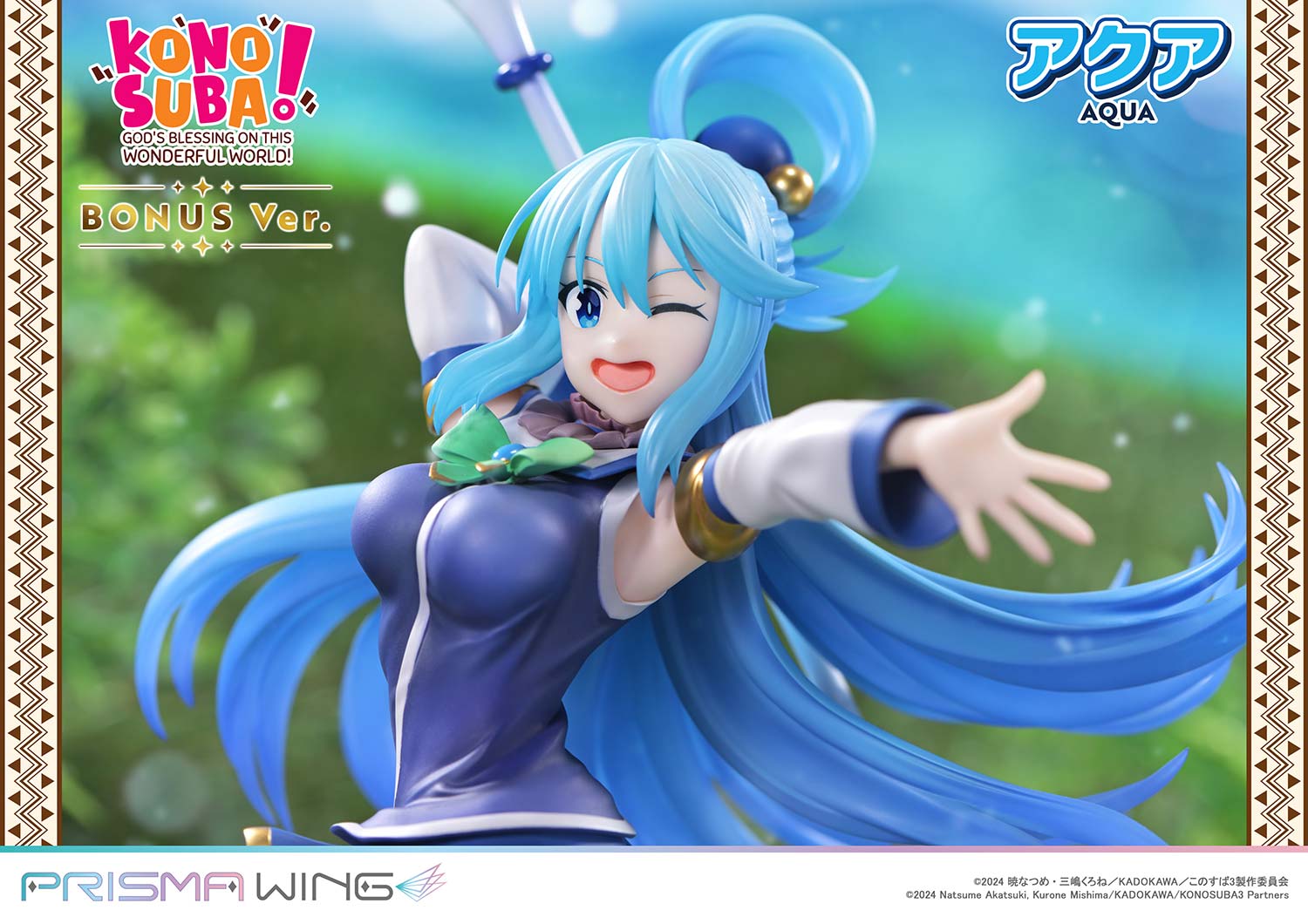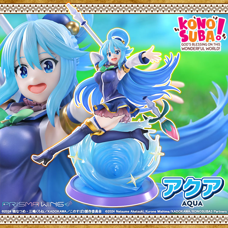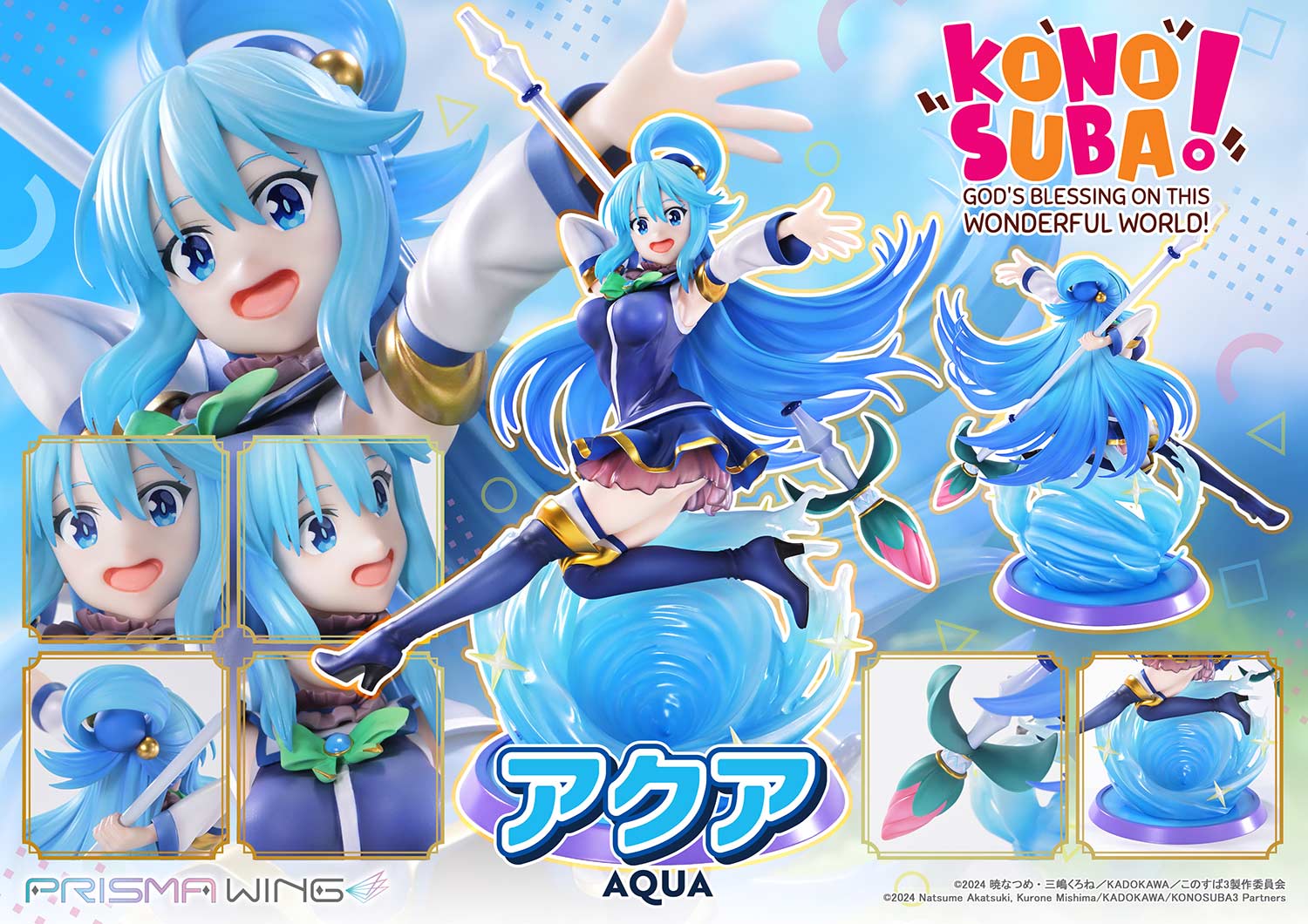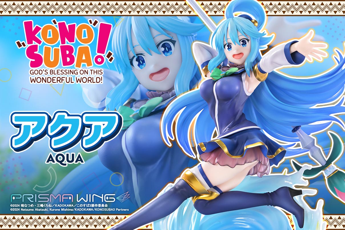 The party’s healer, and its troublemaker—Aqua from the anime " KONOSUBA -God's blessing on this wonderful world!" joins the PRISMA WING lineup. Sculpted and painted with delicate artistry, her bright smile and lively pose capture her divine charm in 1/7 scale—and yet, her goddess-like appeal goes far beyond what the size can contain.
