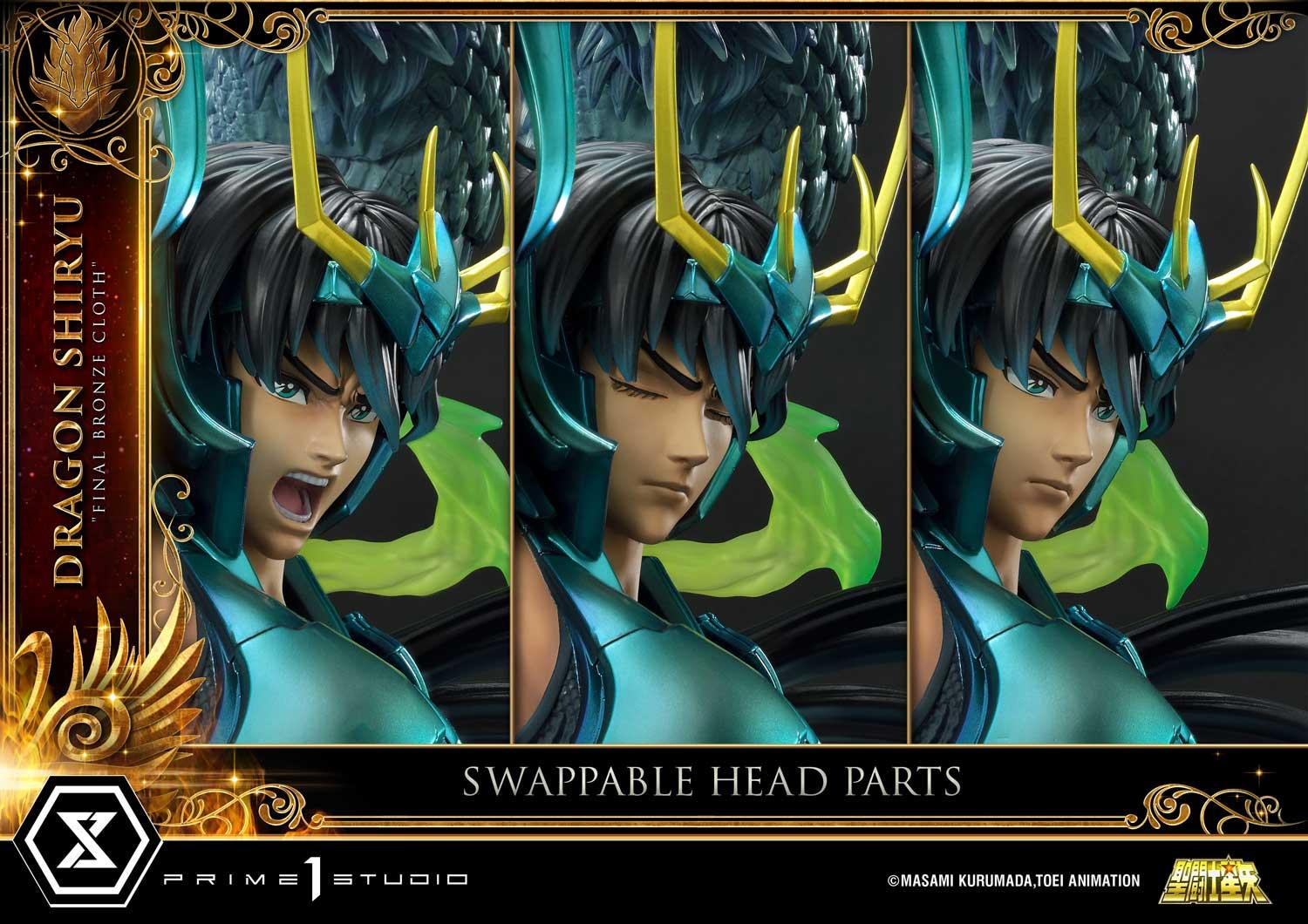 Shiryū stands on an explosive dragon-themed base that features rubble that is thrown about by his LED-illuminated energy! Additionally, Shiryū comes with three (3) swappable head parts that give him three distinct expressions. In addition to Shiryū standard portraits, the Exclusive Version comes with an additional Classic Anime Portrait to the statue.