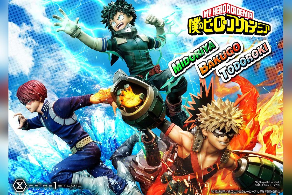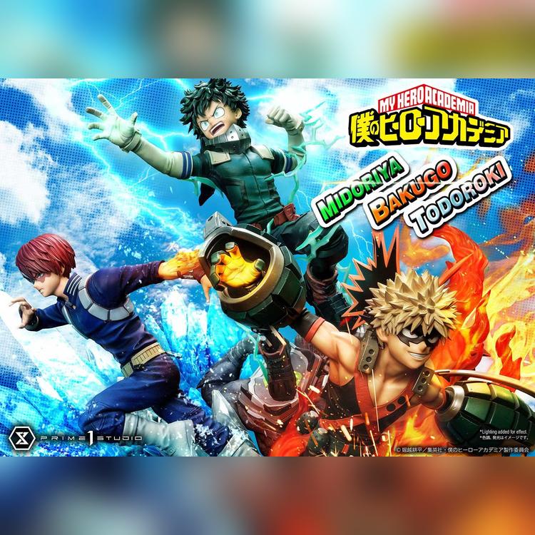 Prime 1 Studio is proud to introduce our premiere diorama of one of the most popular Japanese anime franchises – My Hero Academia! The diorama features three of UA Class 1-A’s most promising students: Izuku Midoriya: Deku, Katsuki Bakugo: Great Explosion Murder God Dynamight and Shoto Todoroki: Shoto.