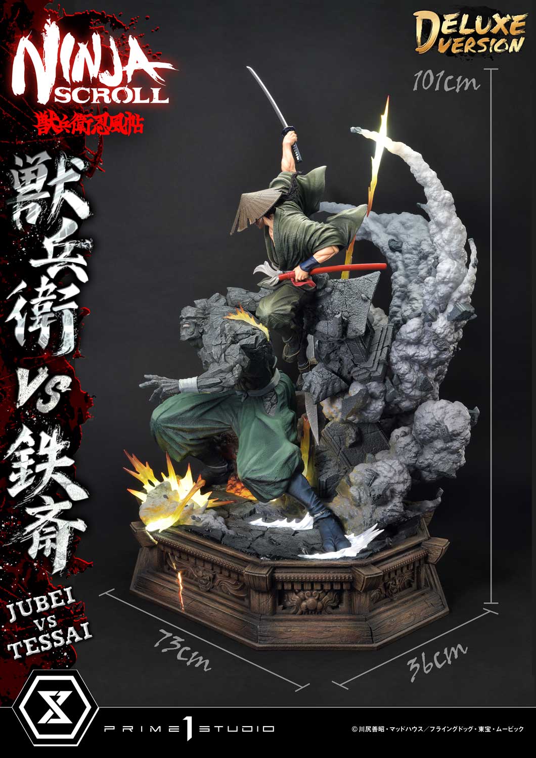 With its groundbreaking action and beautiful design, Ninja Scroll has left a lasting mark on anime history. Now, more than 30 years since its release, the fierce battle between Jubei and Tessai makes its debut in the Ultimate Premium Masterline series!