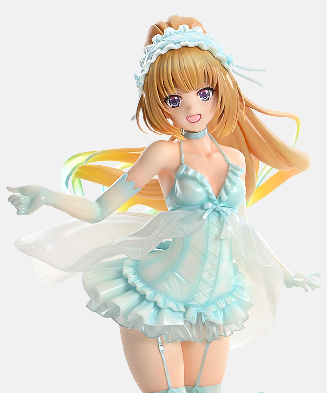 From the TV anime "The Angel Next Door Spoils Me Rotten" comes Mahiru Shiina in her charming yukata. With her flaxen hair swaying and a joyful step forward, this pose is inspired by the Volume 6 cover illustration. A sweet and heart-fluttering story of love with the girl next door — now captured as a summer memory in delicate colors and form.
