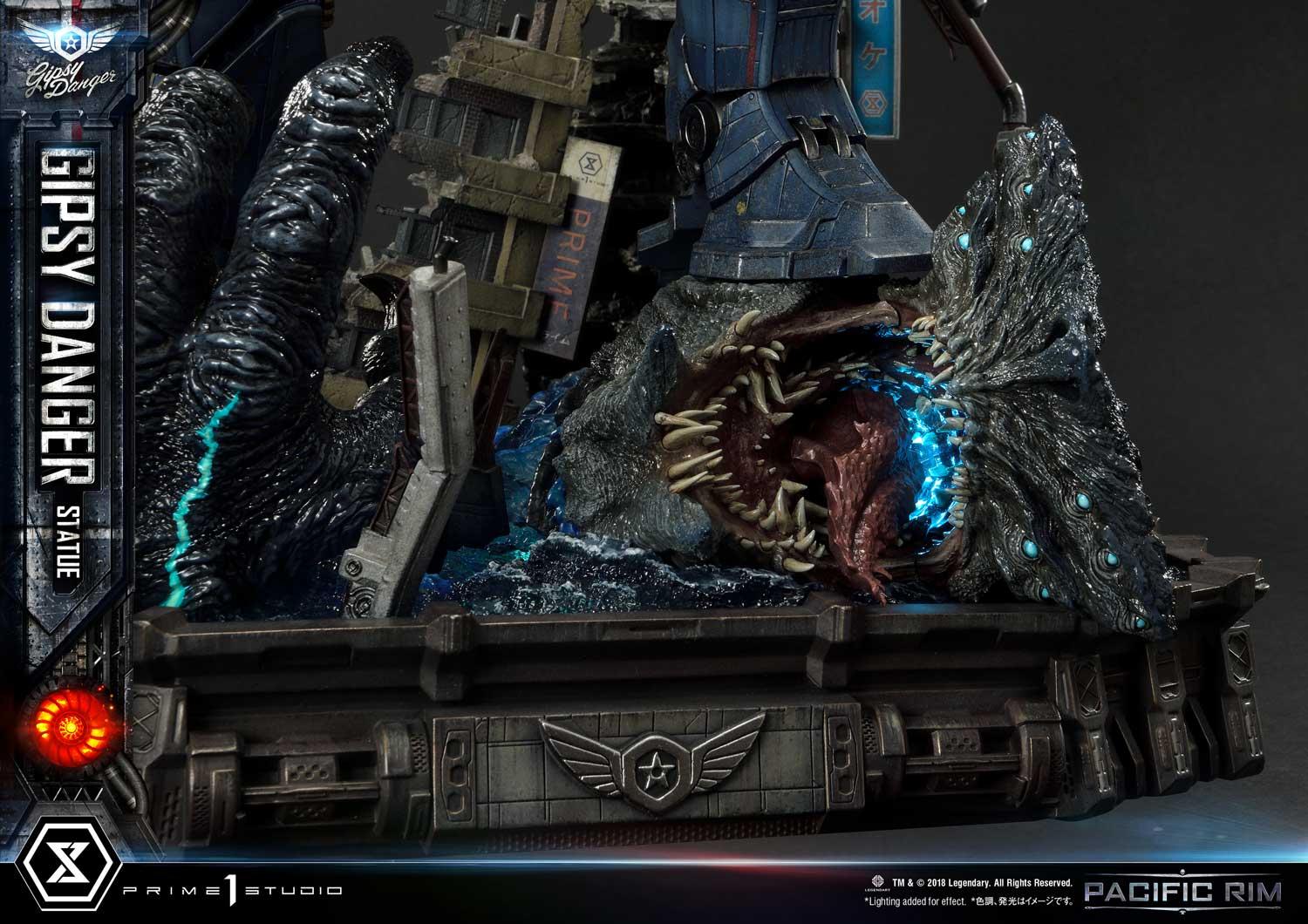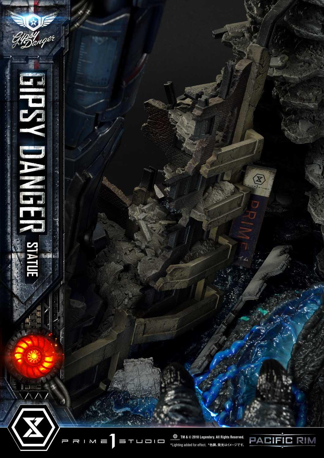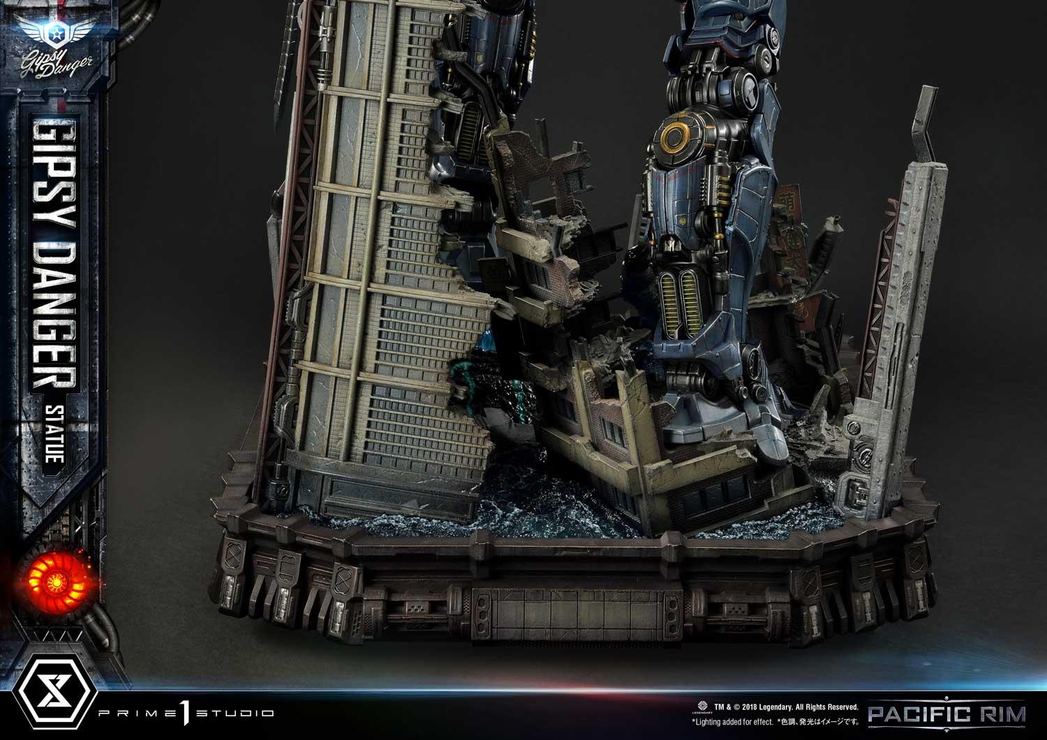 Our hardworking Prime 1 Studio craftsmen have skillfully created an homage to Pacific Rim’s primary weapon, in this all-new, never-before-seen iconic pose. Gipsy Danger poses majestically on obliterated buildings and the head of a downed Kaiju.