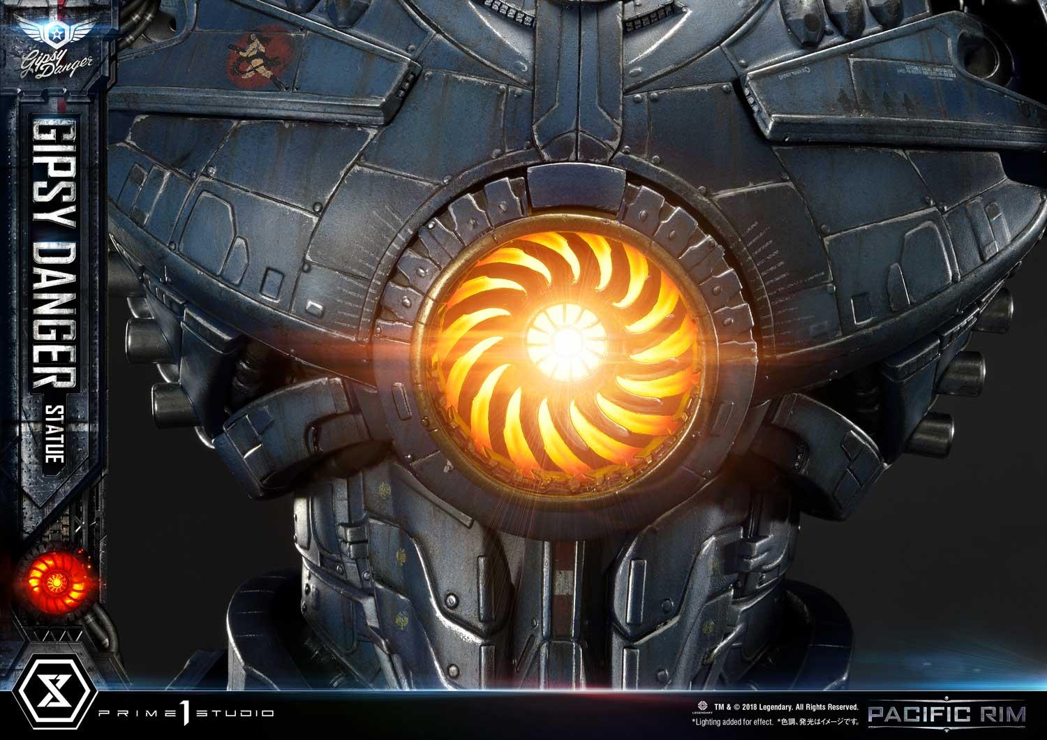 Not only that, Gipsy Danger is alive with the power of LEDs! Prime 1 Studio made sure to offer a light-up Gipsy so that you can relive the most exciting parts of the movies. Here, the forehead beacon, the main visor and most especially...Gipsy’s Nuclear Vortex Turbine...glow with the power of the atom!