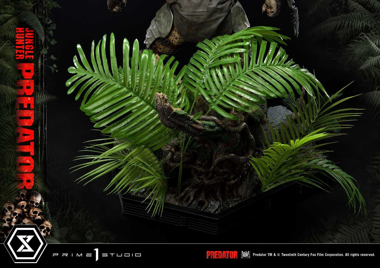 Standing majestically at over 35 inches tall, the Jungle Hunter Predator reveals itself as an imposing, otherworldly peril intent on relentlessly hunting its prey. In this pivotal moment, where the Jungle Hunter Predator reveals his true form to Dutch (the main protagonist of the film), the skilled artisans at Prime 1 Studio have seated the Predator’s Bio Mask in the gnarled roots of a tree. In the film, the Predator takes off his Bio-Mask and drops it in the putrid, leech-infested water of the jungle, which we have faithfully recreated here with translucent resin and detailed inclusions, for a convincing watery effect.