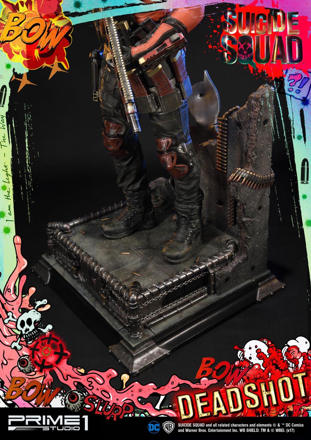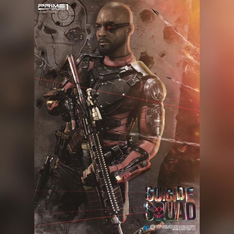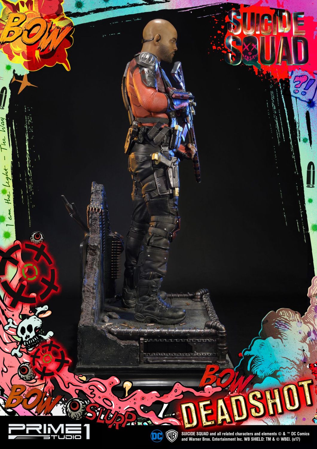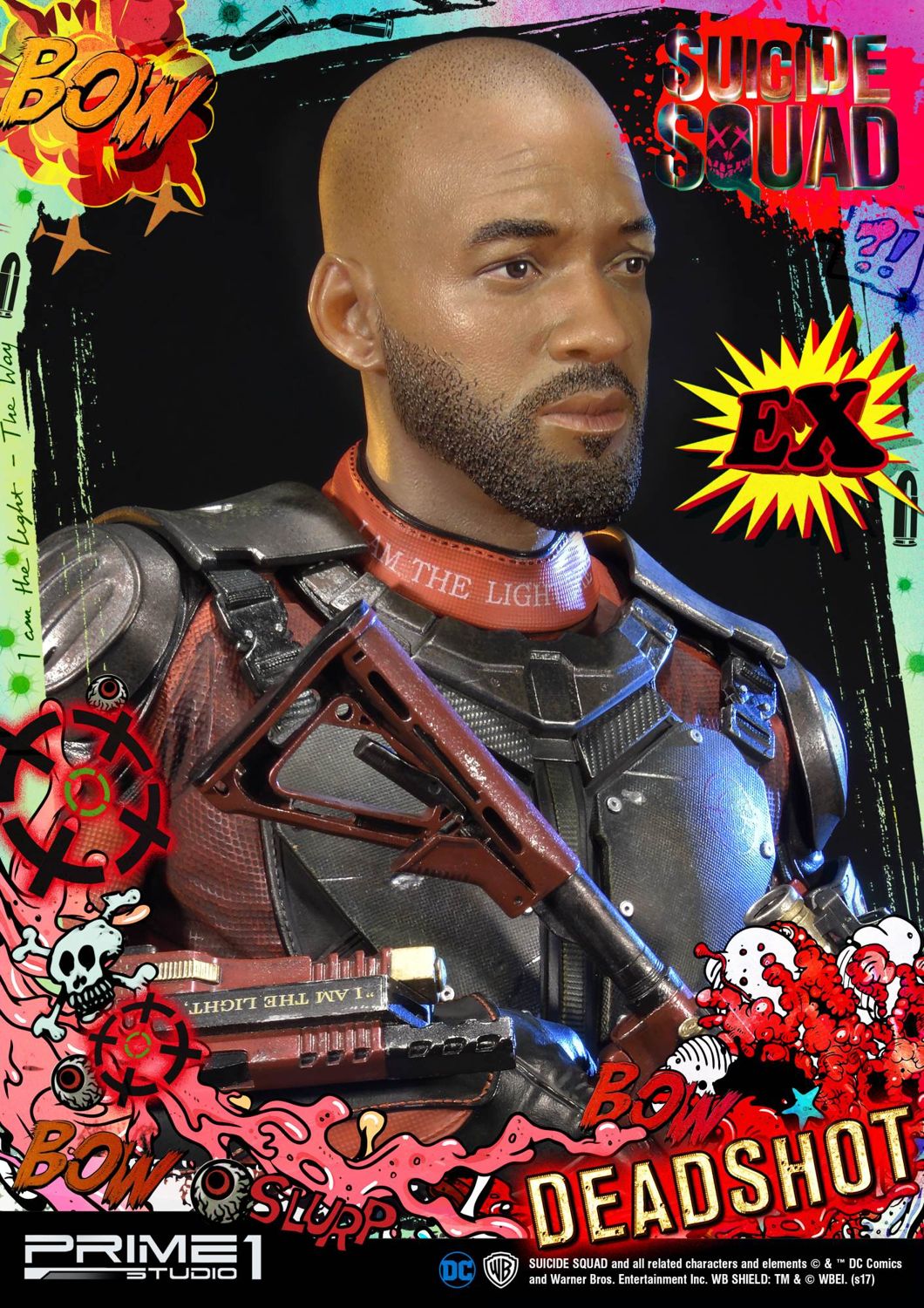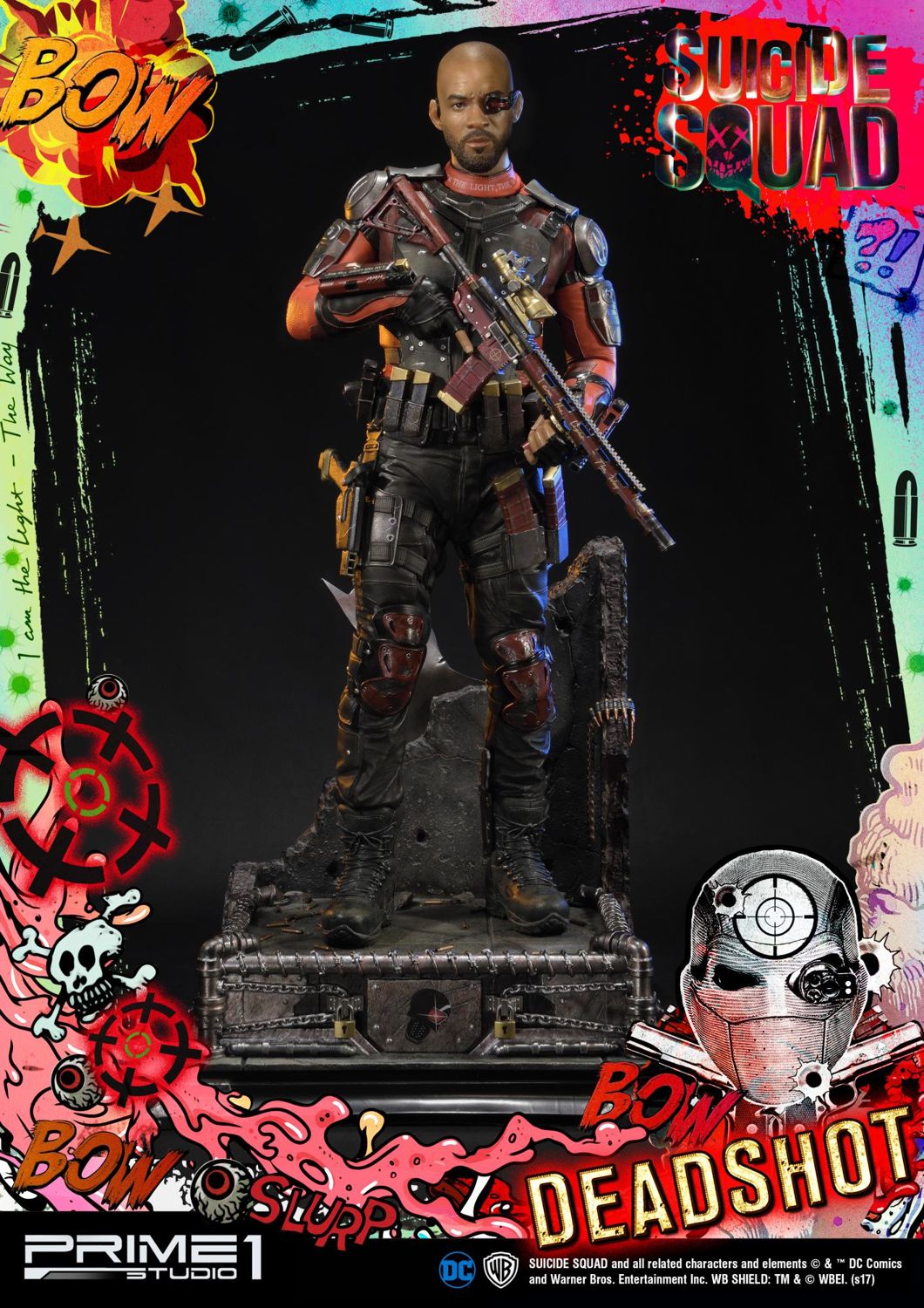 Prime 1 Studio is proud to present MMSS-02: Deadshot from Suicide Squad (film). Deadshot is often a hired assassin, regularly boasting to “never miss.”. He is capable of using a large variety of weapons, but is most frequently portrayed as using a pair of silenced, wrist-mounted guns. His real name is Floyd Lawton and he grew up in a wealthy household with his mother, abusive father, and brother Eddie. He is a deadly assassin and he may be one of the best marksmen on Earth, if not the best.