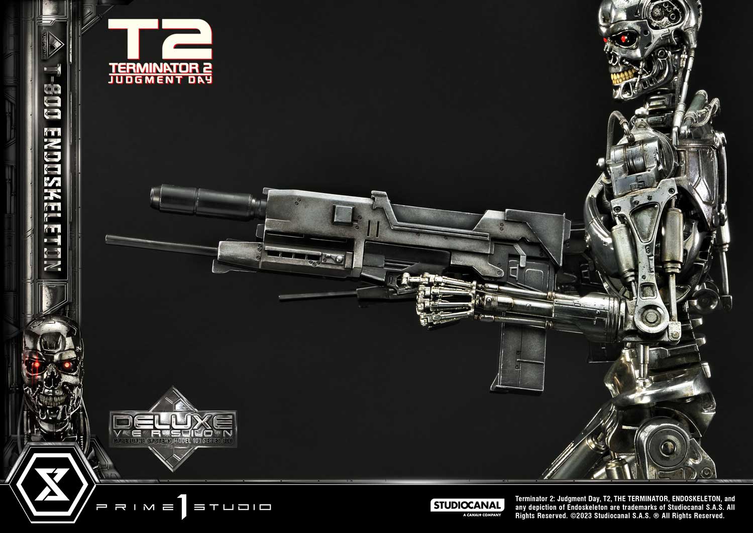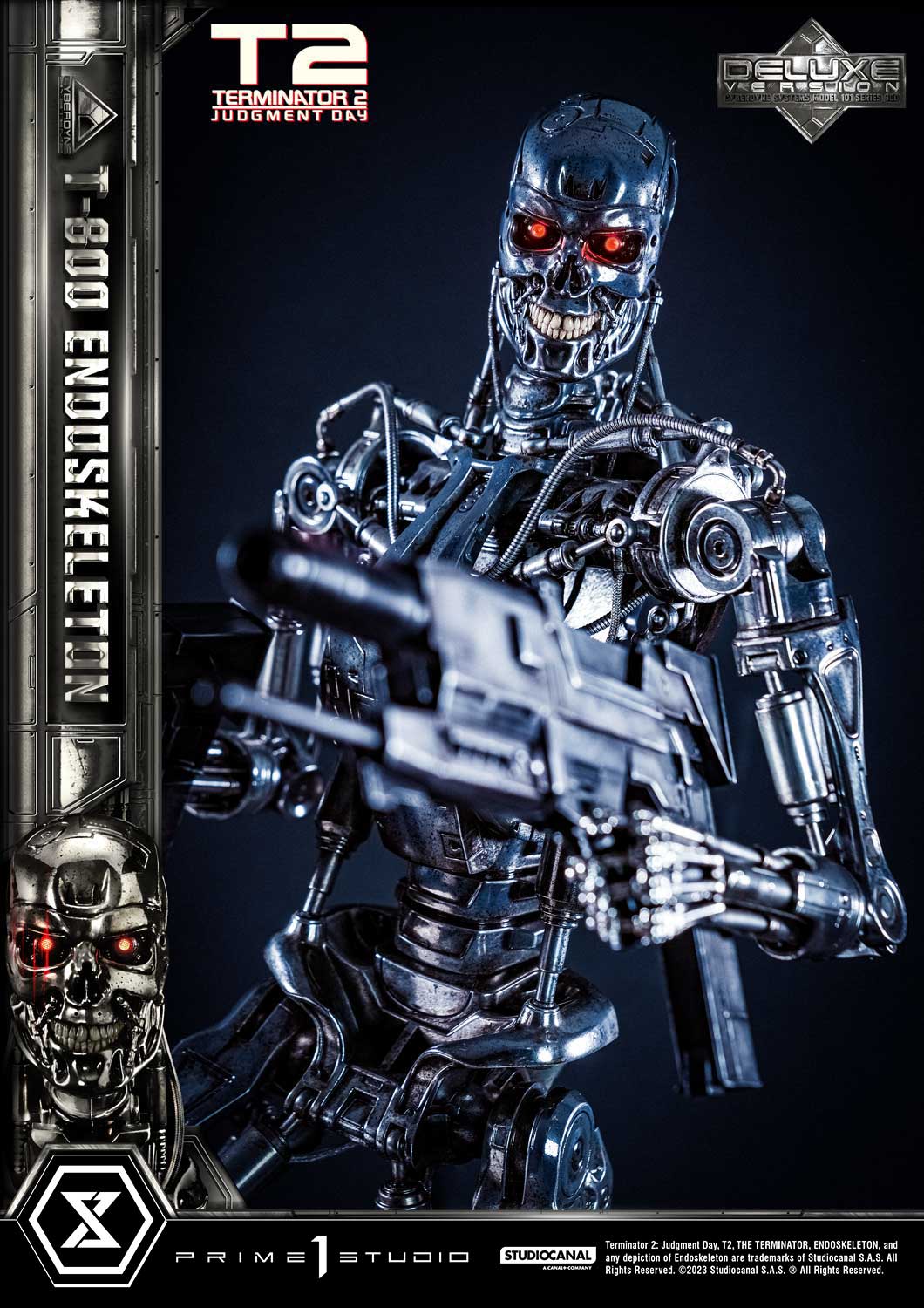 The Deluxe Version offers a deeper dive into the machine’s infiltration capabilities. Switch out the left hand with another plasma rifle-wielding hand to show your terminator ain’t metal-ing around! The ""Terminator 2 Judgment Day"" logo plate is also included with the Deluxe Version to pay homage to the sequel's enduring legacy. This version magnifies the chilling aura of the T-800 Endoskeleton, transforming it into a centerpiece of unparalleled horror.