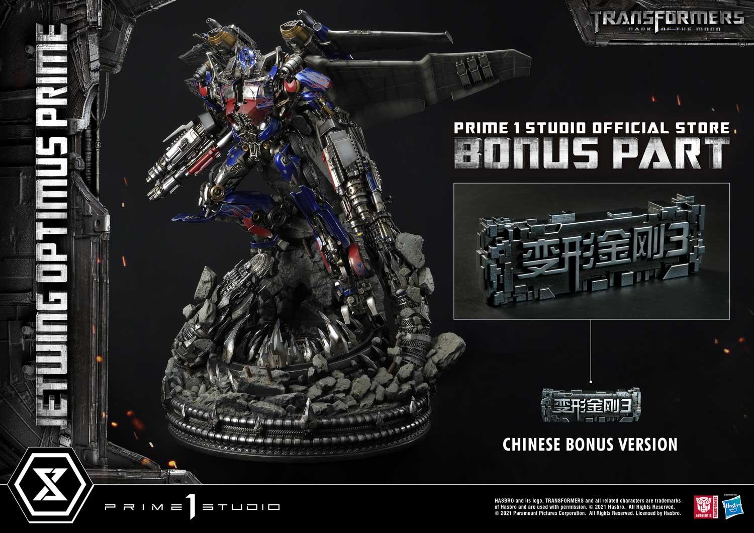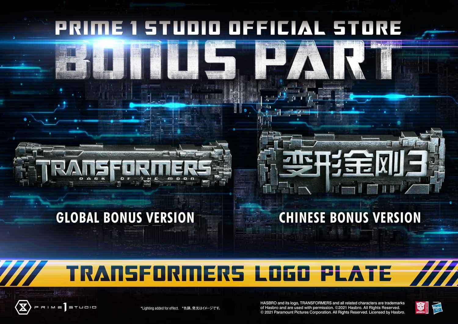 And for the Bonus Versions of this first-of-its-kind statue, we are offering Bonus Transformers Logo Plates to display with your Jetwing Optimus Prime! The Global Bonus Version features the Transformers logo in English. And for the Chinese Bonus Version, we are including the Chinese version of the Transformers Logo Plate to display with your Jetwing Optimus Prime!