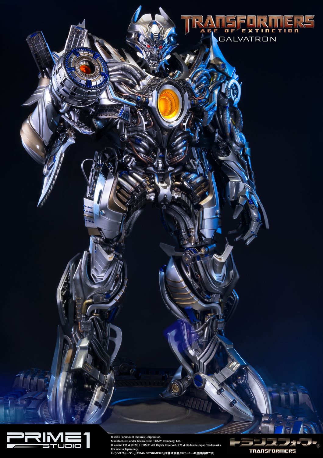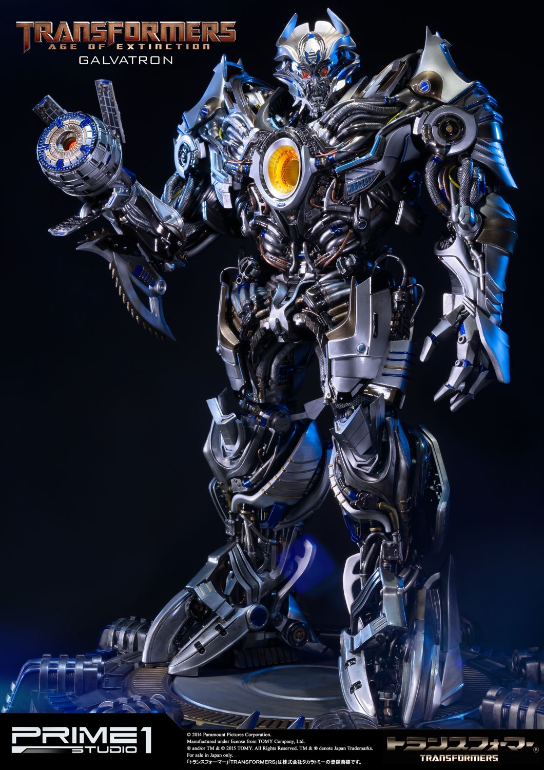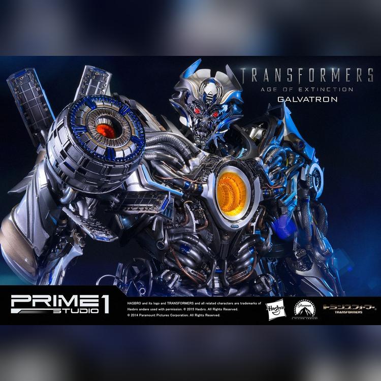 Prime 1 Studio is proud to present MMTFM-09 Galvatron was a U.S. military model,developed by KSI.It was infected by Megatron's mind, so despite all the efforts of people to give it the appearance just like Optimus Prime, the drone continued to recreate Megatron.However humans have built a bot designed to be even more powerful than the fallen DECEPTICON leader. Now,the AUTOBOTS must defeat the mighty GALVATRON!""